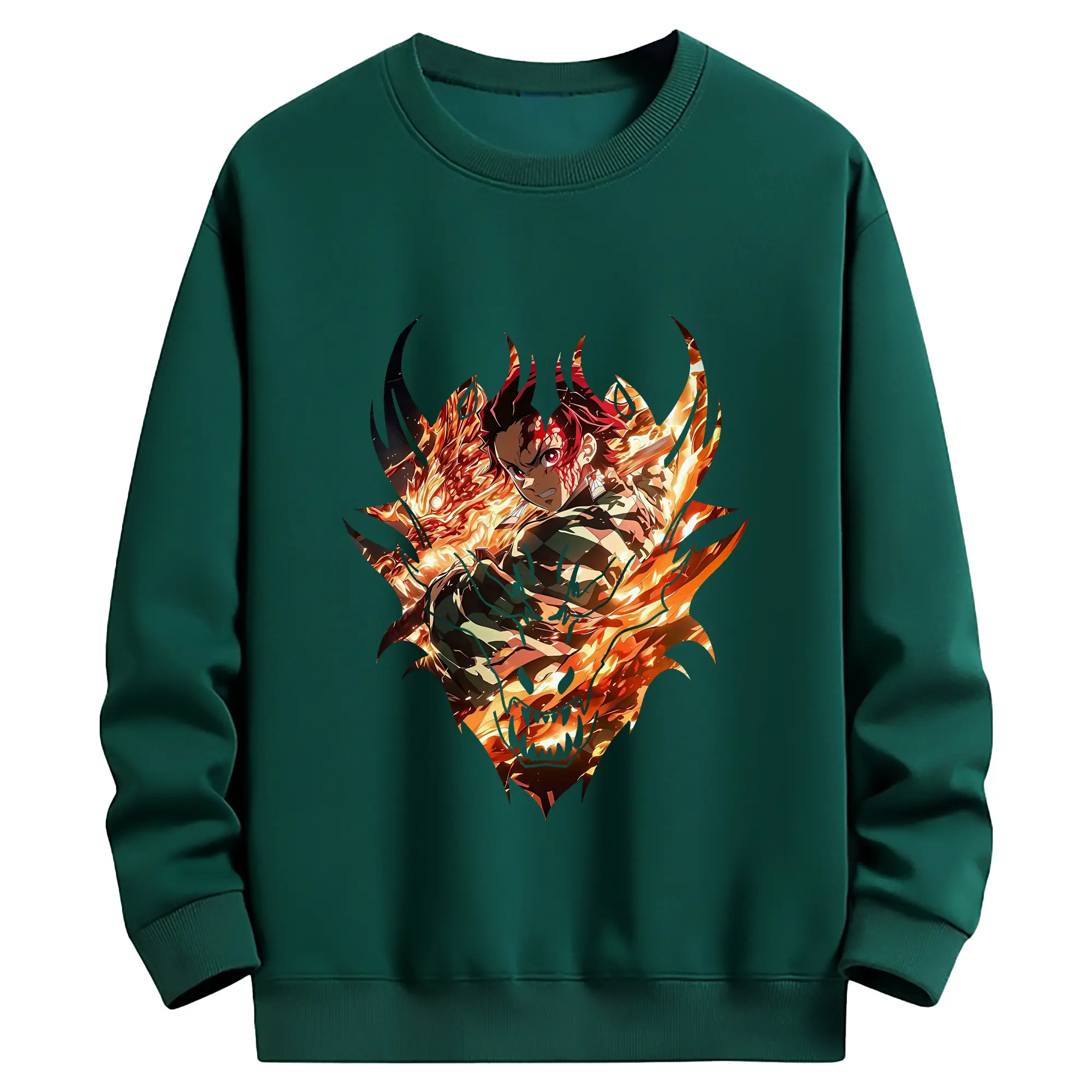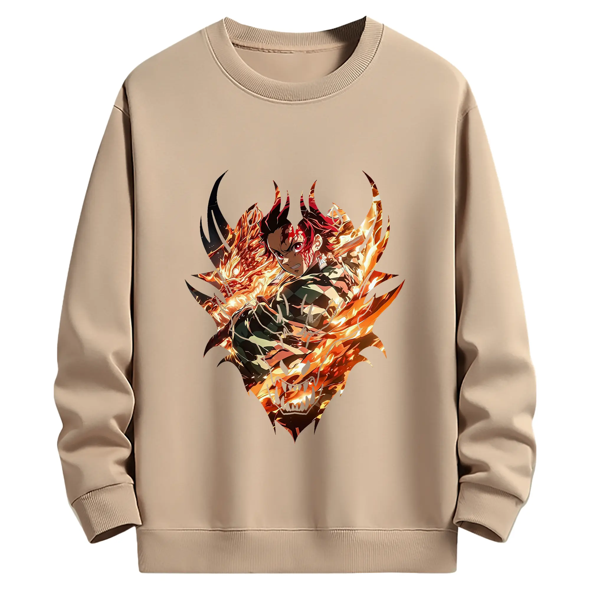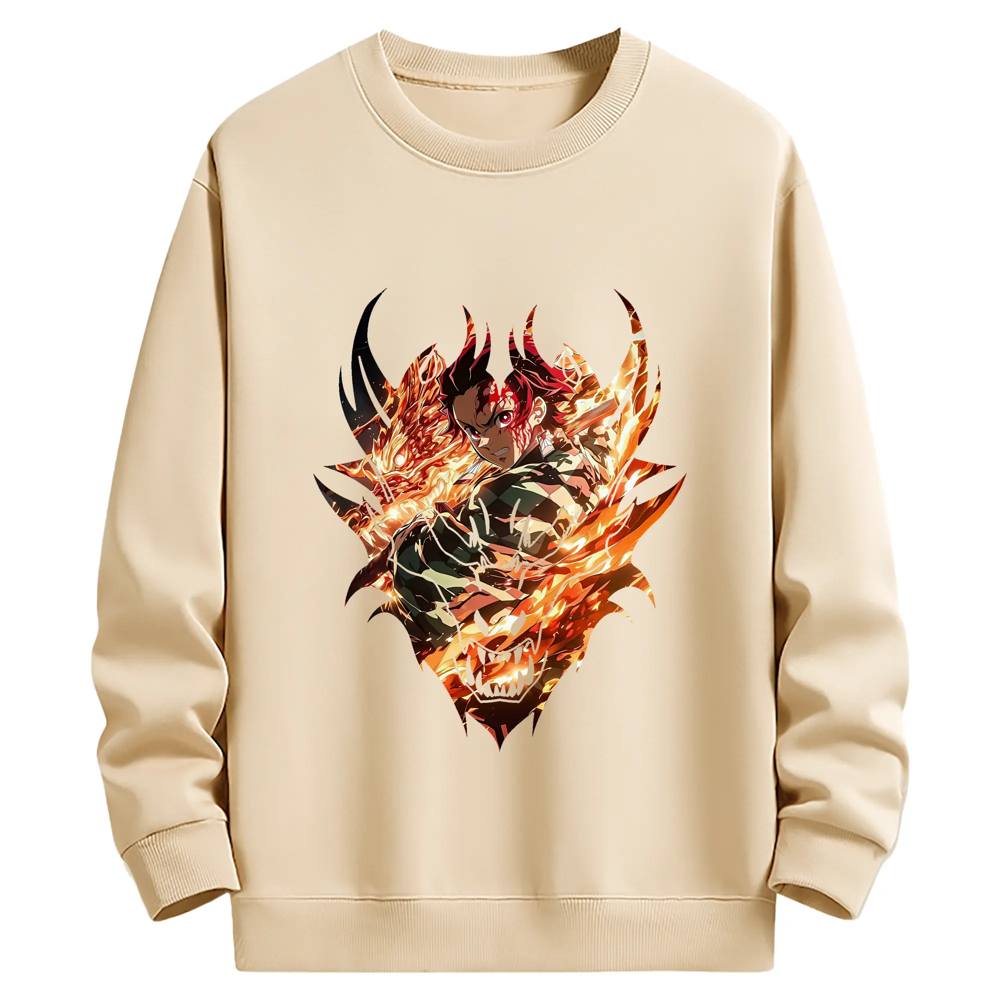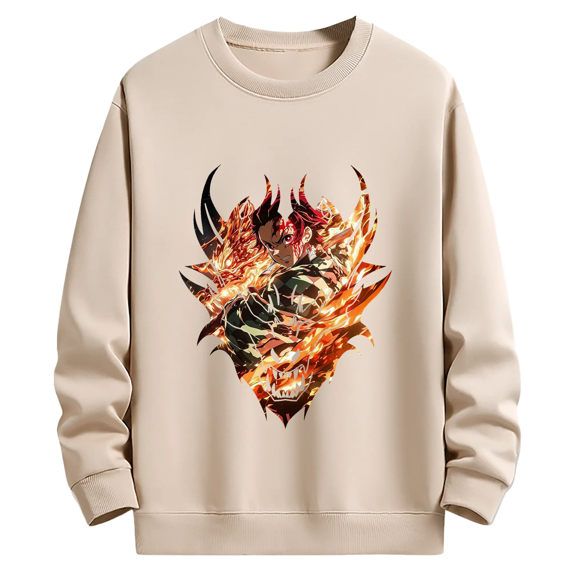 鬼滅の刃 グッズ,竈門 炭治郎 - 薄手 クルーネック スウェット 裏毛260g · ポリエステル 春秋向け カジュアル 男女兼用 · トレーナー デイリー スポーツ 散歩に最適