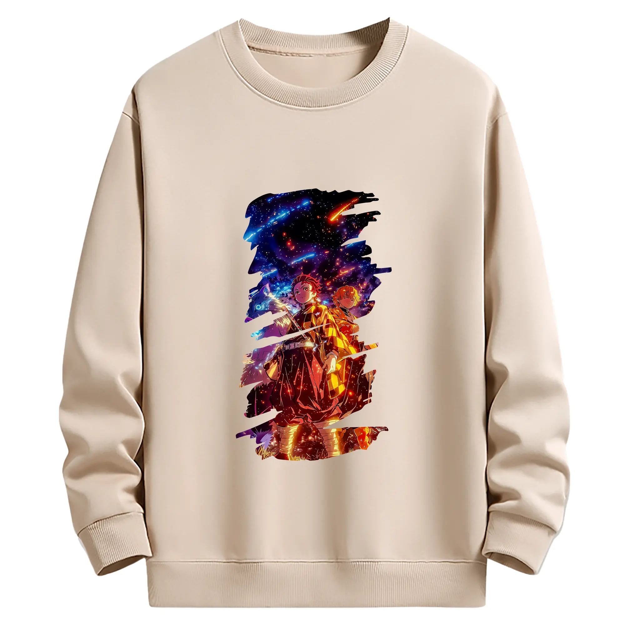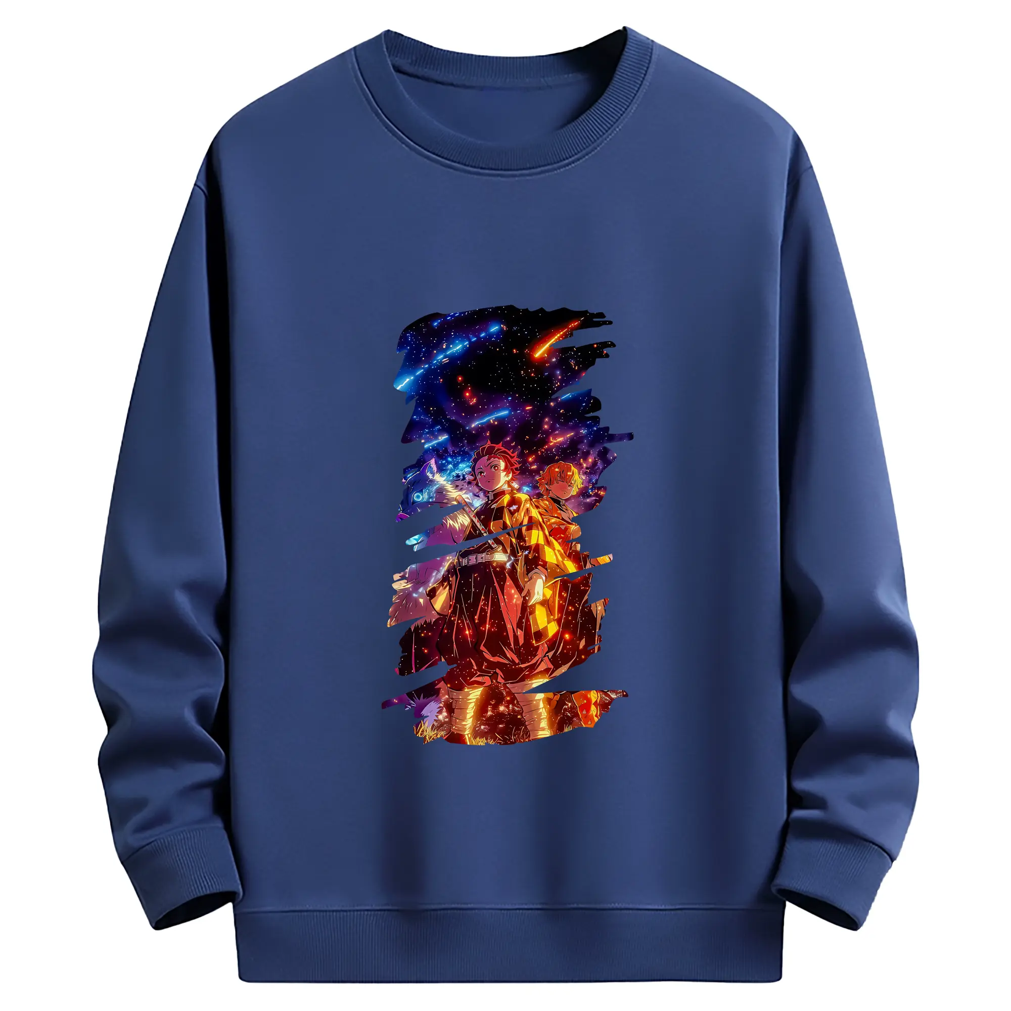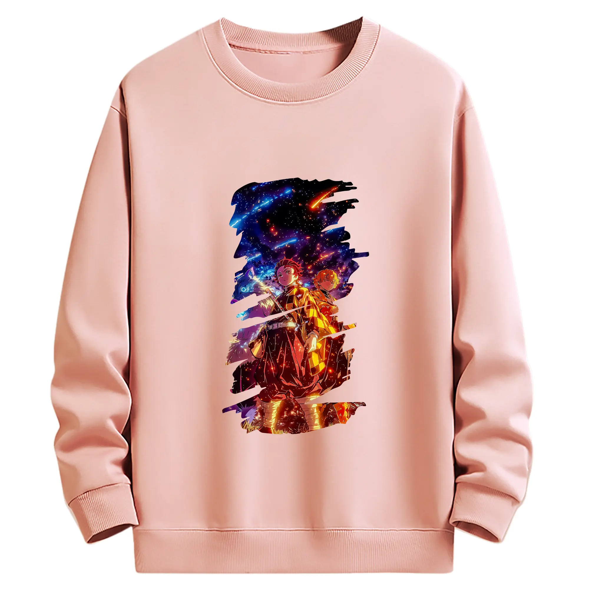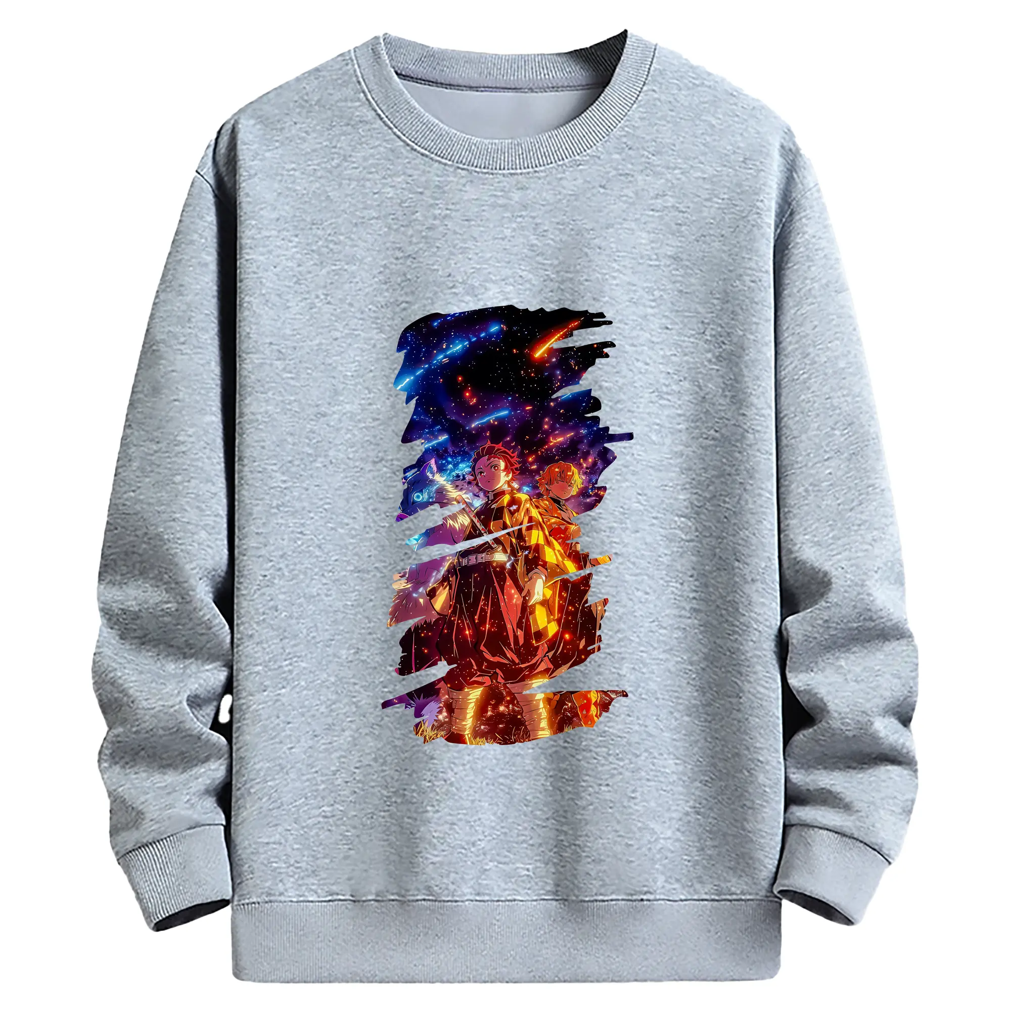 鬼滅の刃 グッズ,竈門 炭治郎 - 薄手 クルーネック スウェット 裏毛260g · ポリエステル 春秋向け カジュアル 男女兼用 · トレーナー デイリー スポーツ 散歩に最適