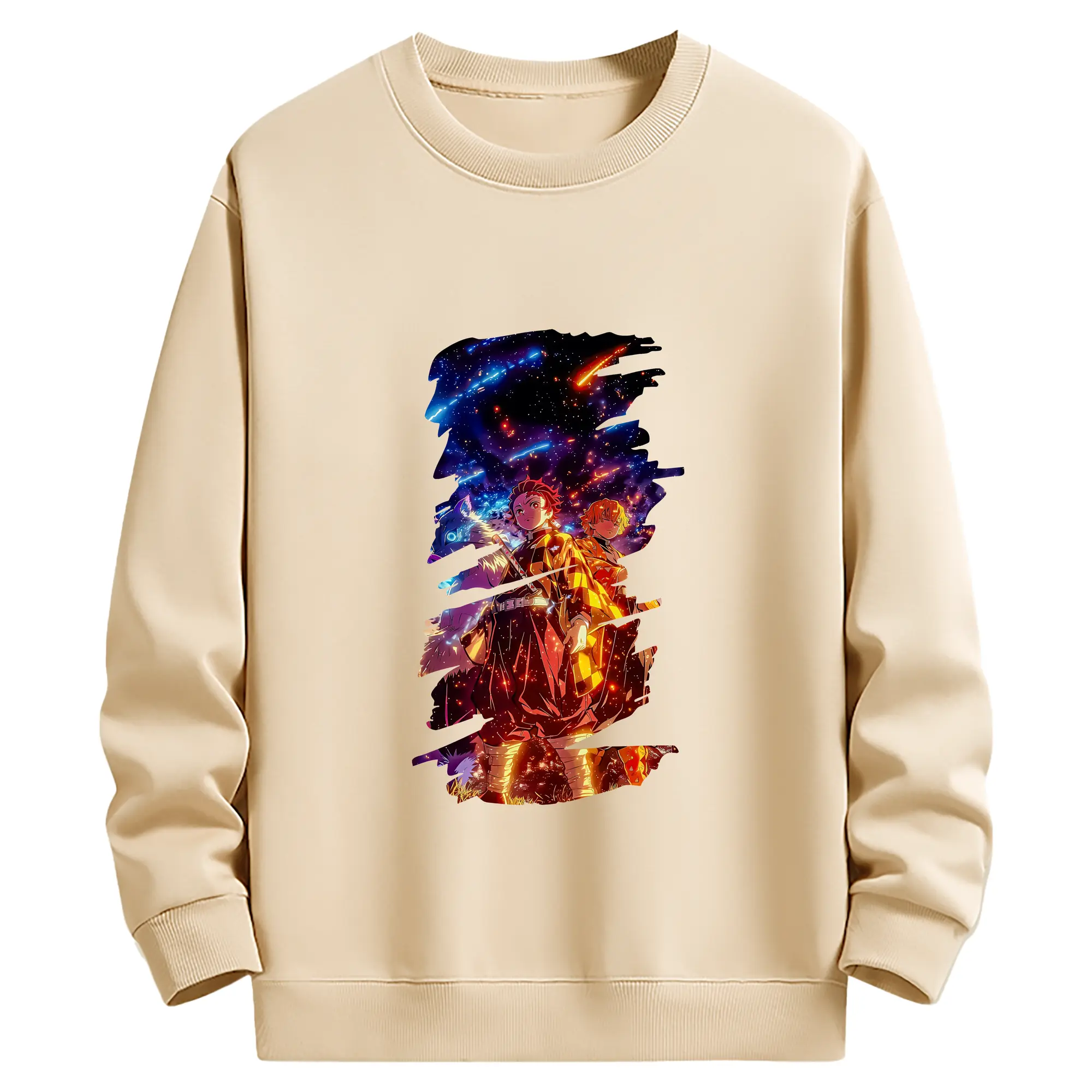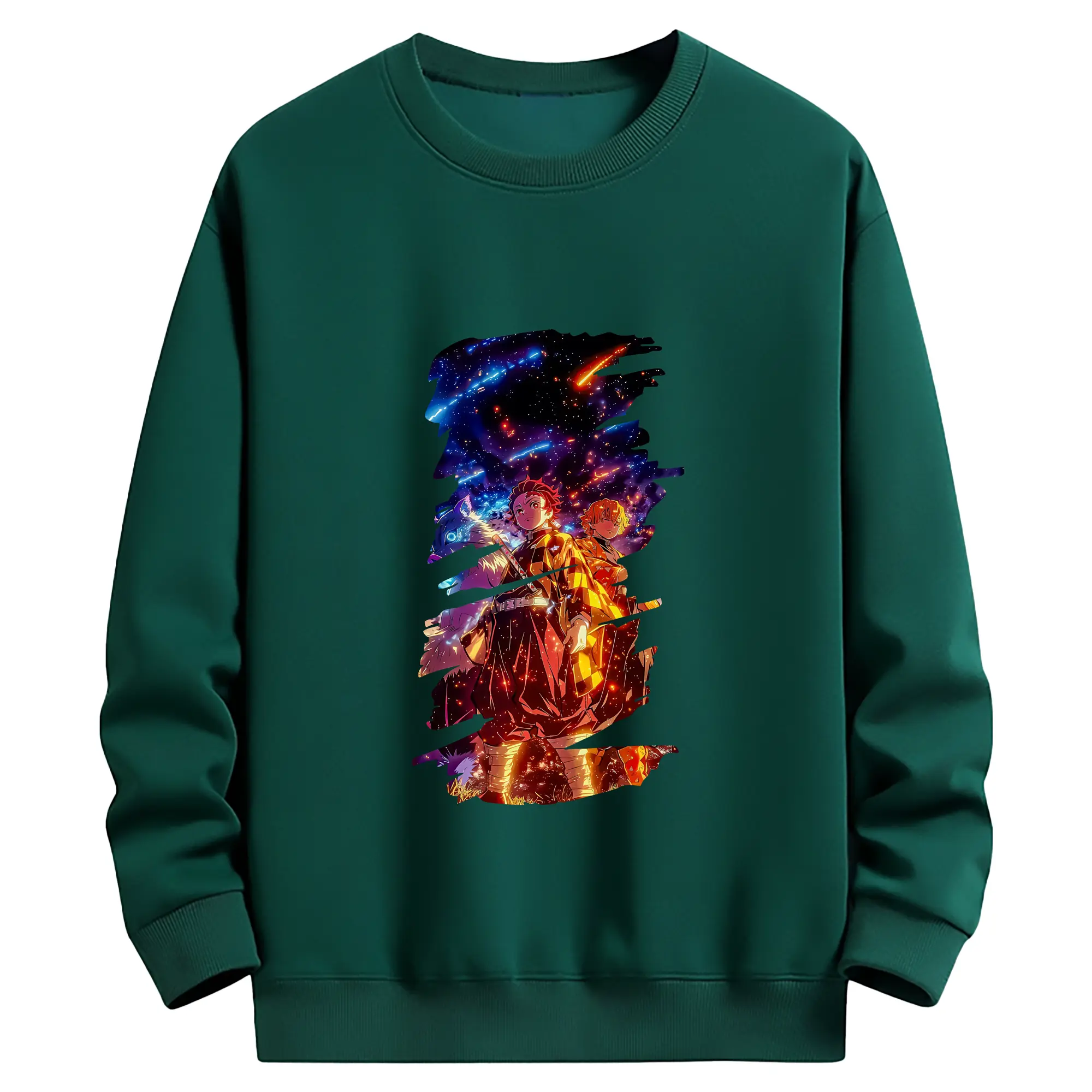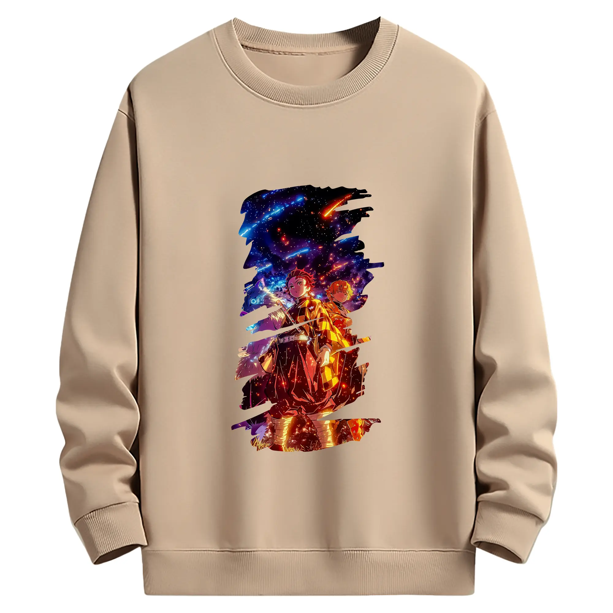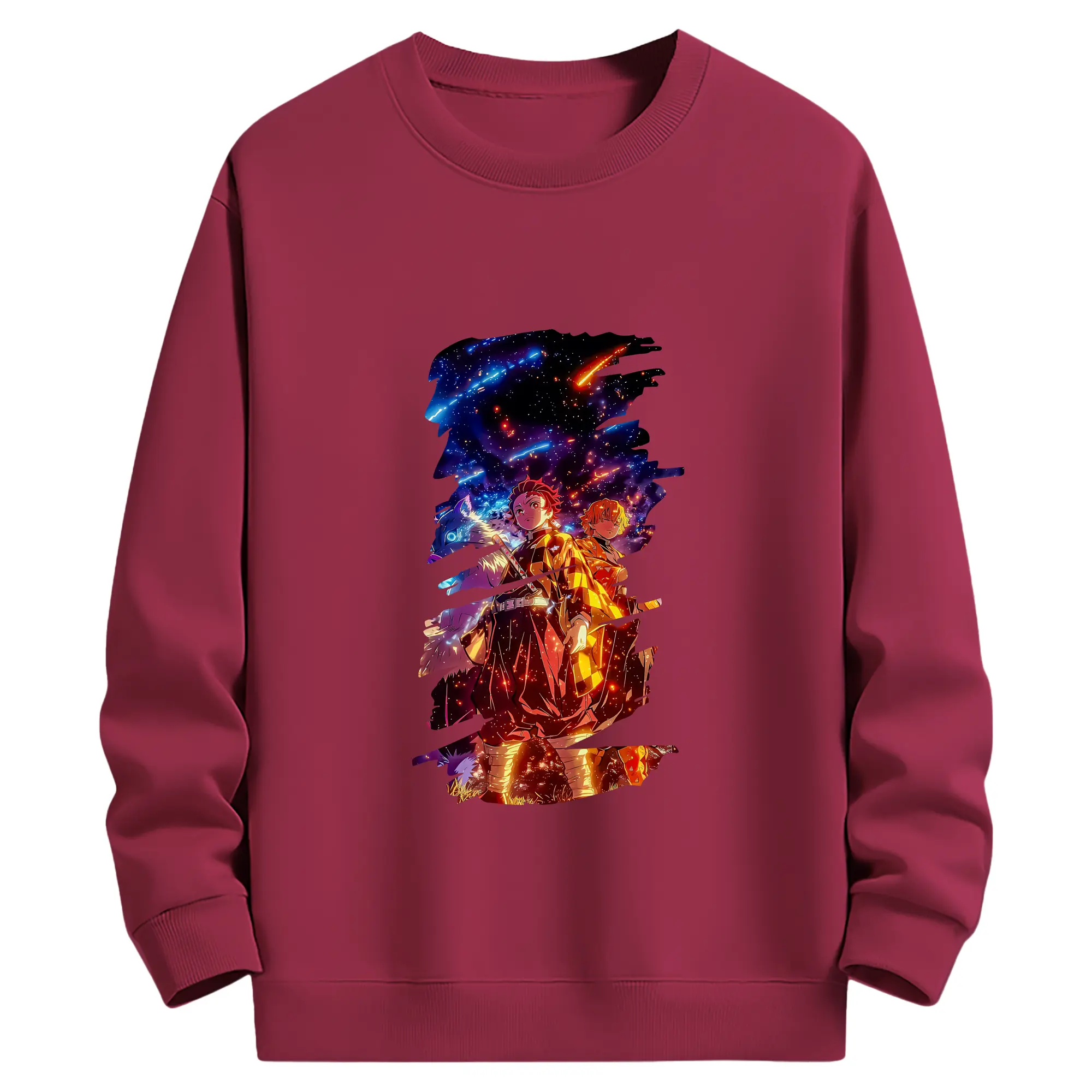 鬼滅の刃 グッズ,竈門 炭治郎 - 薄手 クルーネック スウェット 裏毛260g · ポリエステル 春秋向け カジュアル 男女兼用 · トレーナー デイリー スポーツ 散歩に最適