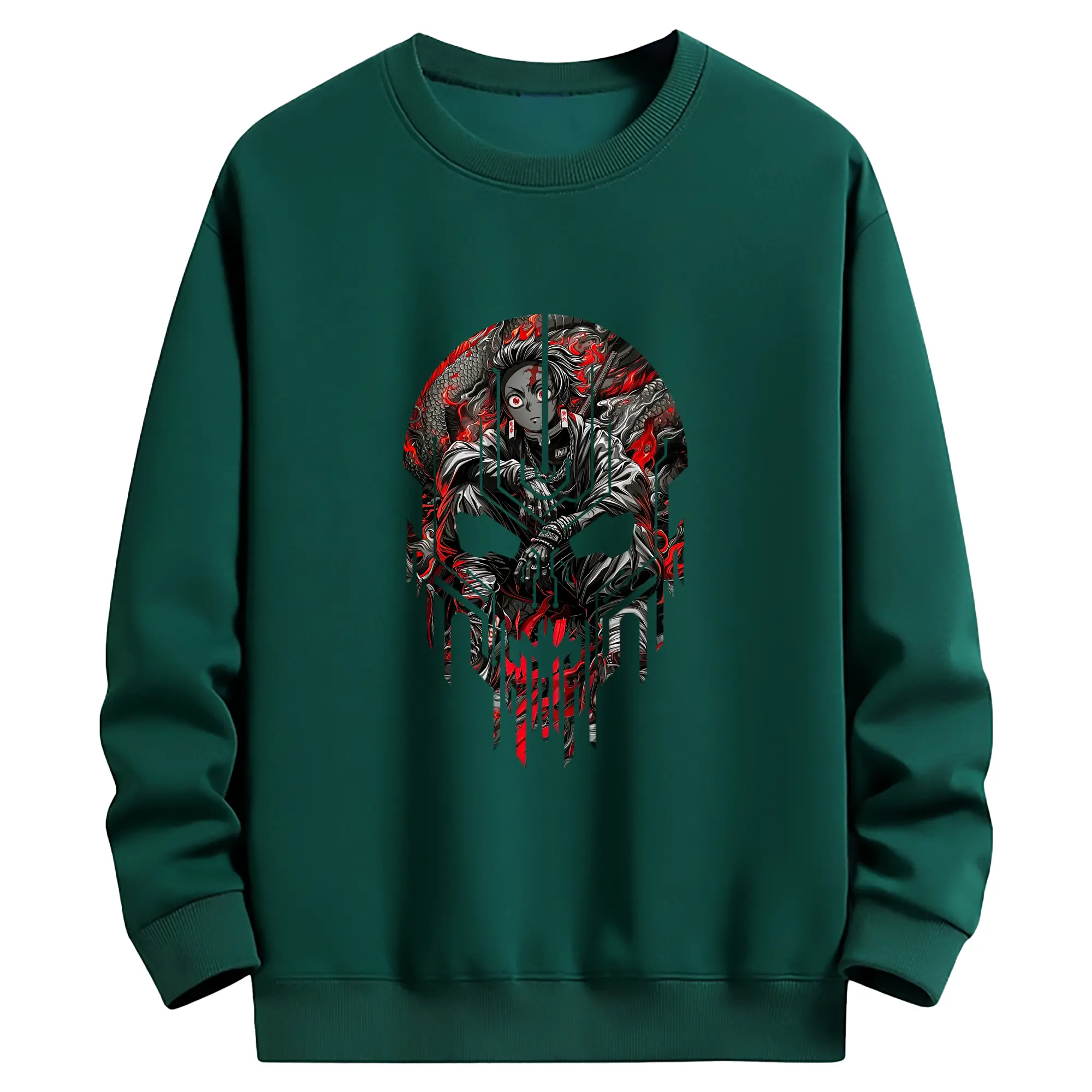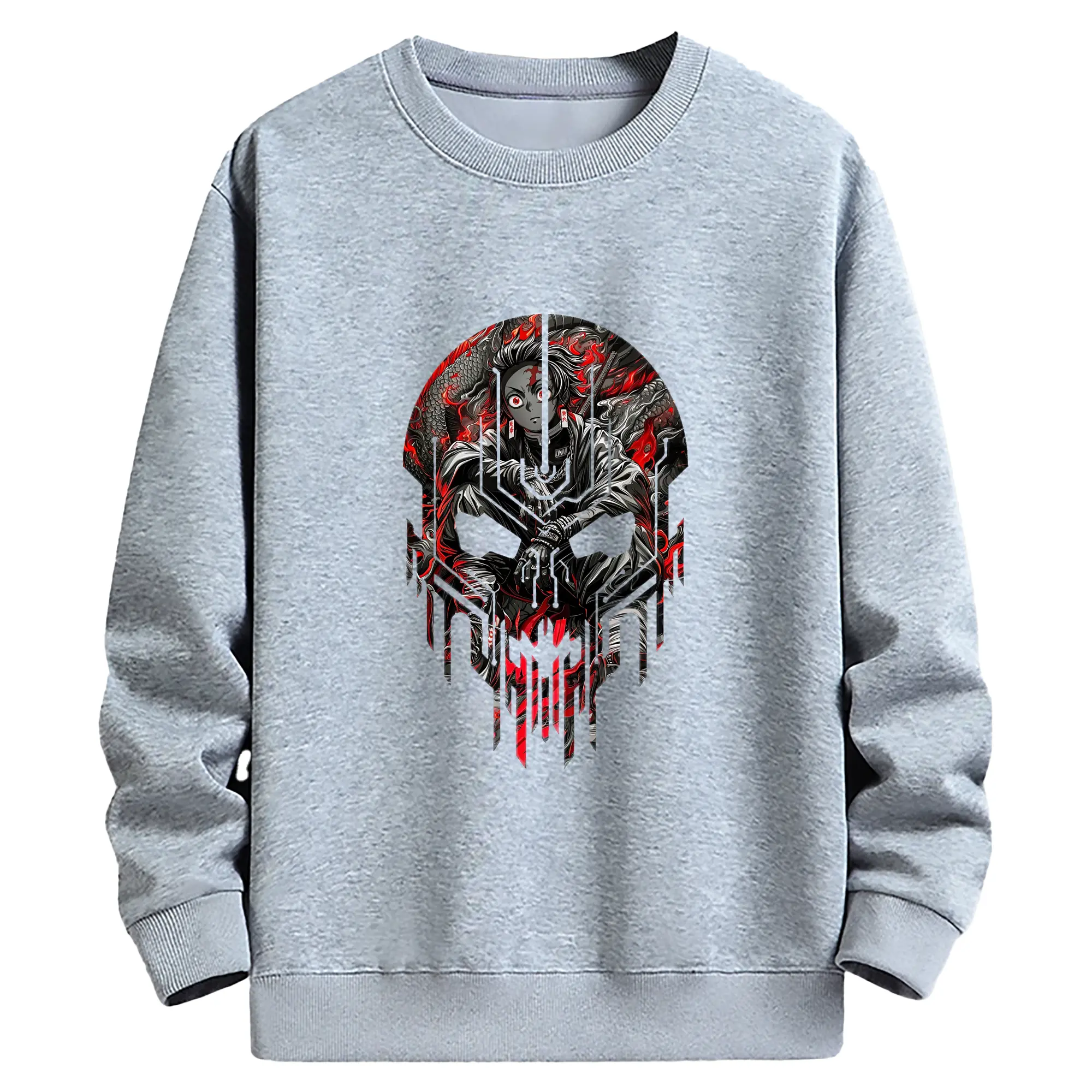鬼滅の刃 グッズ,竈門 炭治郎 - 薄手 クルーネック スウェット 裏毛260g · ポリエステル 春秋向け カジュアル 男女兼用 · トレーナー デイリー スポーツ 散歩に最適