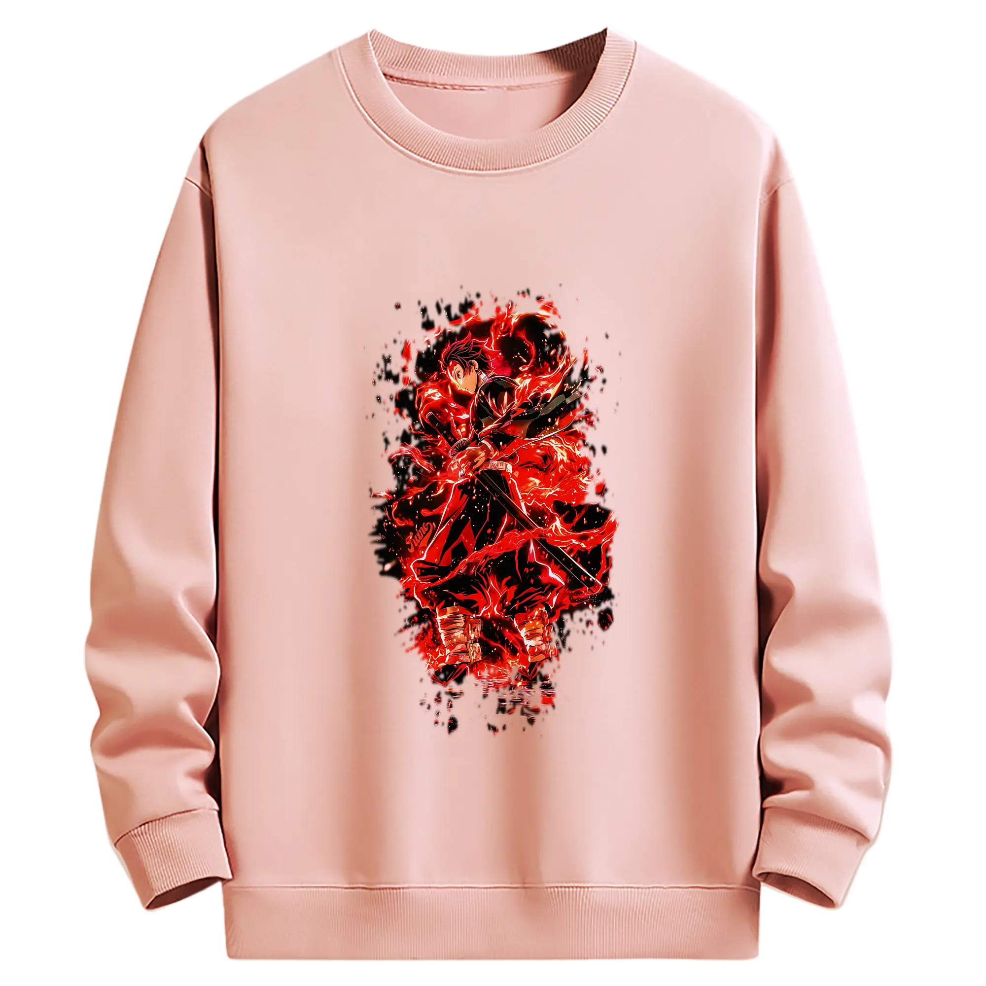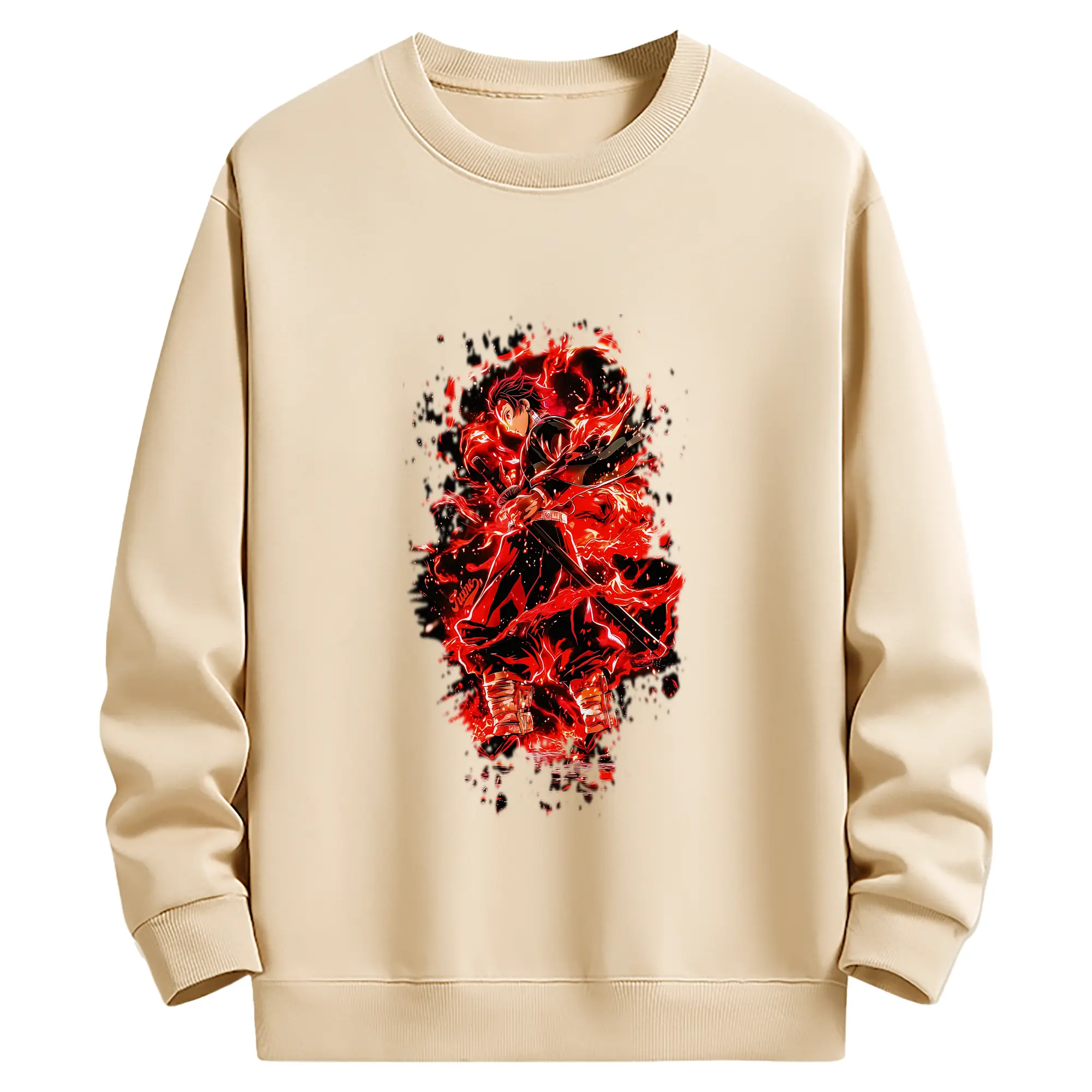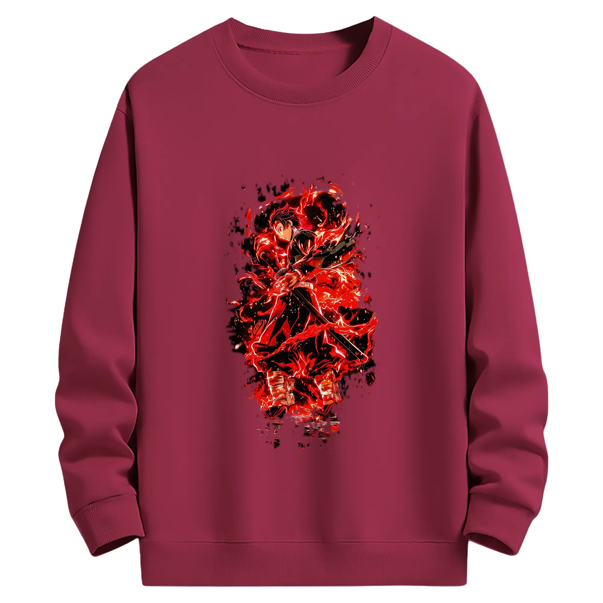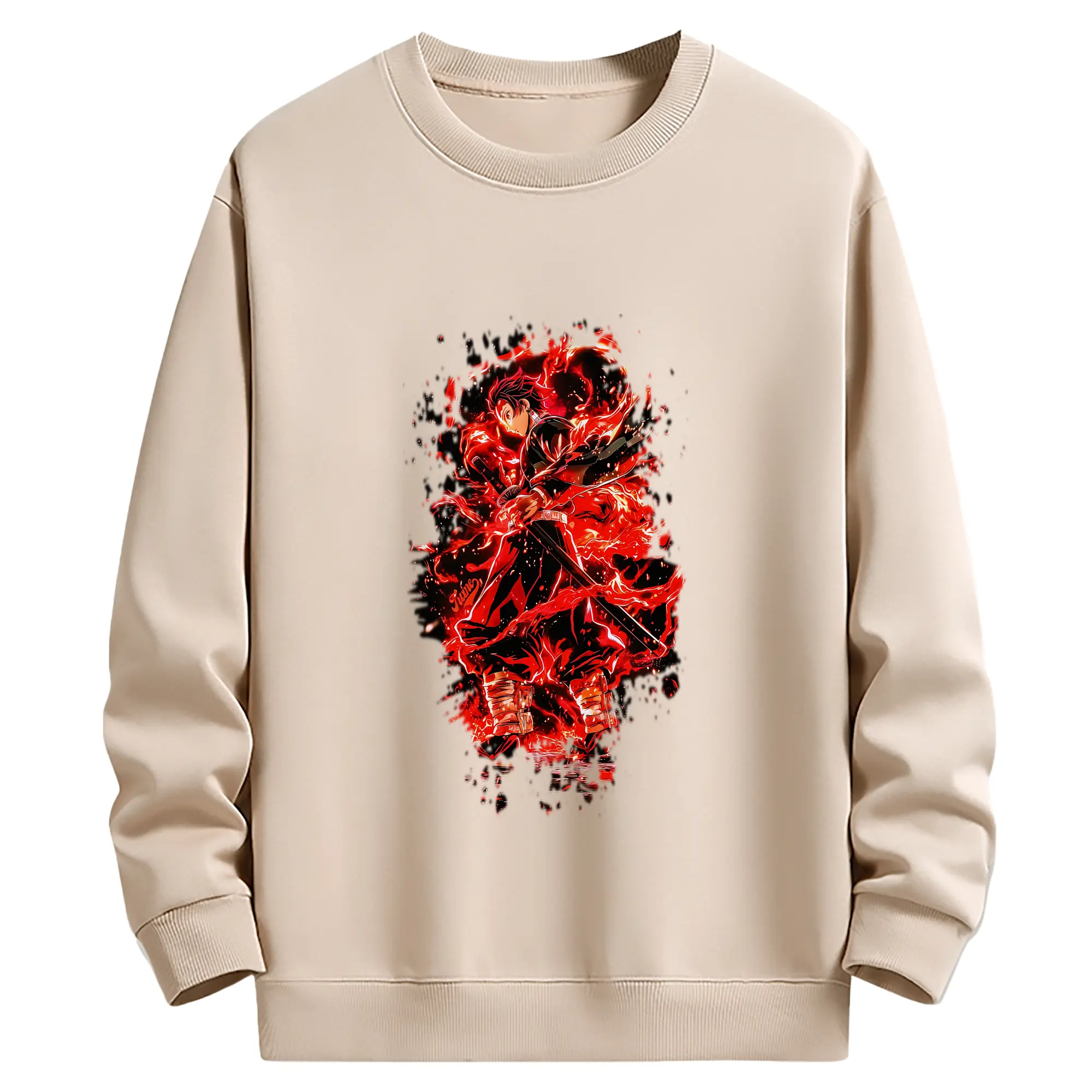 鬼滅の刃 グッズ,竈門 炭治郎 - 薄手 クルーネック スウェット 裏毛260g · ポリエステル 春秋向け カジュアル 男女兼用 · トレーナー デイリー スポーツ 散歩に最適