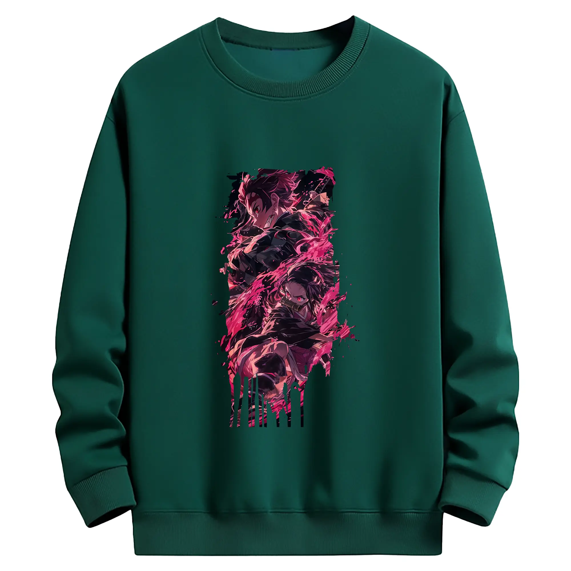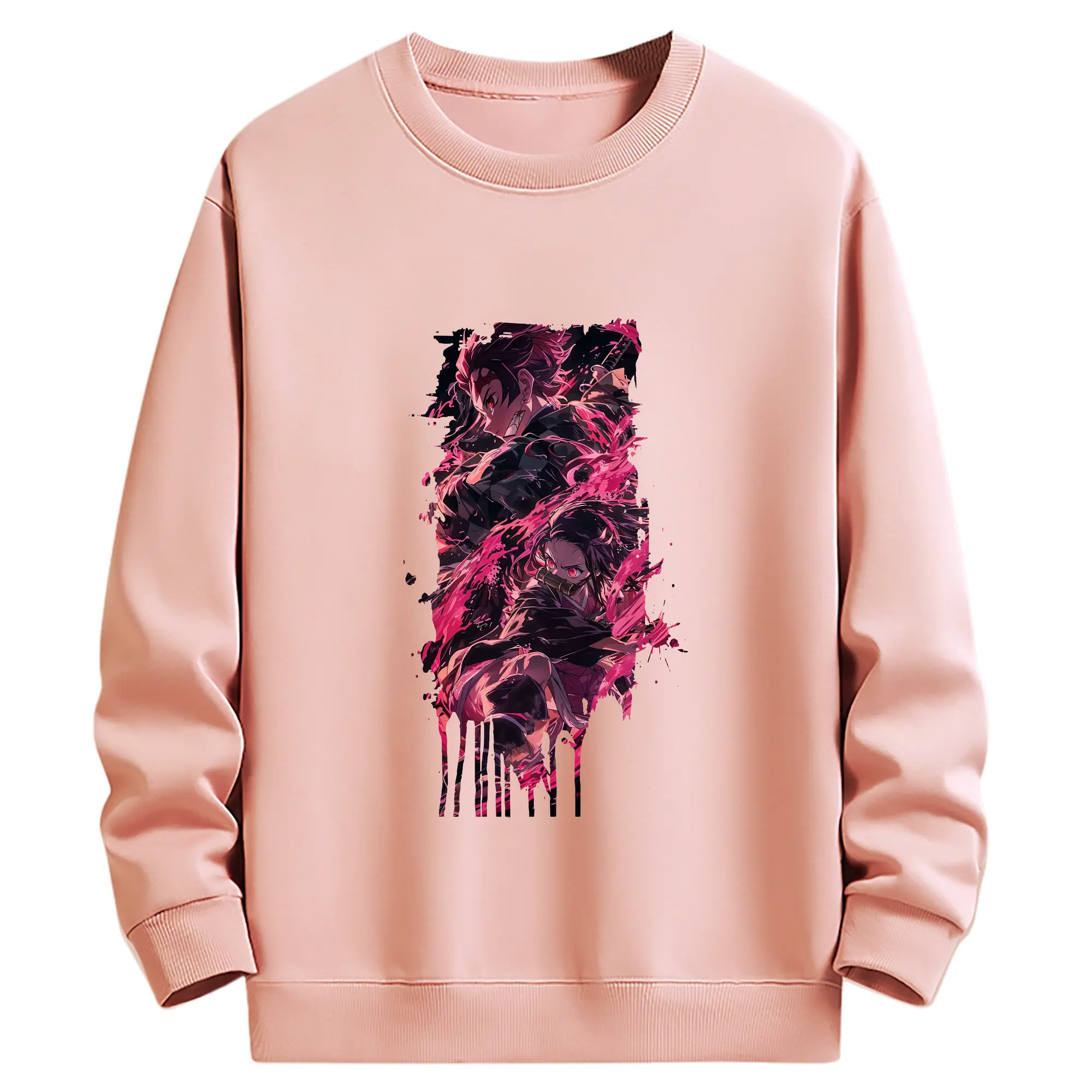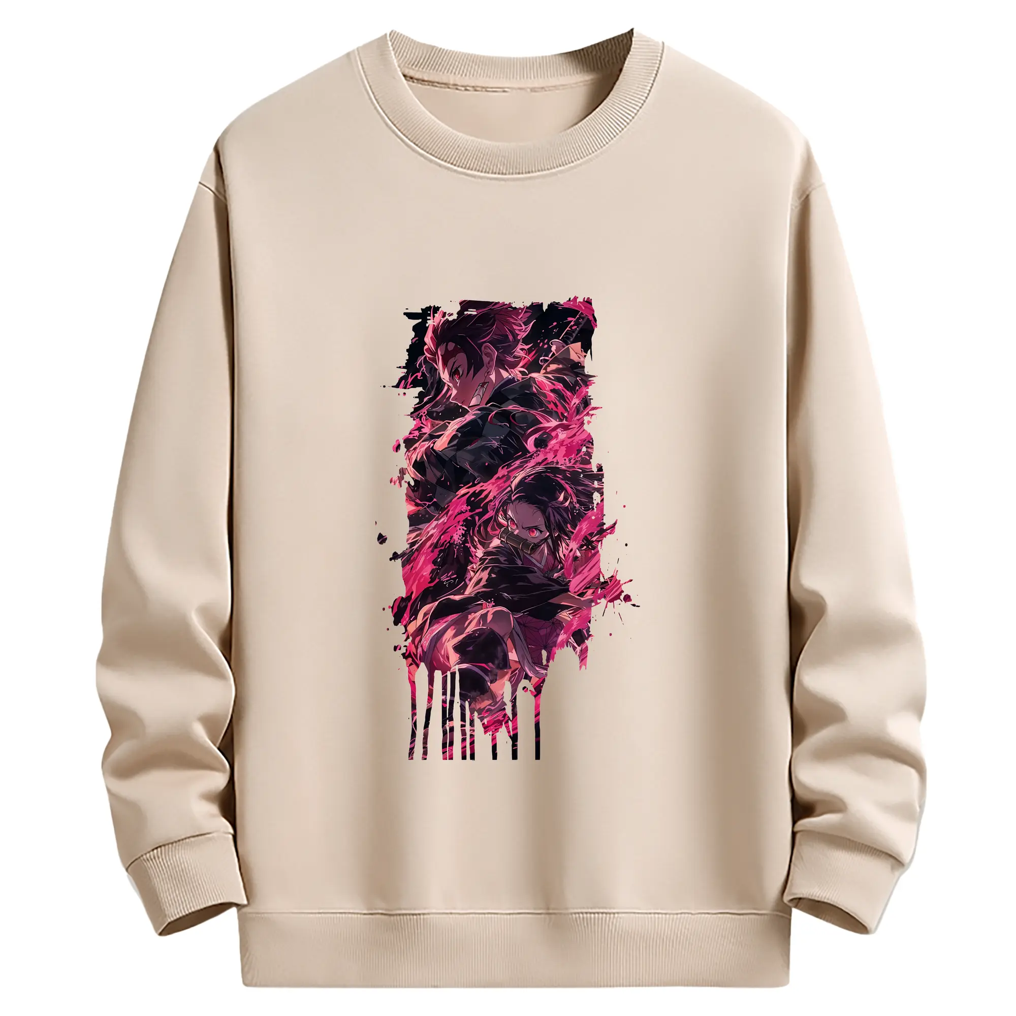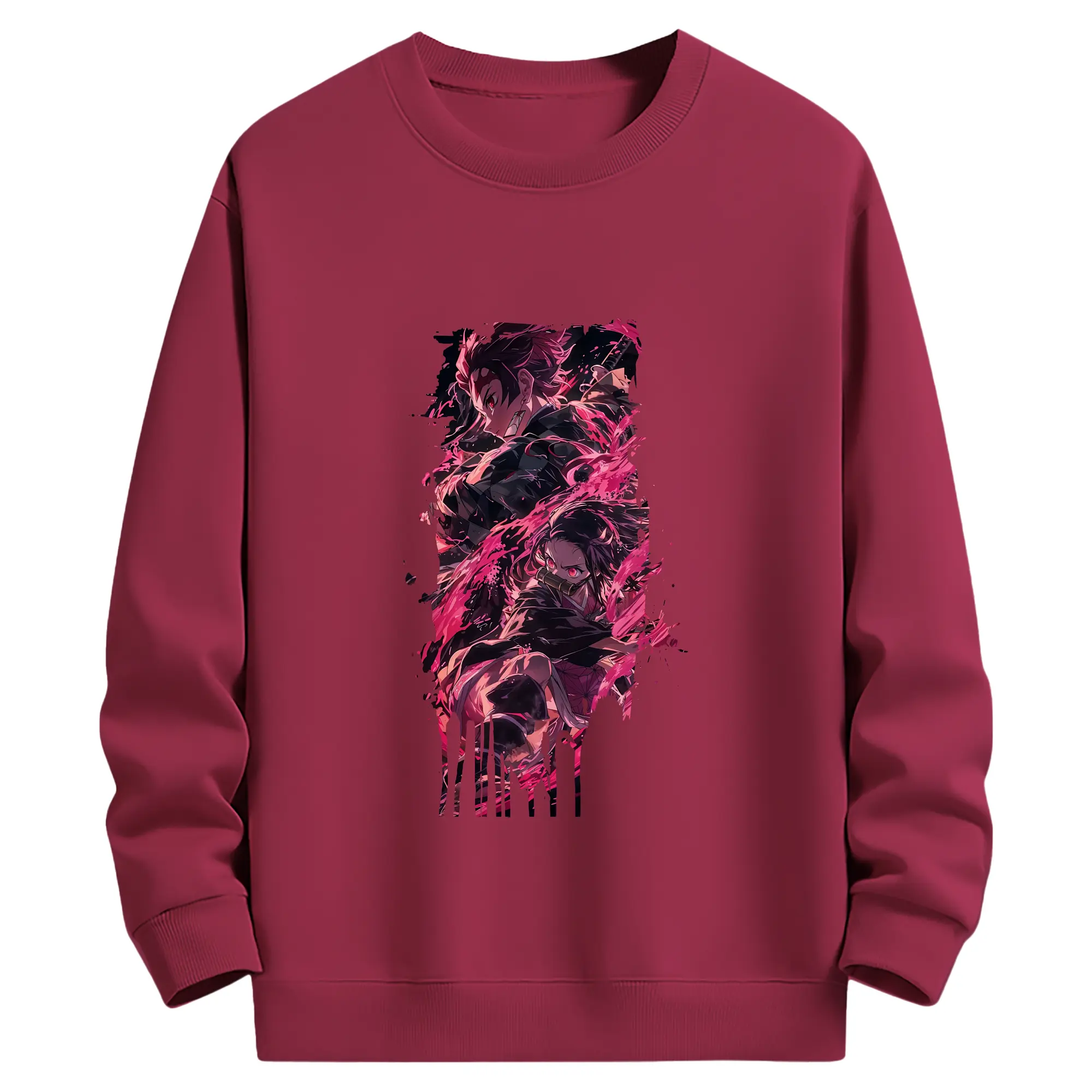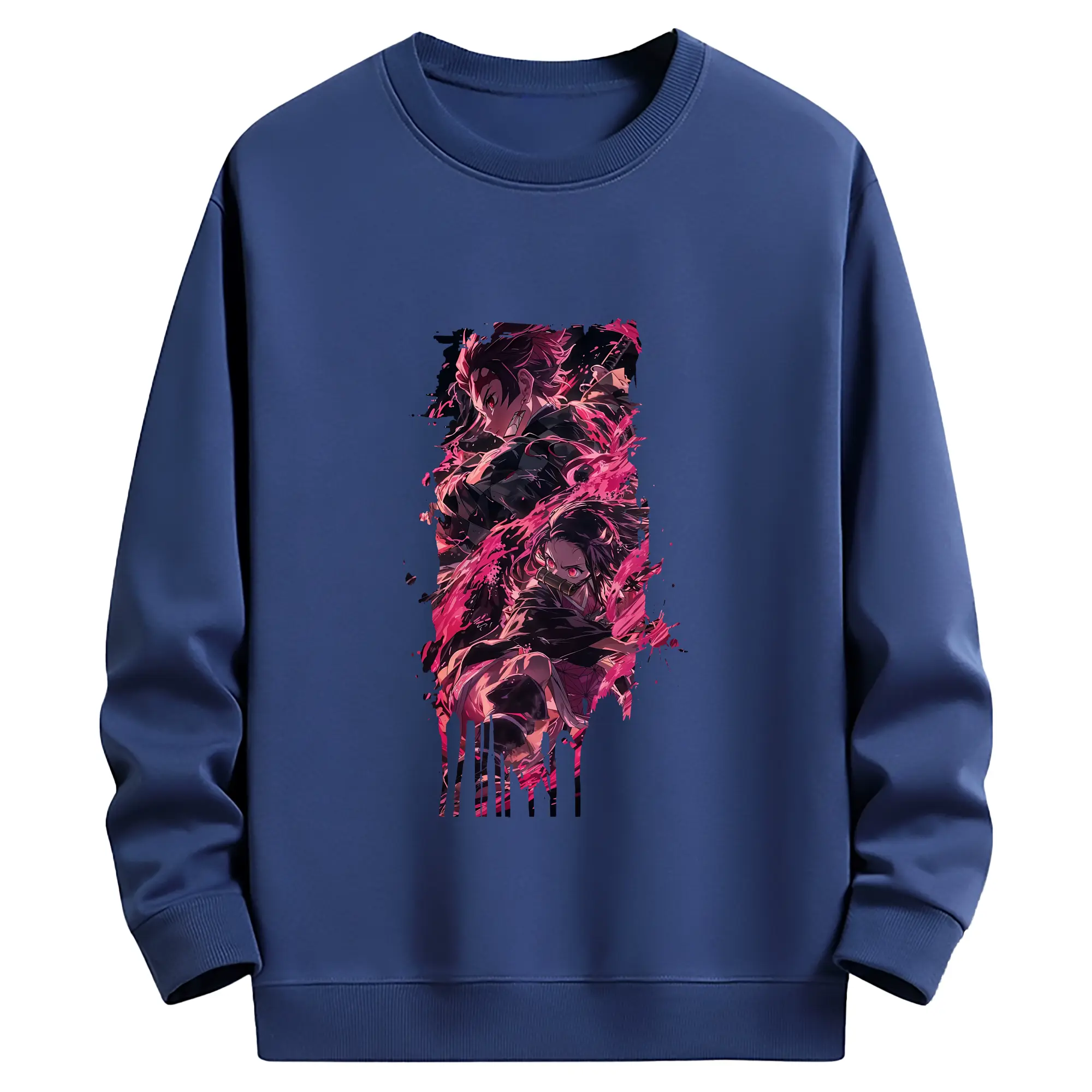 鬼滅の刃 グッズ,竈門 炭治郎 - 薄手 クルーネック スウェット 裏毛260g · ポリエステル 春秋向け カジュアル 男女兼用 · トレーナー デイリー スポーツ 散歩に最適