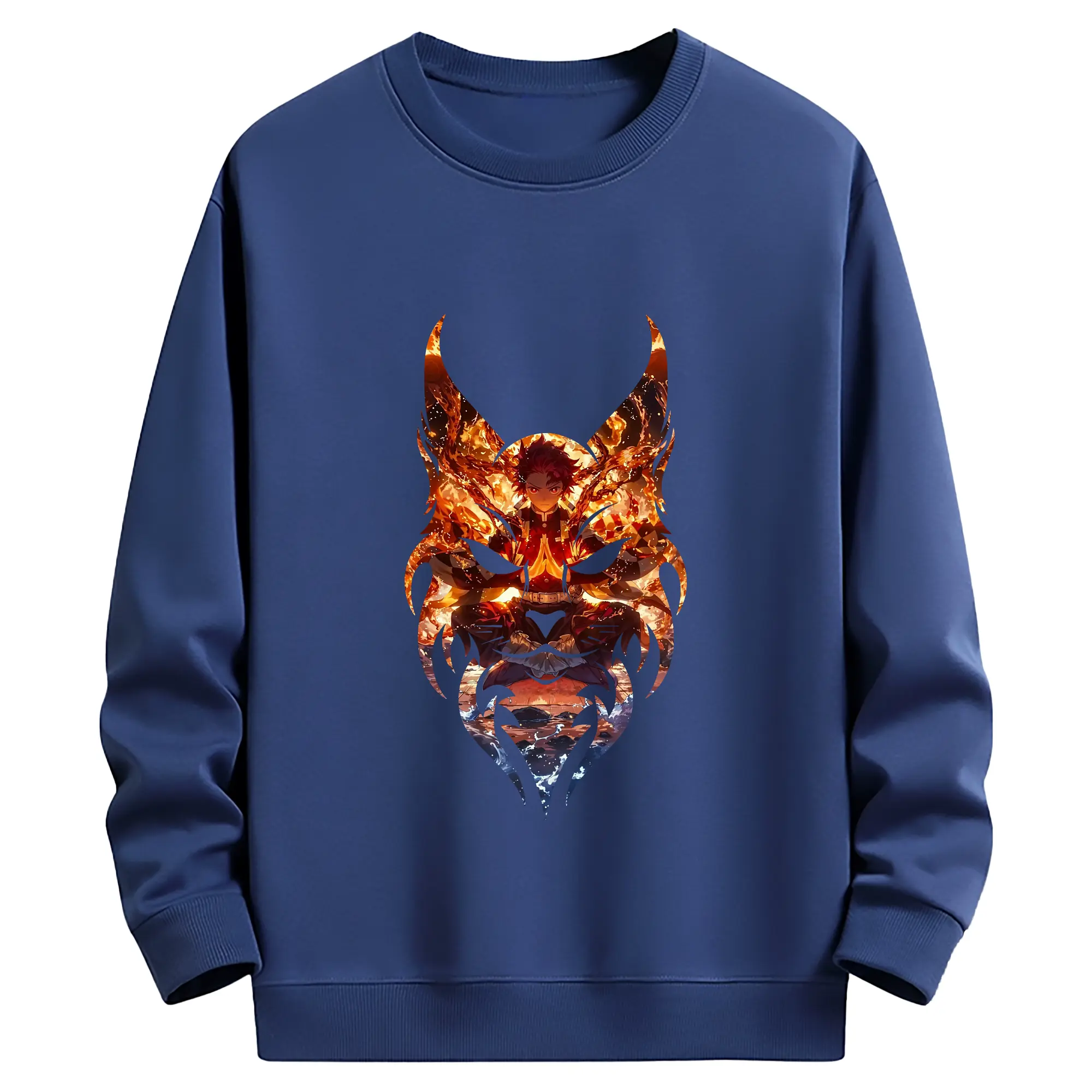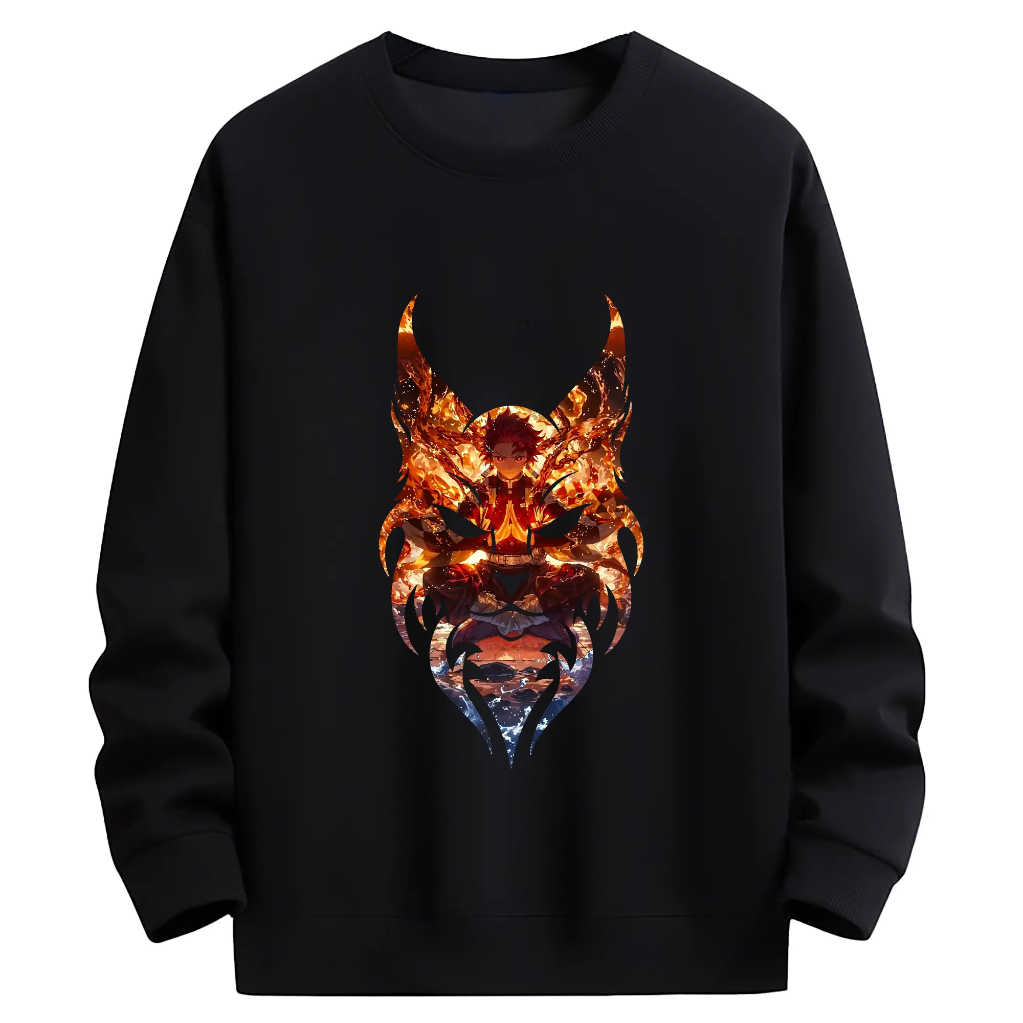 鬼滅の刃 グッズ,竈門 炭治郎 - 薄手 クルーネック スウェット 裏毛260g · ポリエステル 春秋向け カジュアル 男女兼用 · トレーナー デイリー スポーツ 散歩に最適