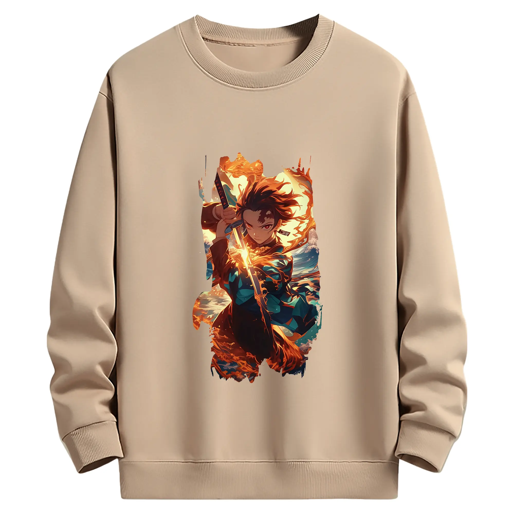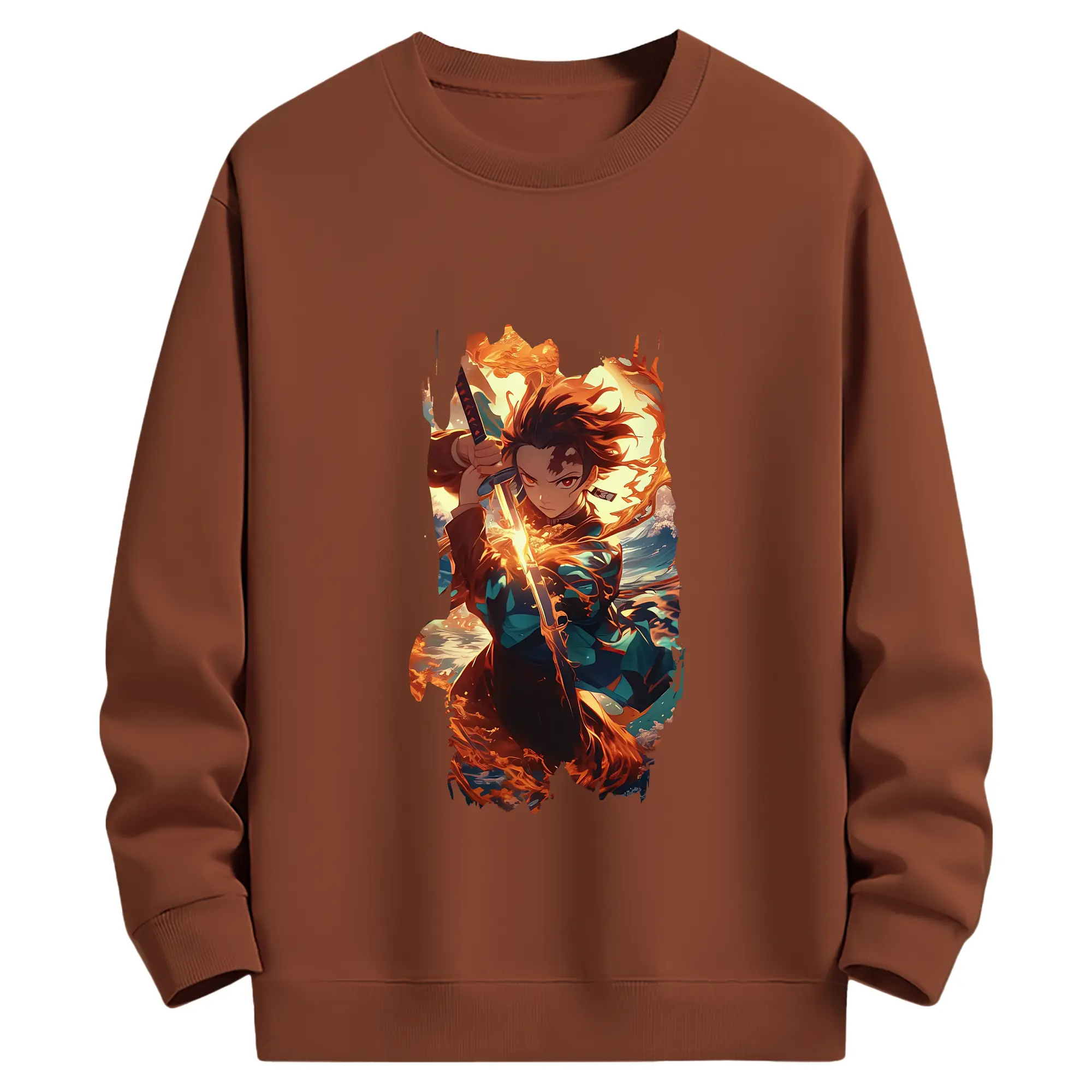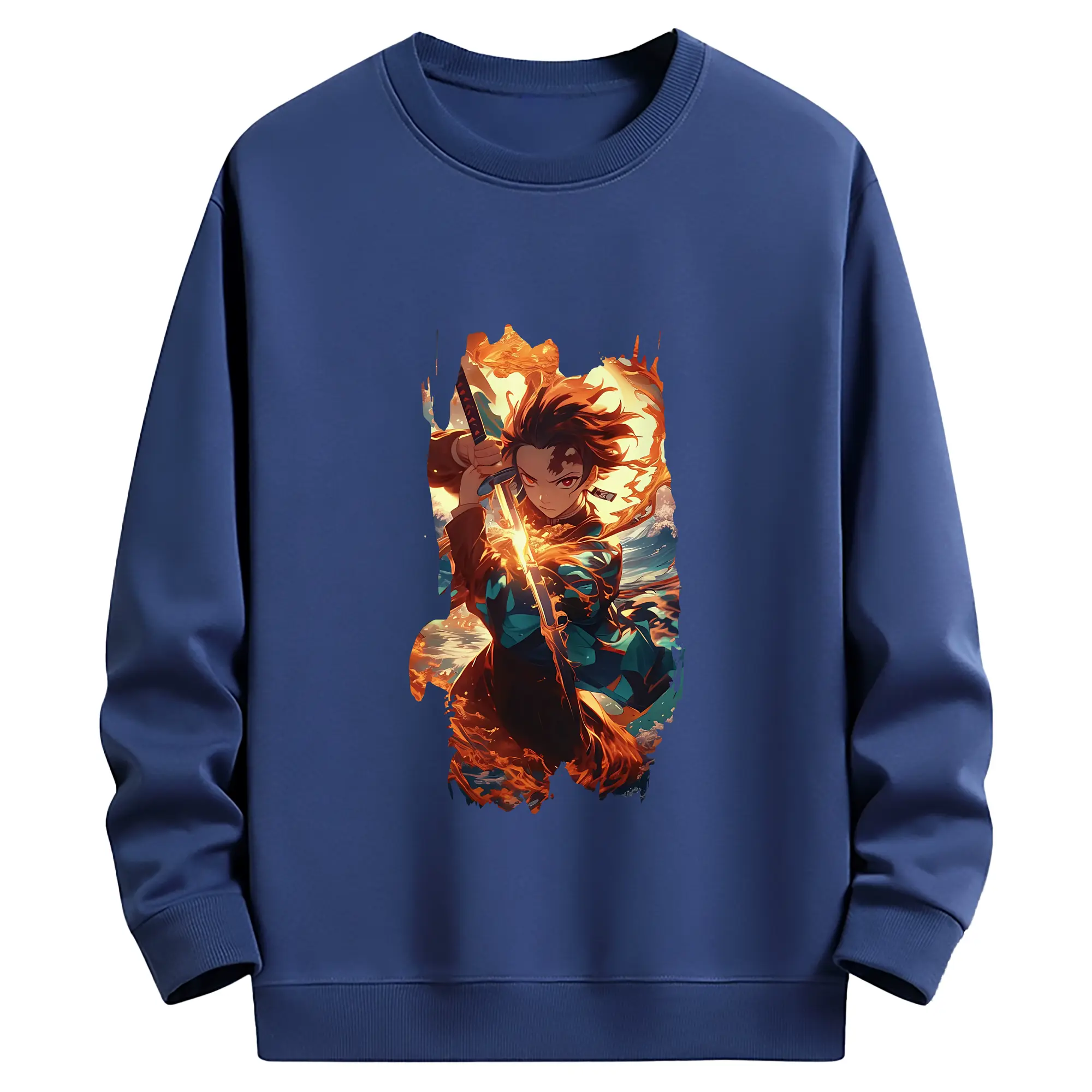 鬼滅の刃 グッズ,竈門 炭治郎 - 薄手 クルーネック スウェット 裏毛260g · ポリエステル 春秋向け カジュアル 男女兼用 · トレーナー デイリー スポーツ 散歩に最適