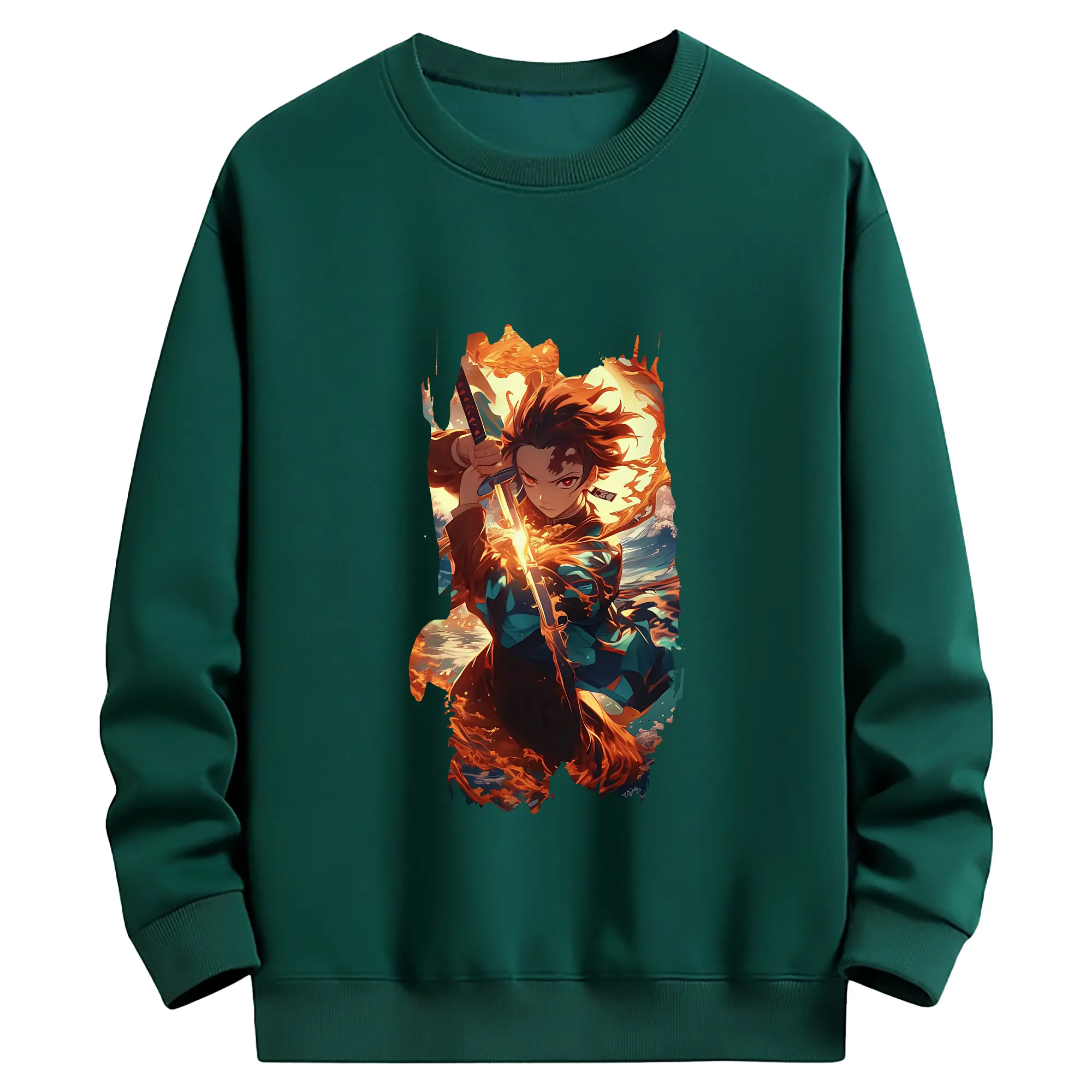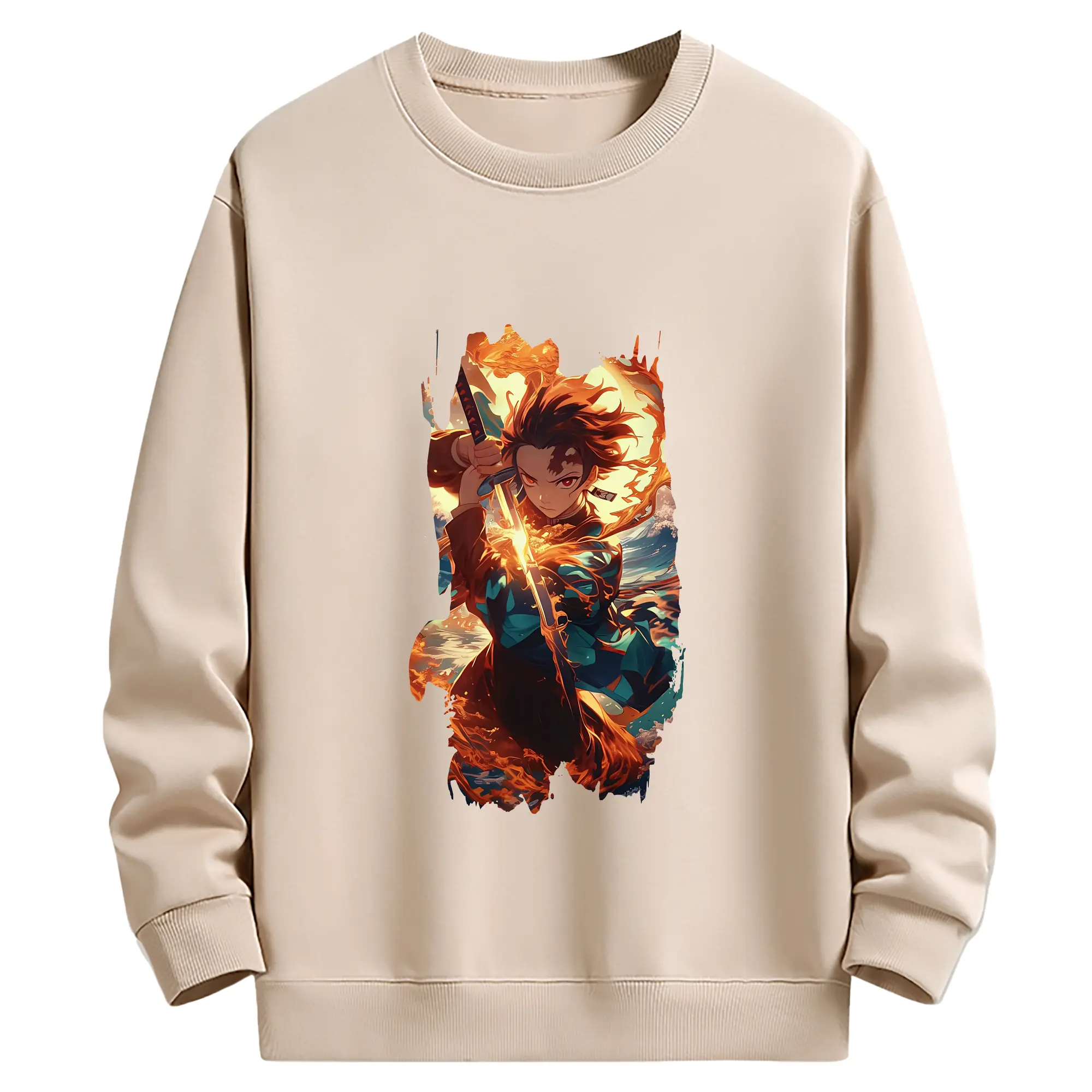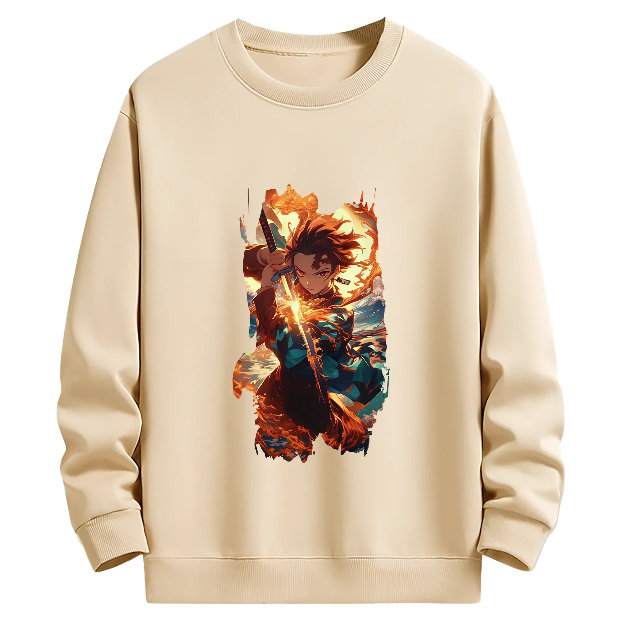 鬼滅の刃 グッズ,竈門 炭治郎 - 薄手 クルーネック スウェット 裏毛260g · ポリエステル 春秋向け カジュアル 男女兼用 · トレーナー デイリー スポーツ 散歩に最適