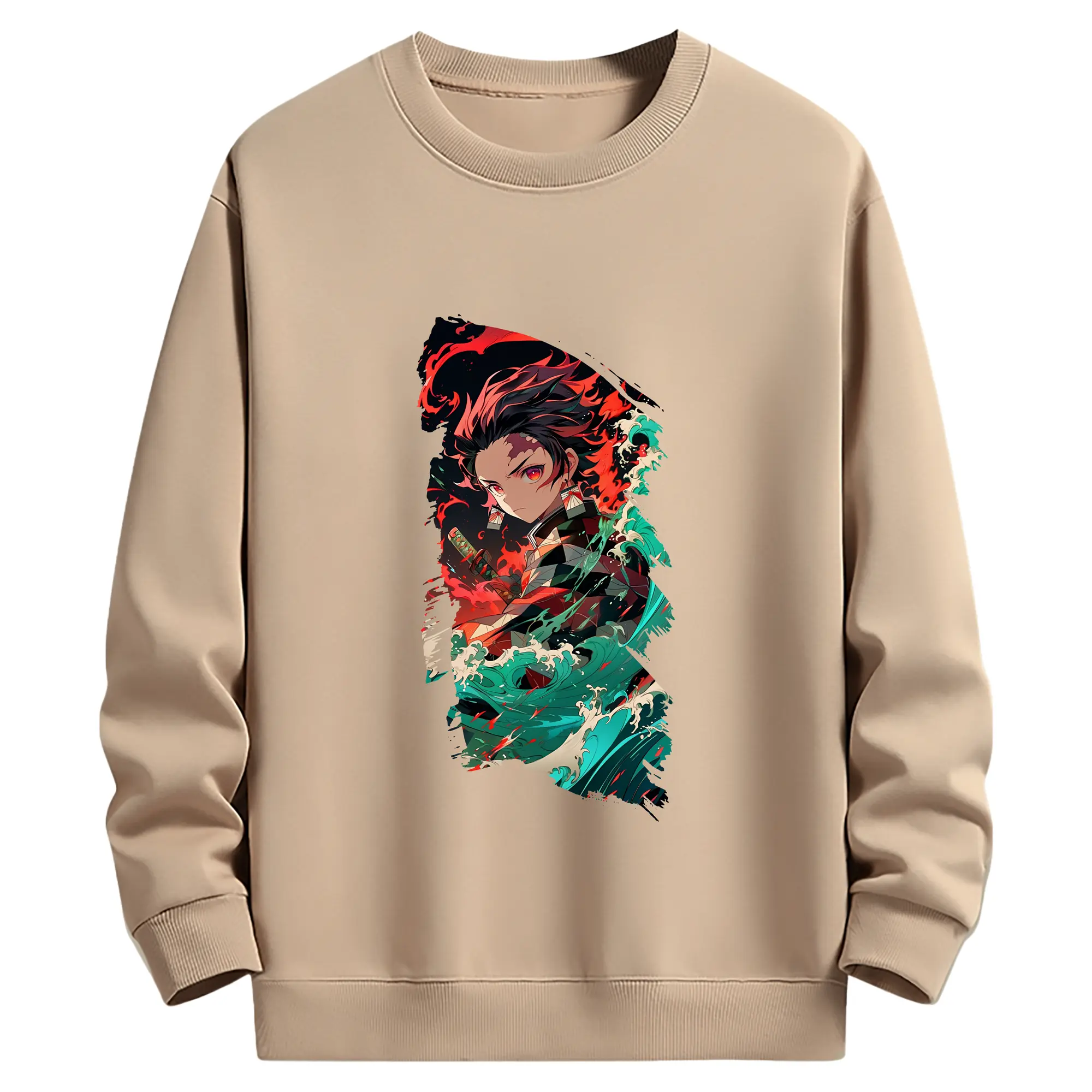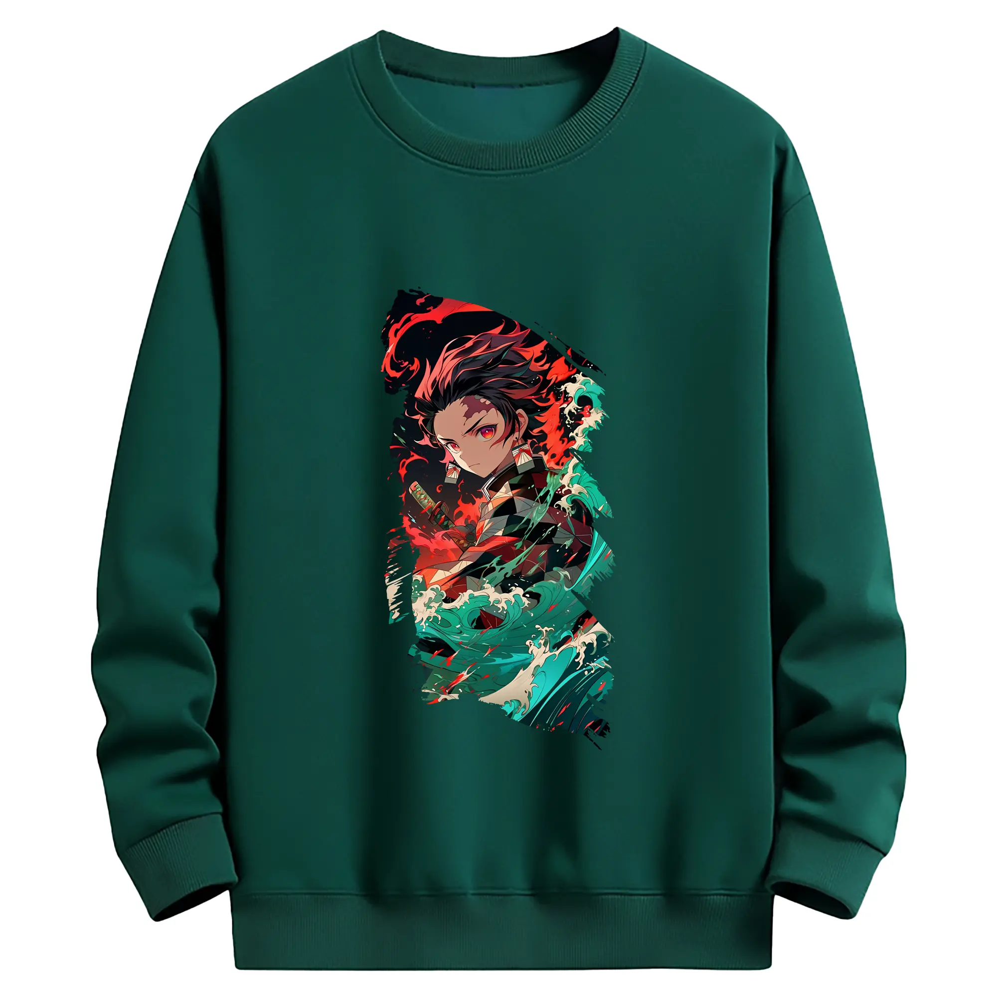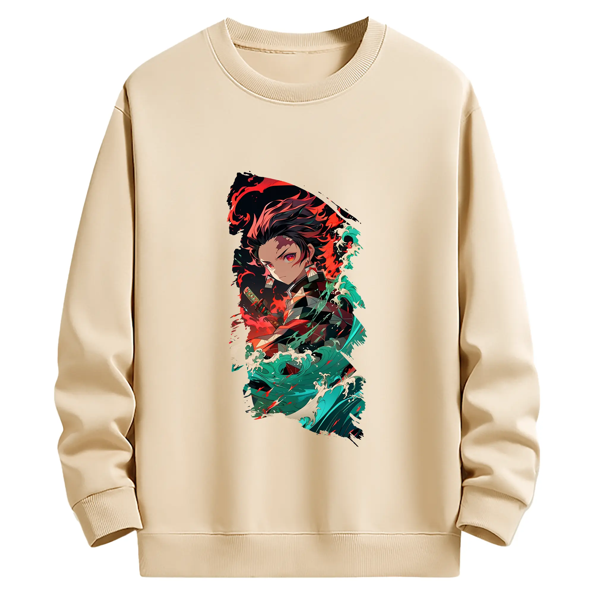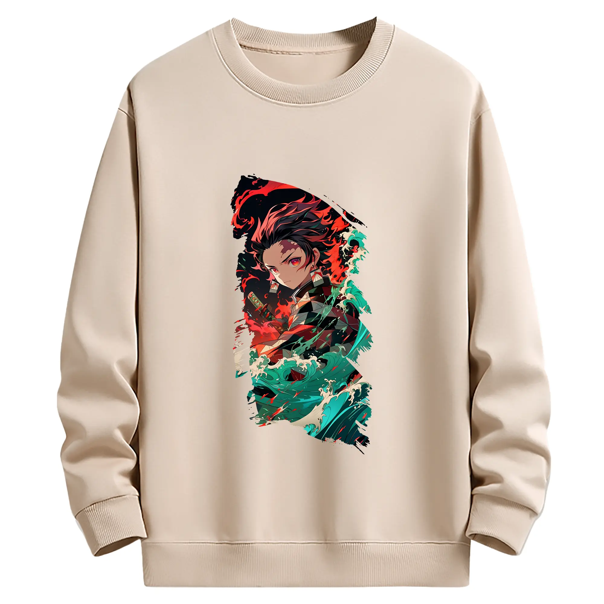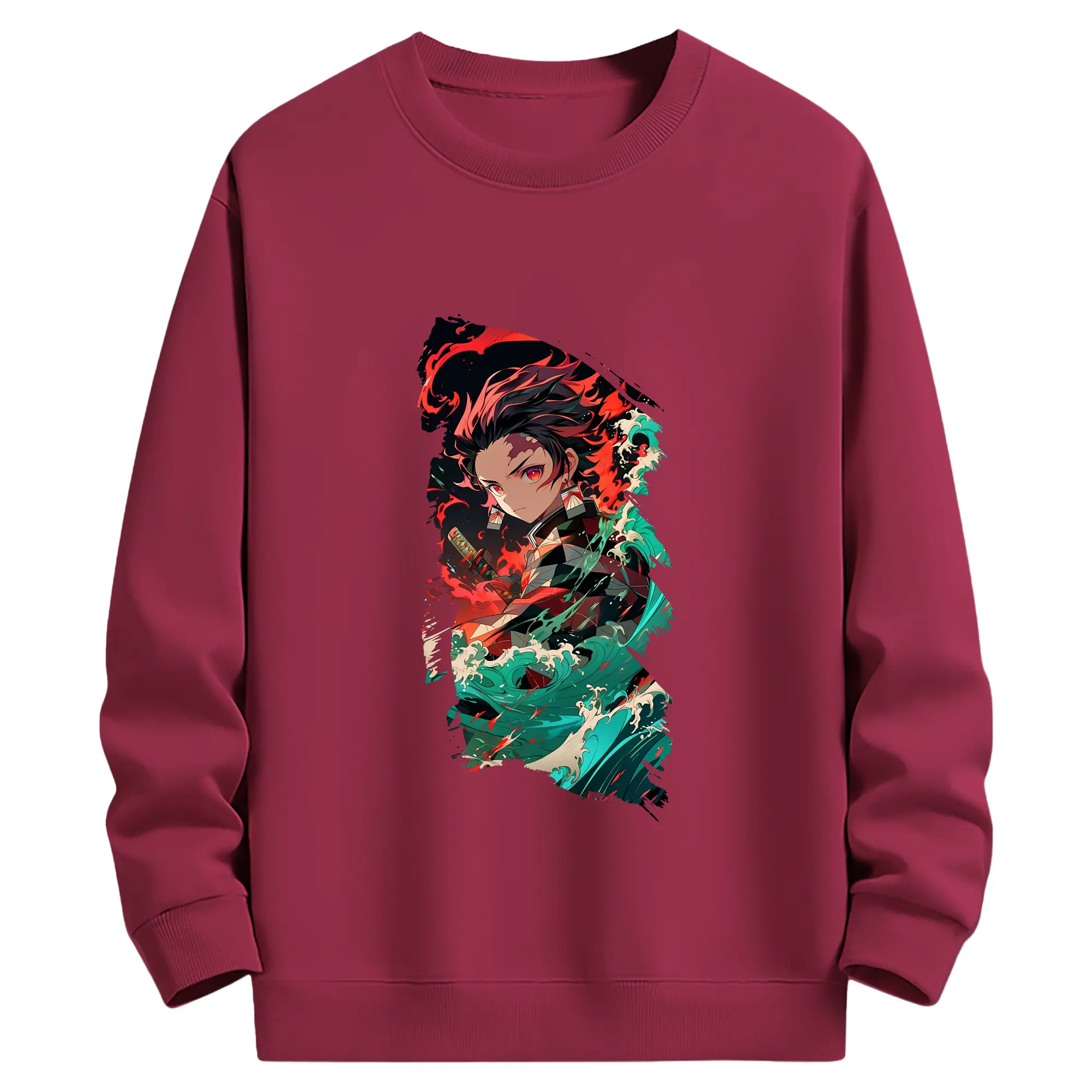 鬼滅の刃 グッズ,竈門 炭治郎 - 薄手 クルーネック スウェット 裏毛260g · ポリエステル 春秋向け カジュアル 男女兼用 · トレーナー デイリー スポーツ 散歩に最適