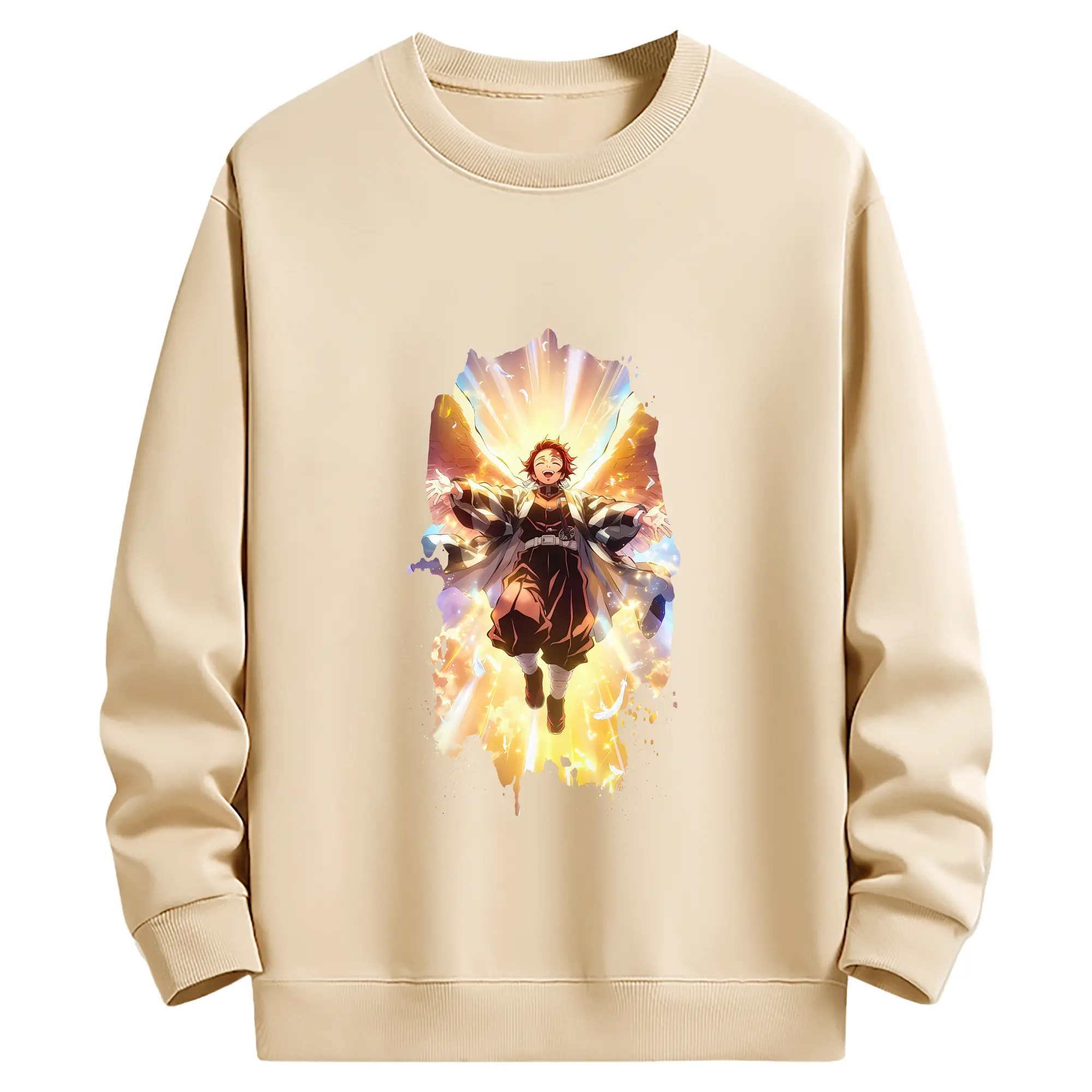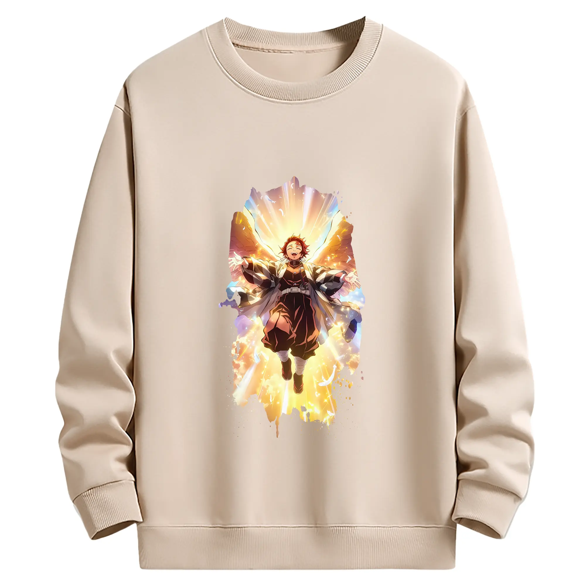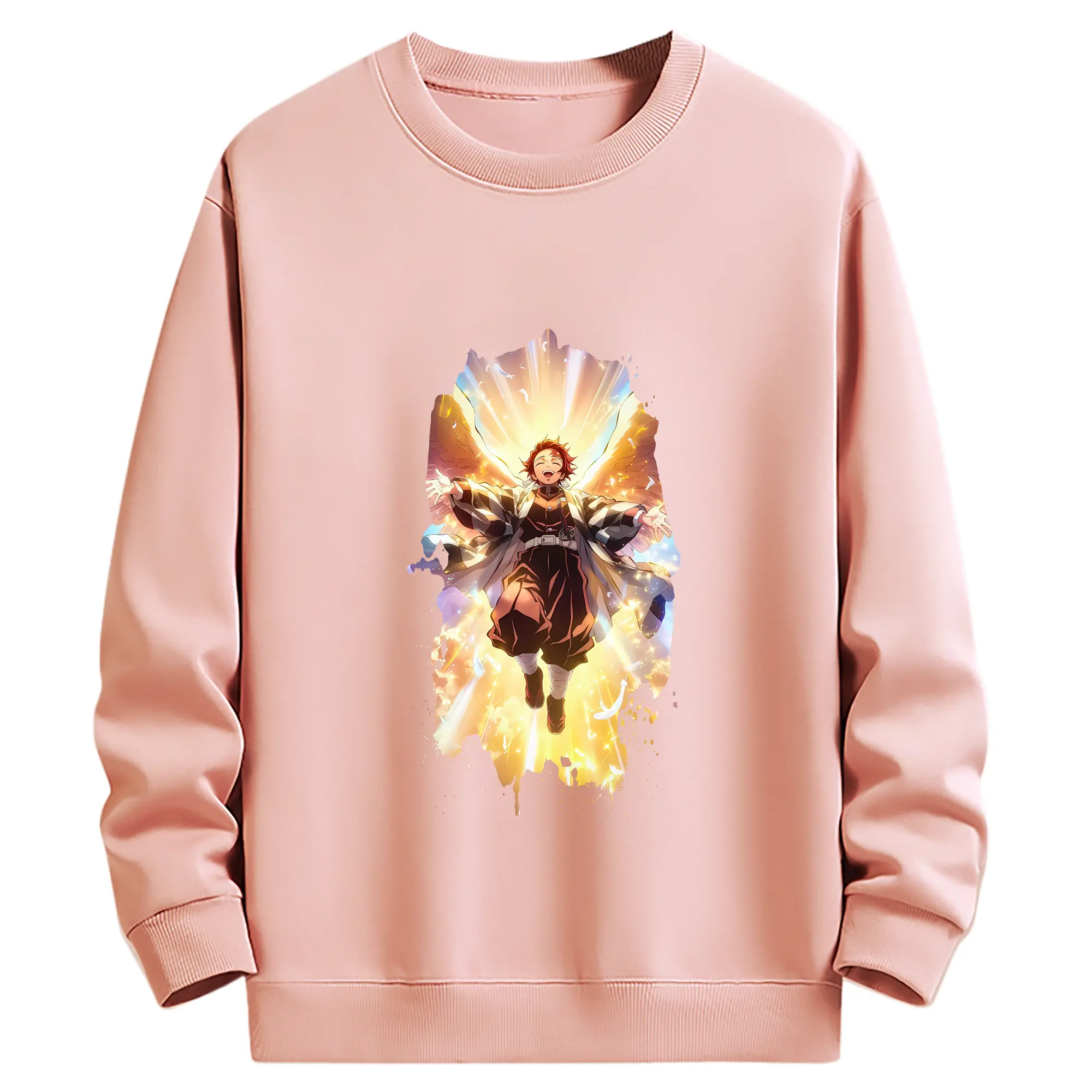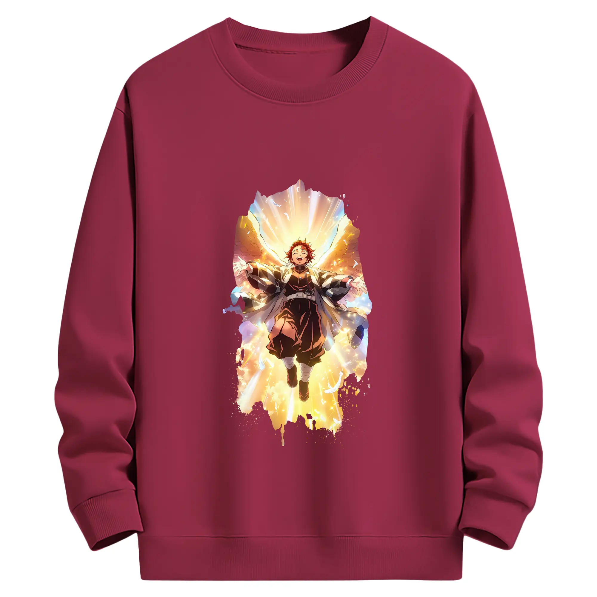 鬼滅の刃 グッズ,竈門 炭治郎 - 薄手 クルーネック スウェット 裏毛260g · ポリエステル 春秋向け カジュアル 男女兼用 · トレーナー デイリー スポーツ 散歩に最適