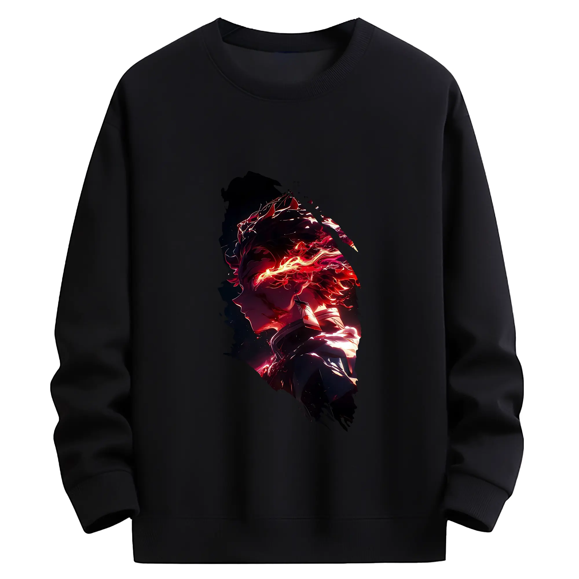 鬼滅の刃 グッズ,竈門 炭治郎 - 薄手 クルーネック スウェット 裏毛260g · ポリエステル 春秋向け カジュアル 男女兼用 · トレーナー デイリー スポーツ 散歩に最適