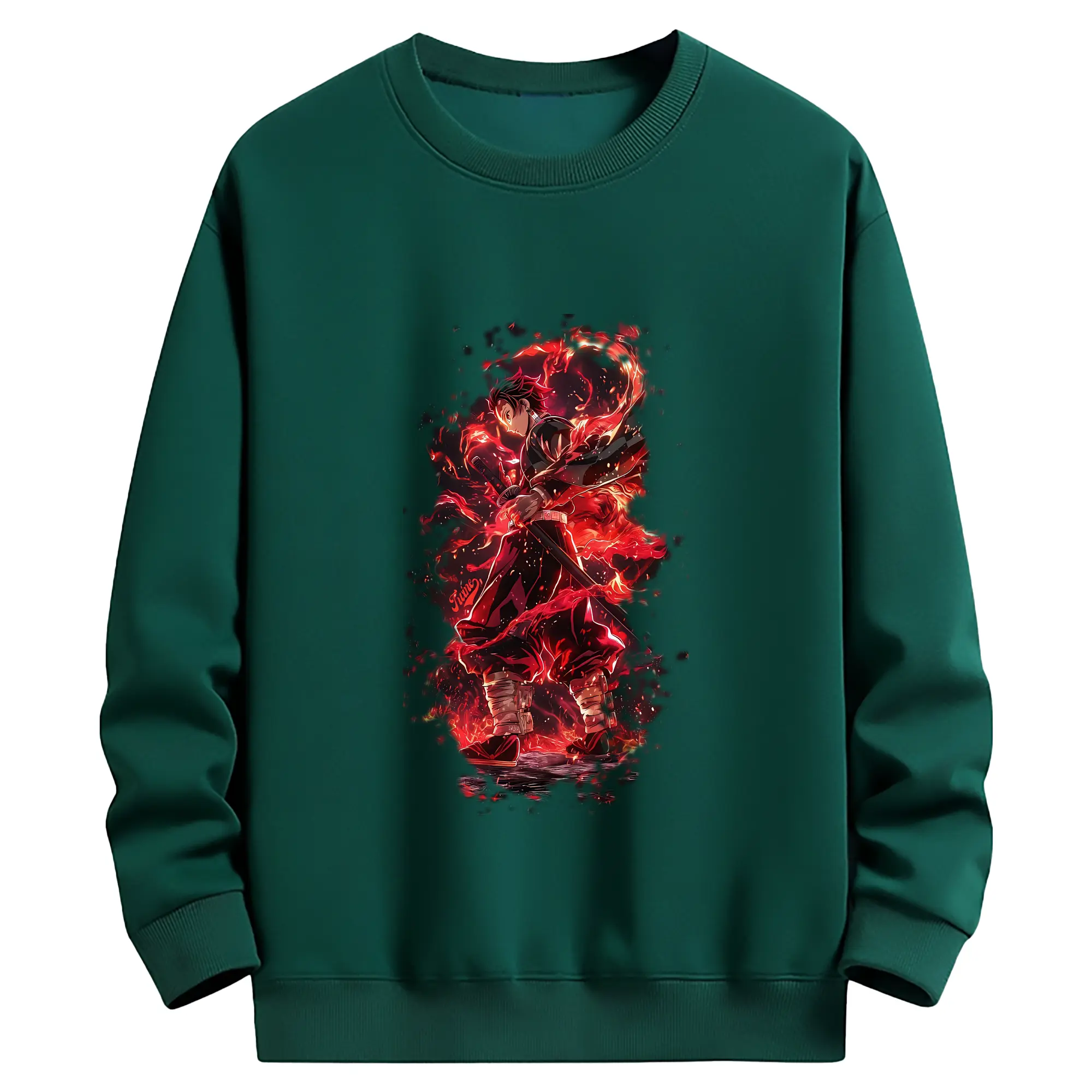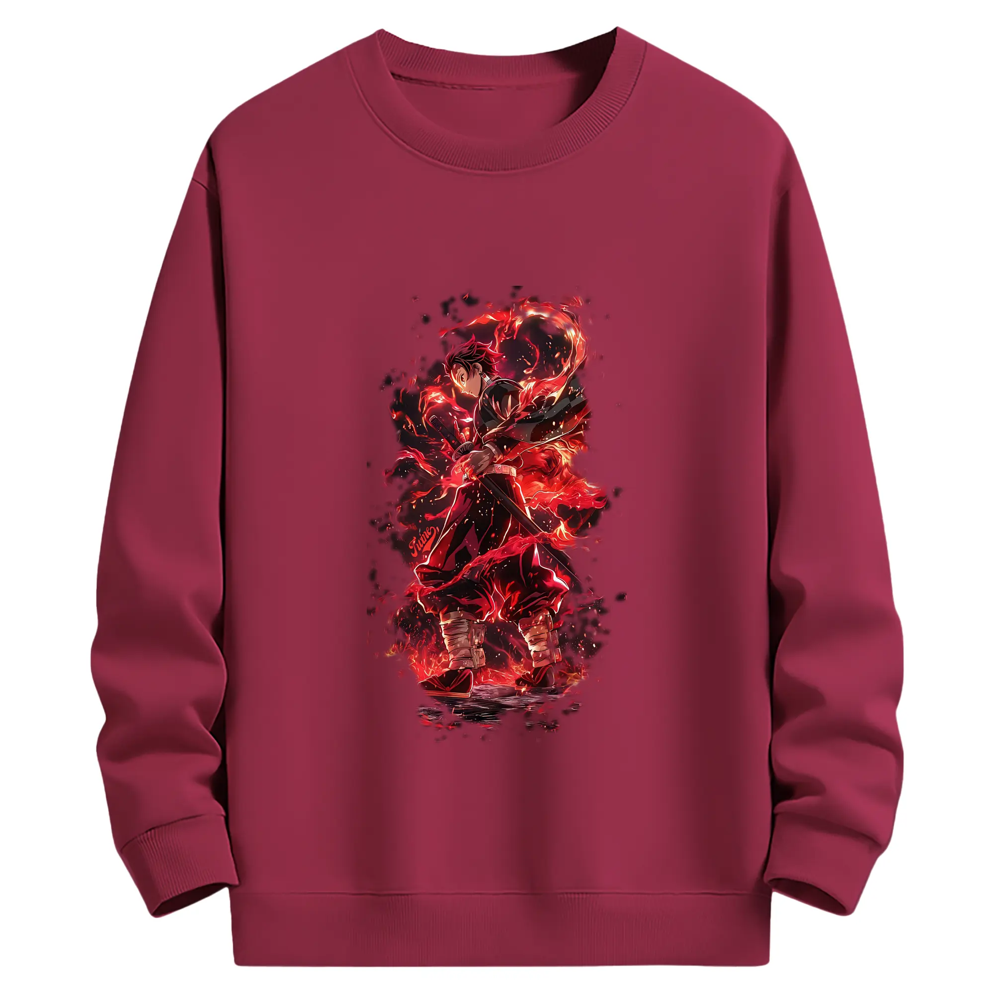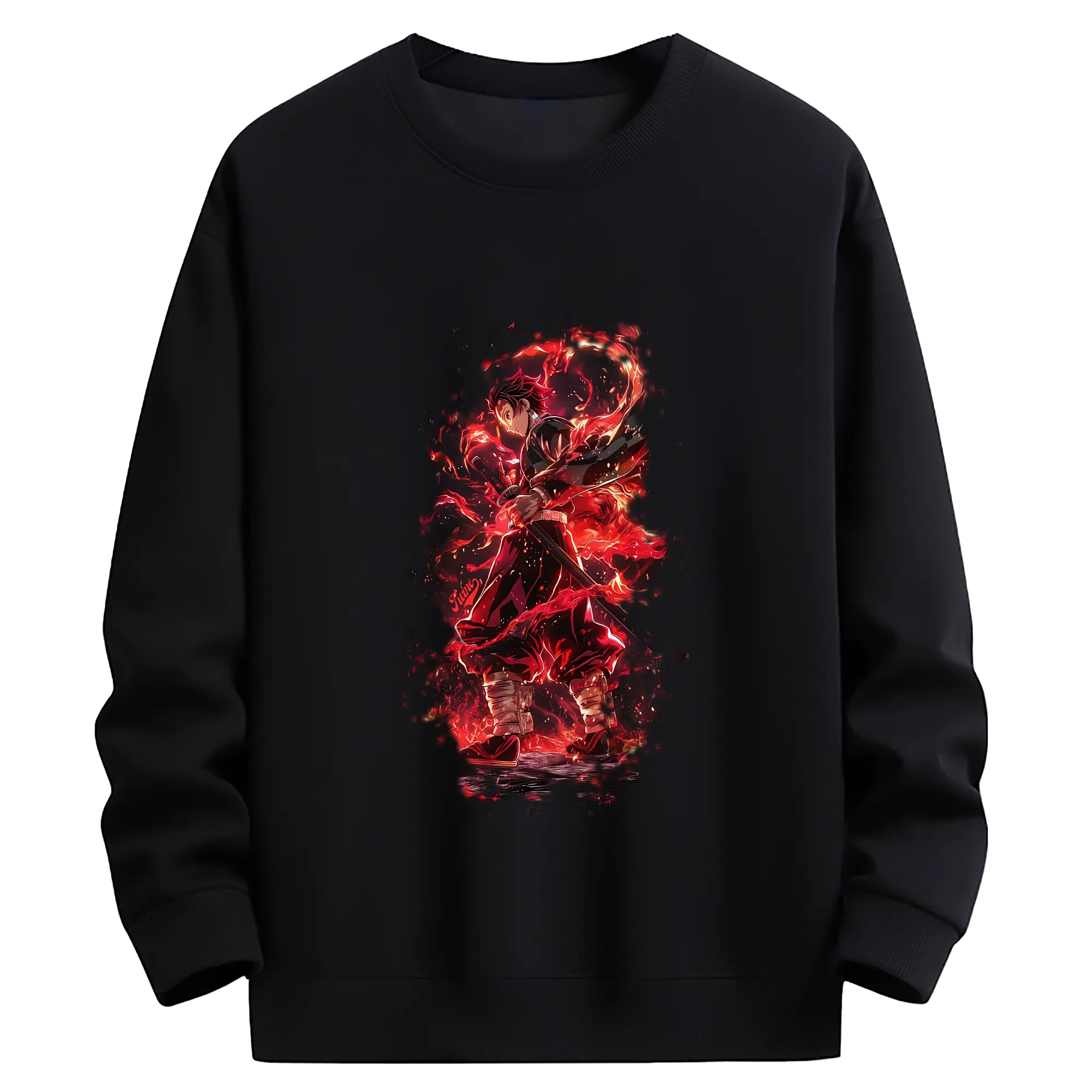 鬼滅の刃 グッズ,竈門 炭治郎 - 薄手 クルーネック スウェット 裏毛260g · ポリエステル 春秋向け カジュアル 男女兼用 · トレーナー デイリー スポーツ 散歩に最適