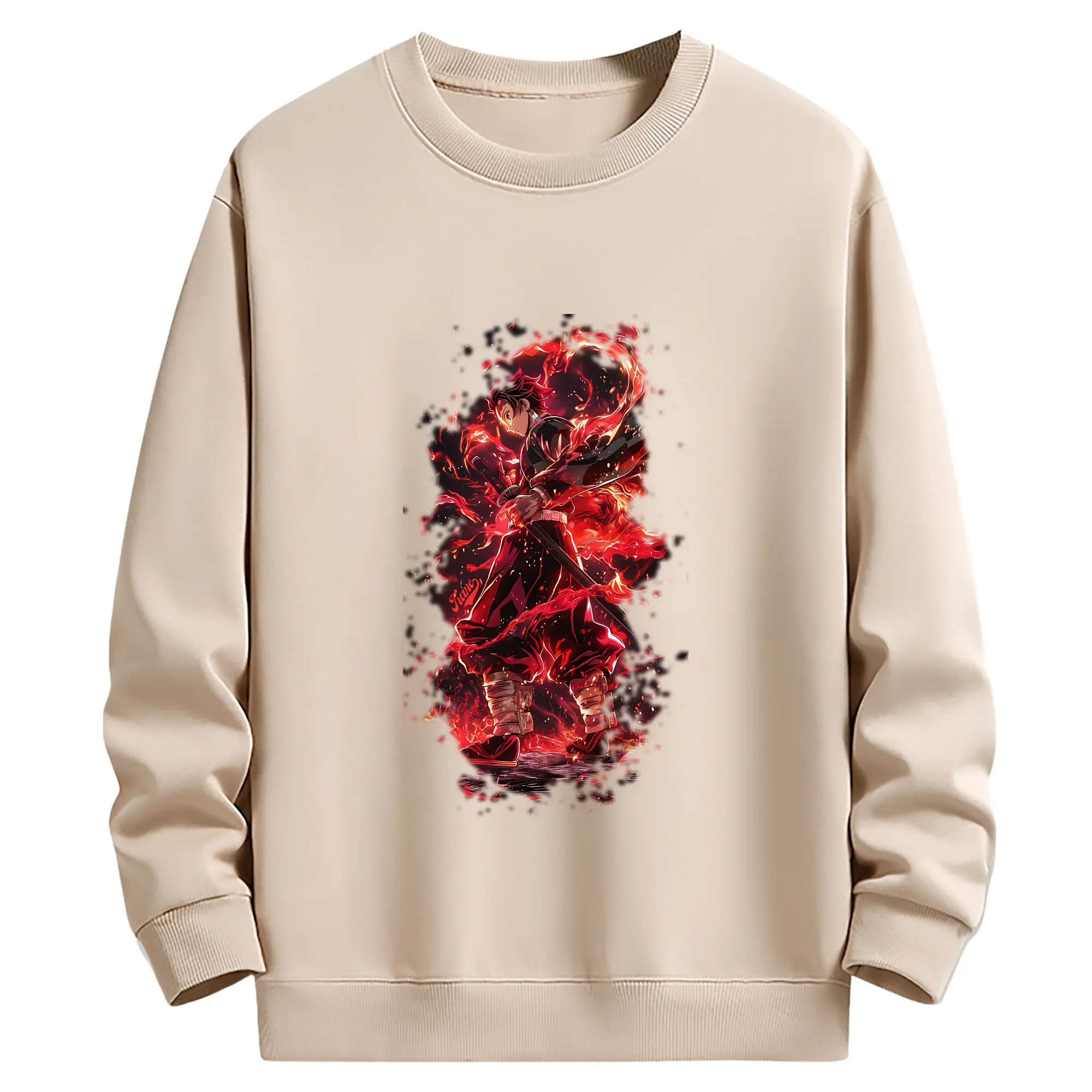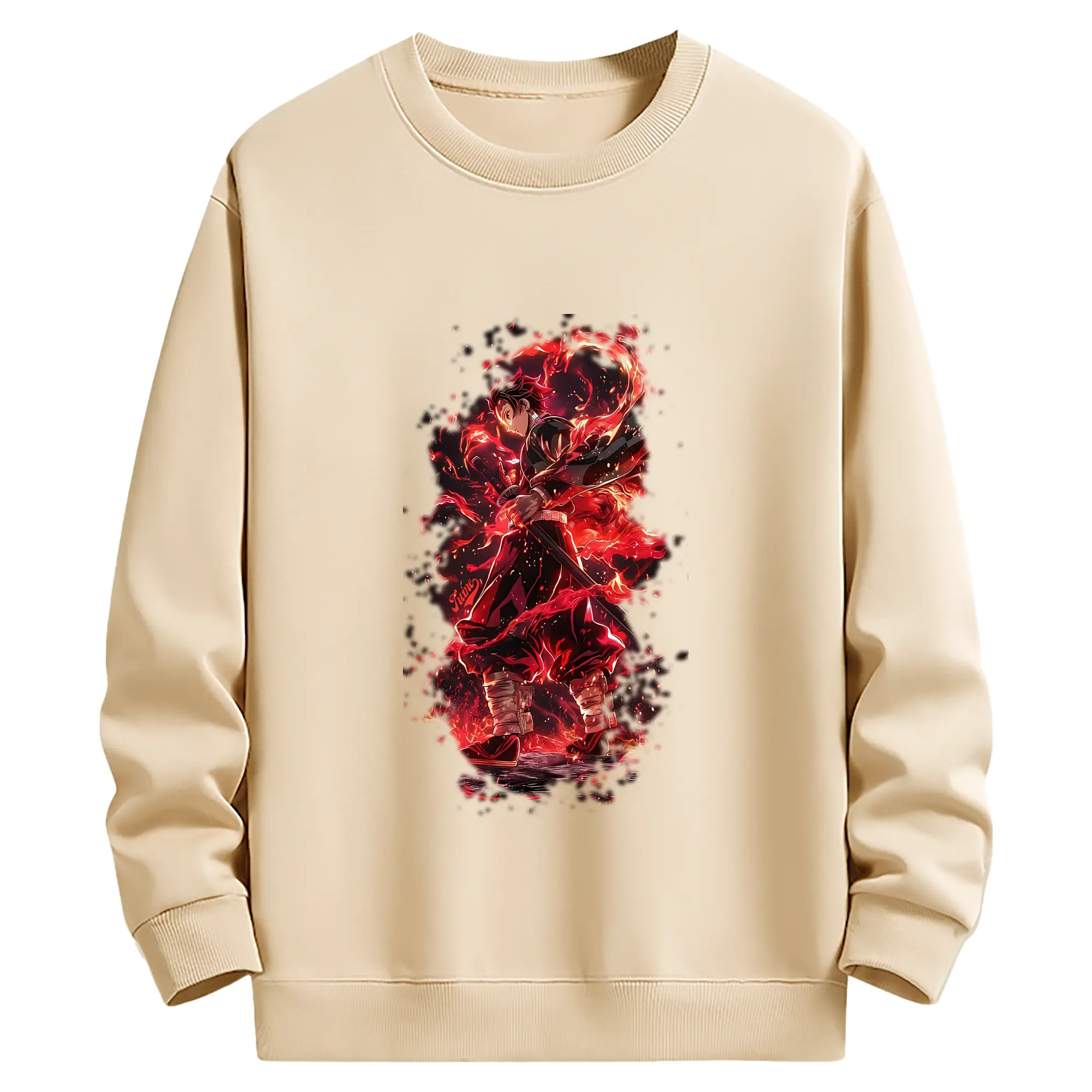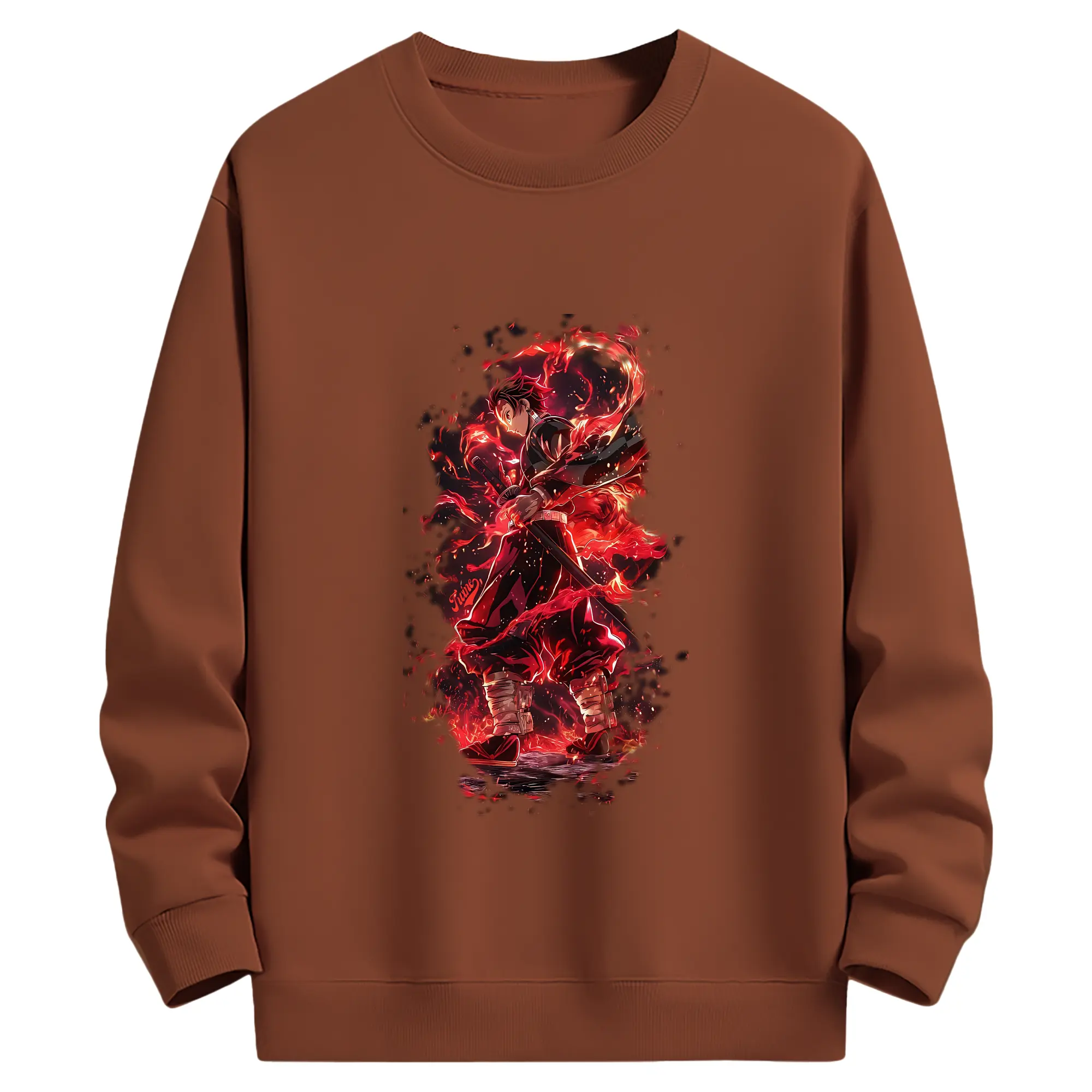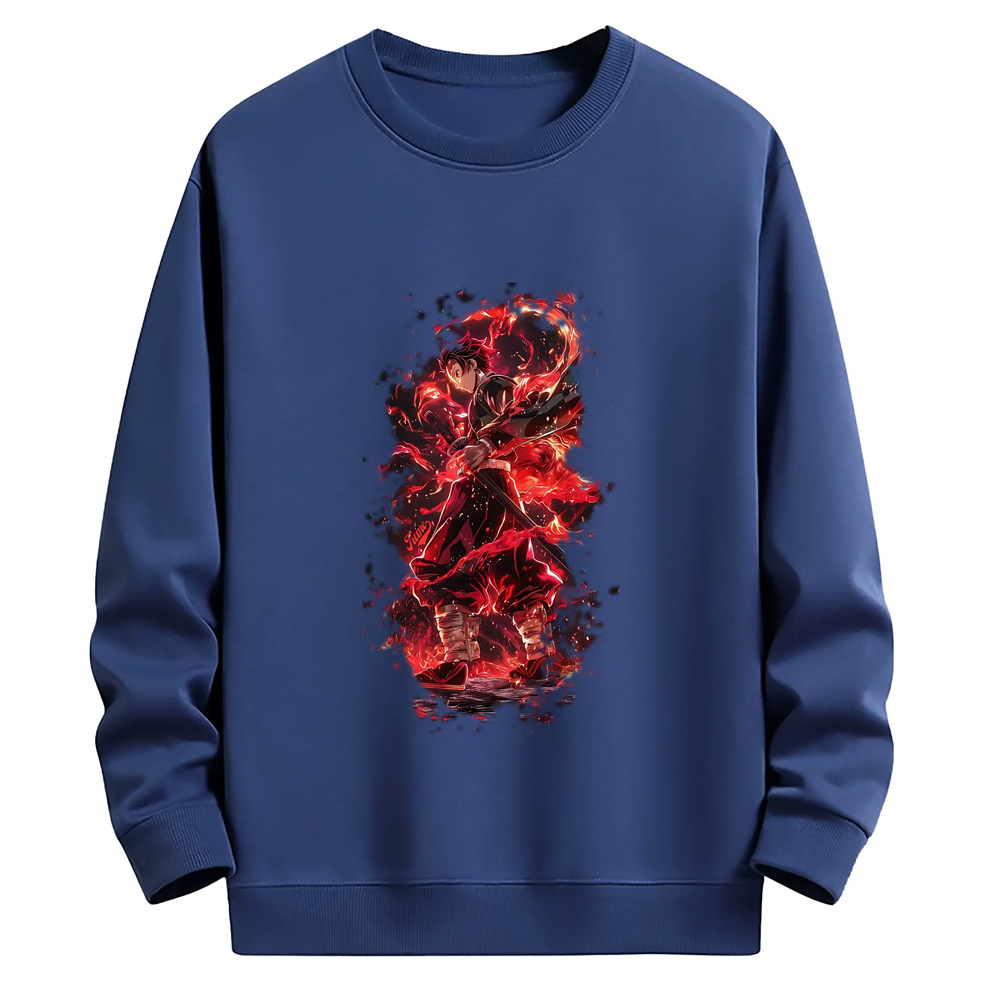 鬼滅の刃 グッズ,竈門 炭治郎 - 薄手 クルーネック スウェット 裏毛260g · ポリエステル 春秋向け カジュアル 男女兼用 · トレーナー デイリー スポーツ 散歩に最適