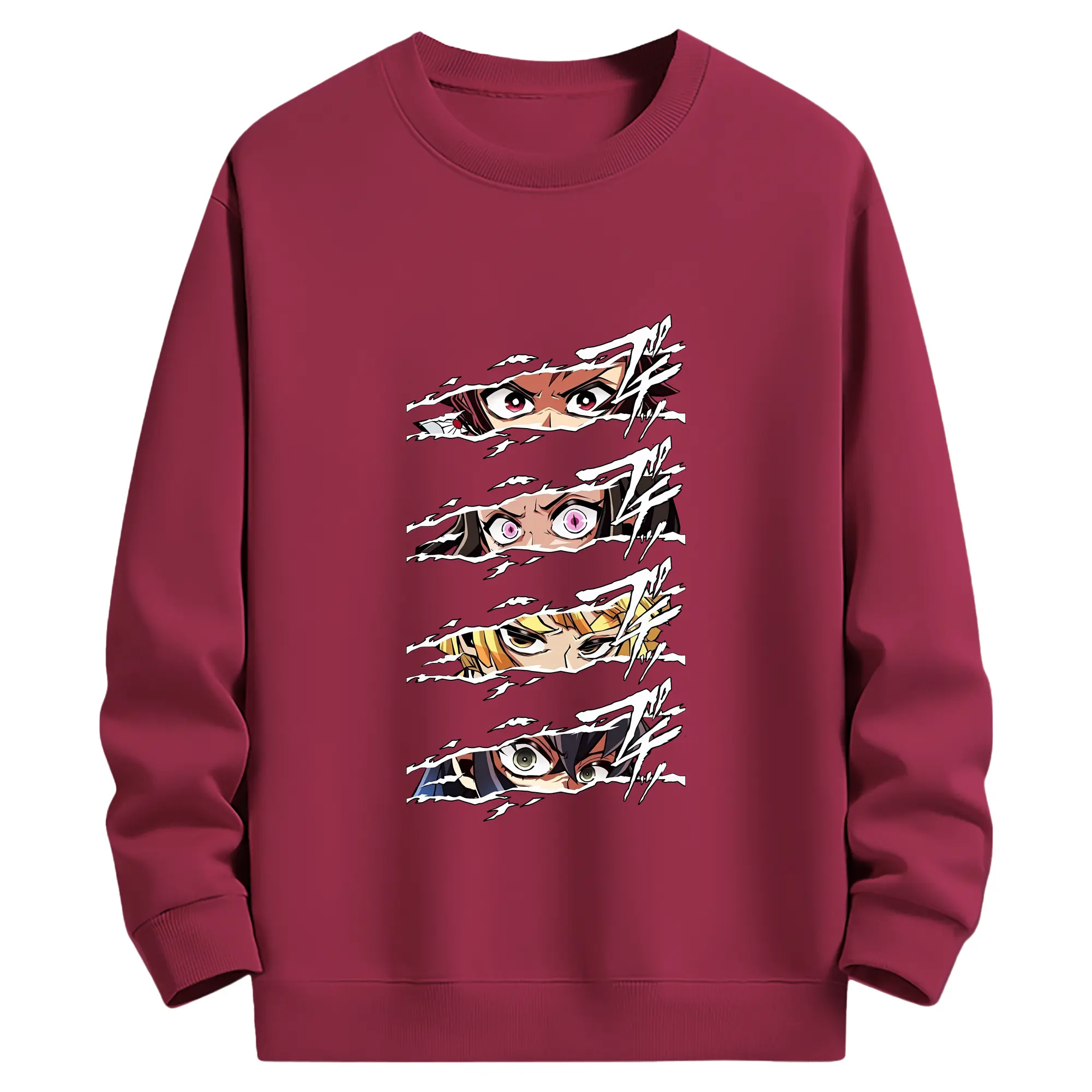 鬼滅の刃 グッズ,竈門 炭治郎 - 薄手 クルーネック スウェット 裏毛260g · ポリエステル 春秋向け カジュアル 男女兼用 · トレーナー デイリー スポーツ 散歩に最適