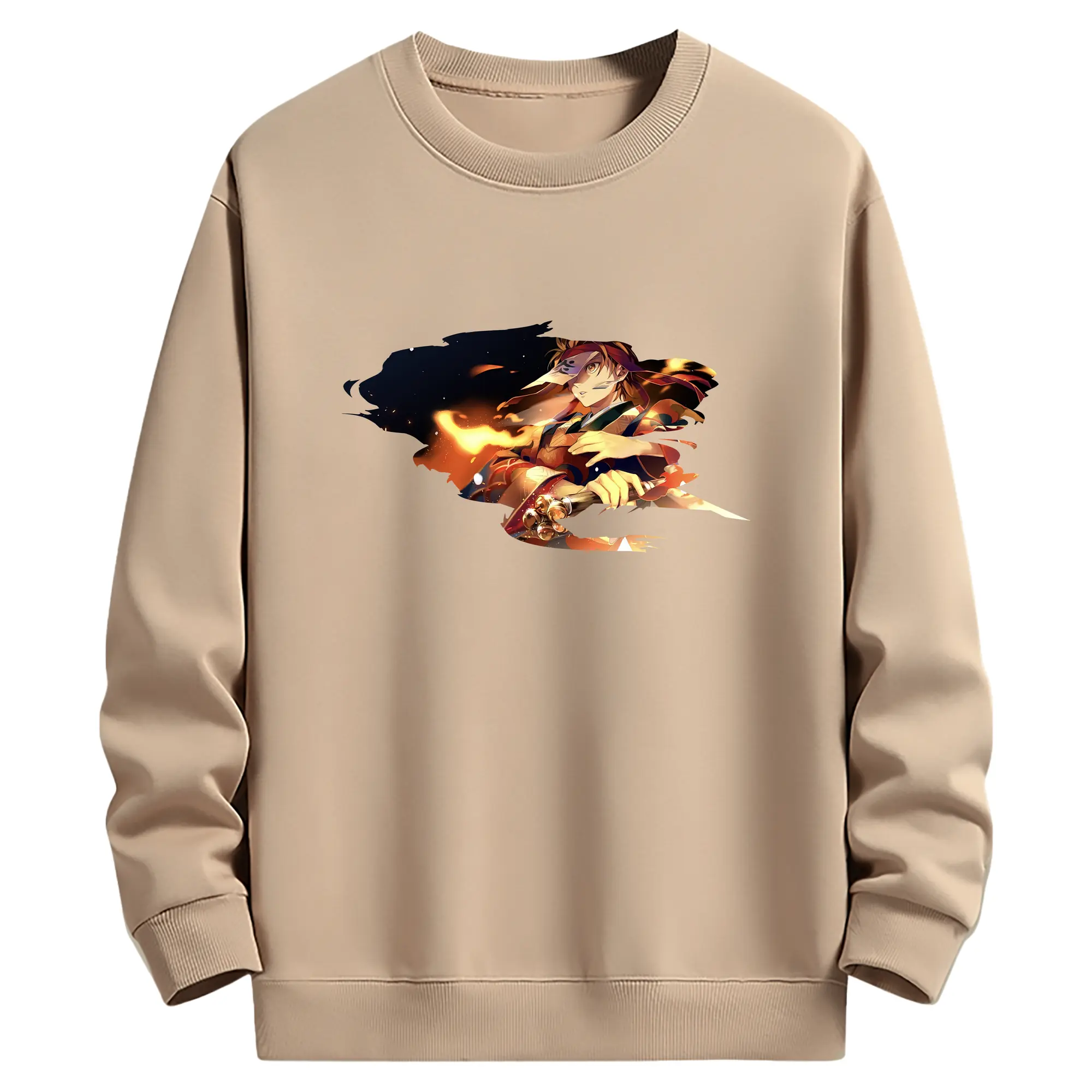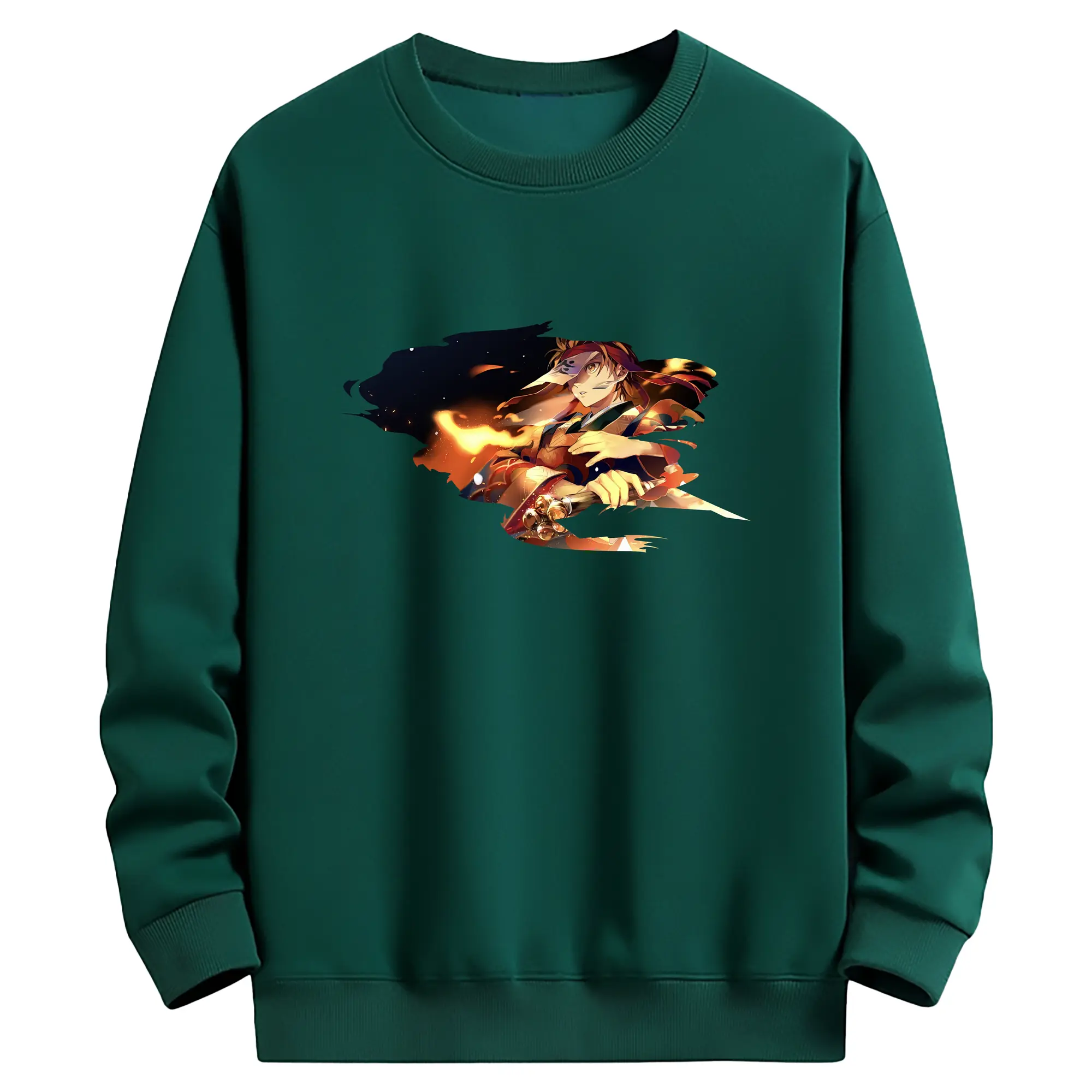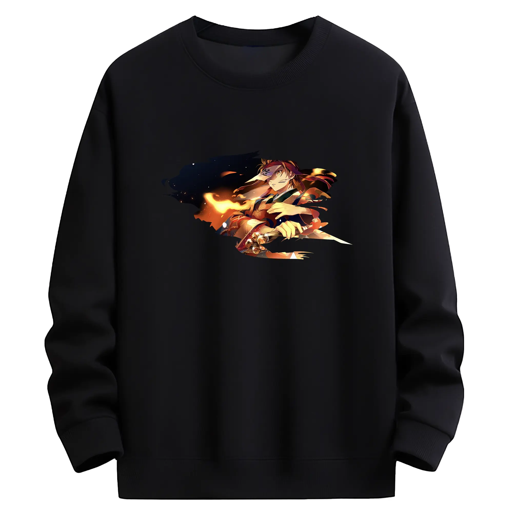 鬼滅の刃 グッズ,竈門 炭治郎 - 薄手 クルーネック スウェット 裏毛260g · ポリエステル 春秋向け カジュアル 男女兼用 · トレーナー デイリー スポーツ 散歩に最適