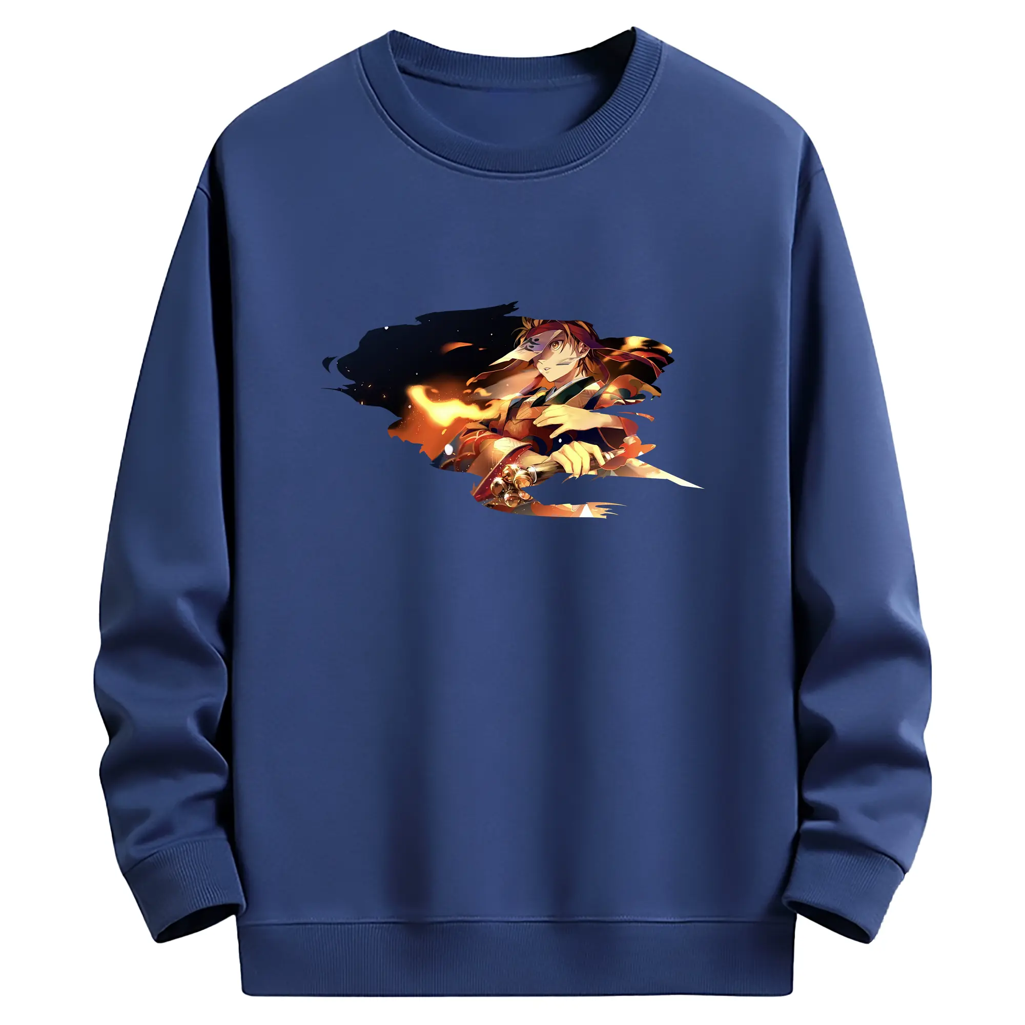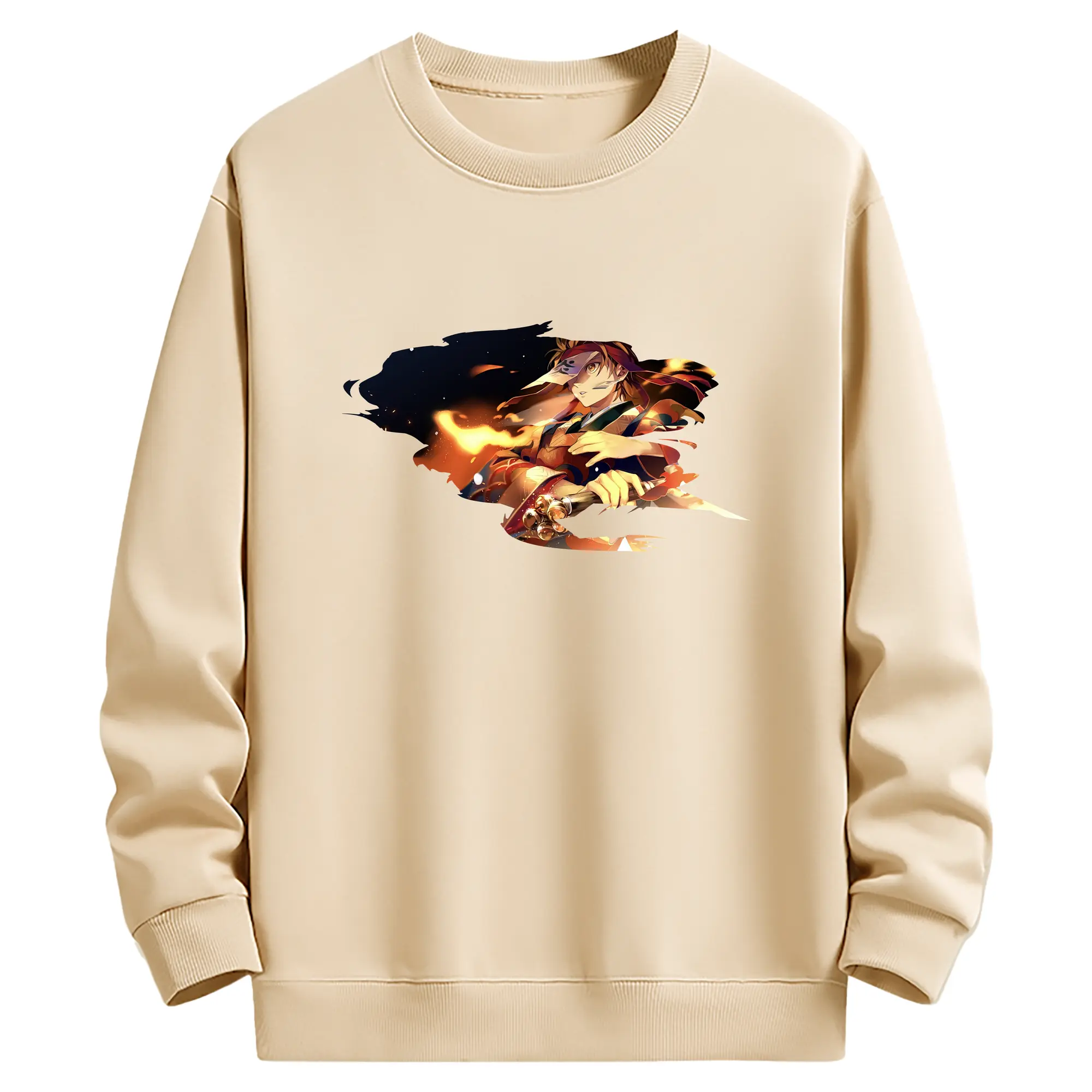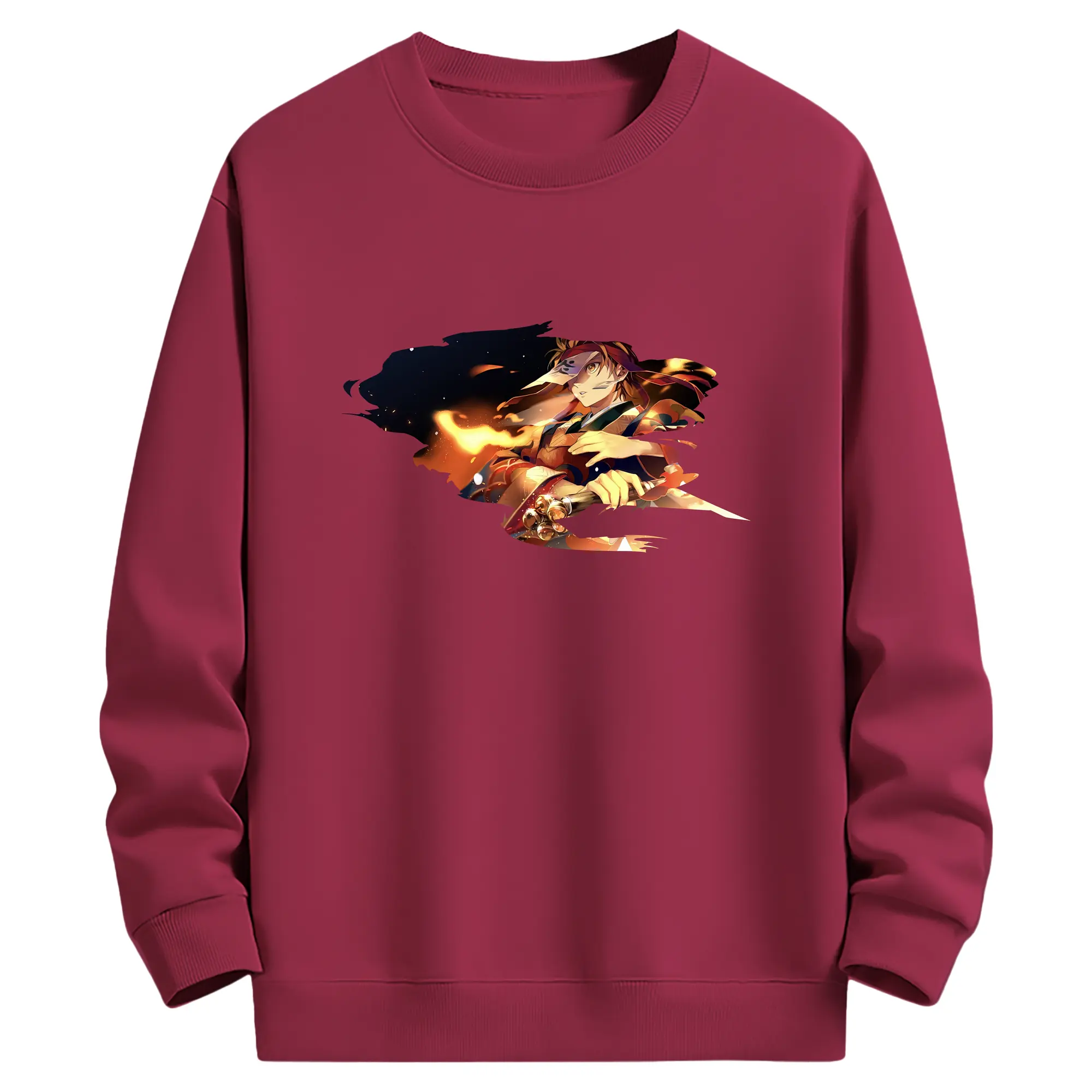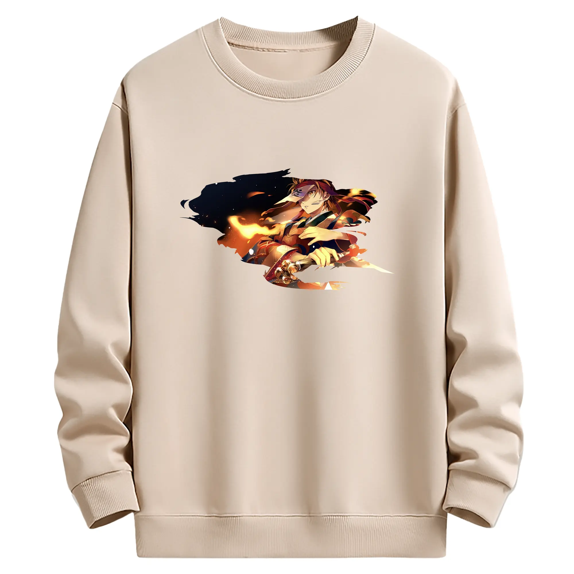 鬼滅の刃 グッズ,竈門 炭治郎 - 薄手 クルーネック スウェット 裏毛260g · ポリエステル 春秋向け カジュアル 男女兼用 · トレーナー デイリー スポーツ 散歩に最適
