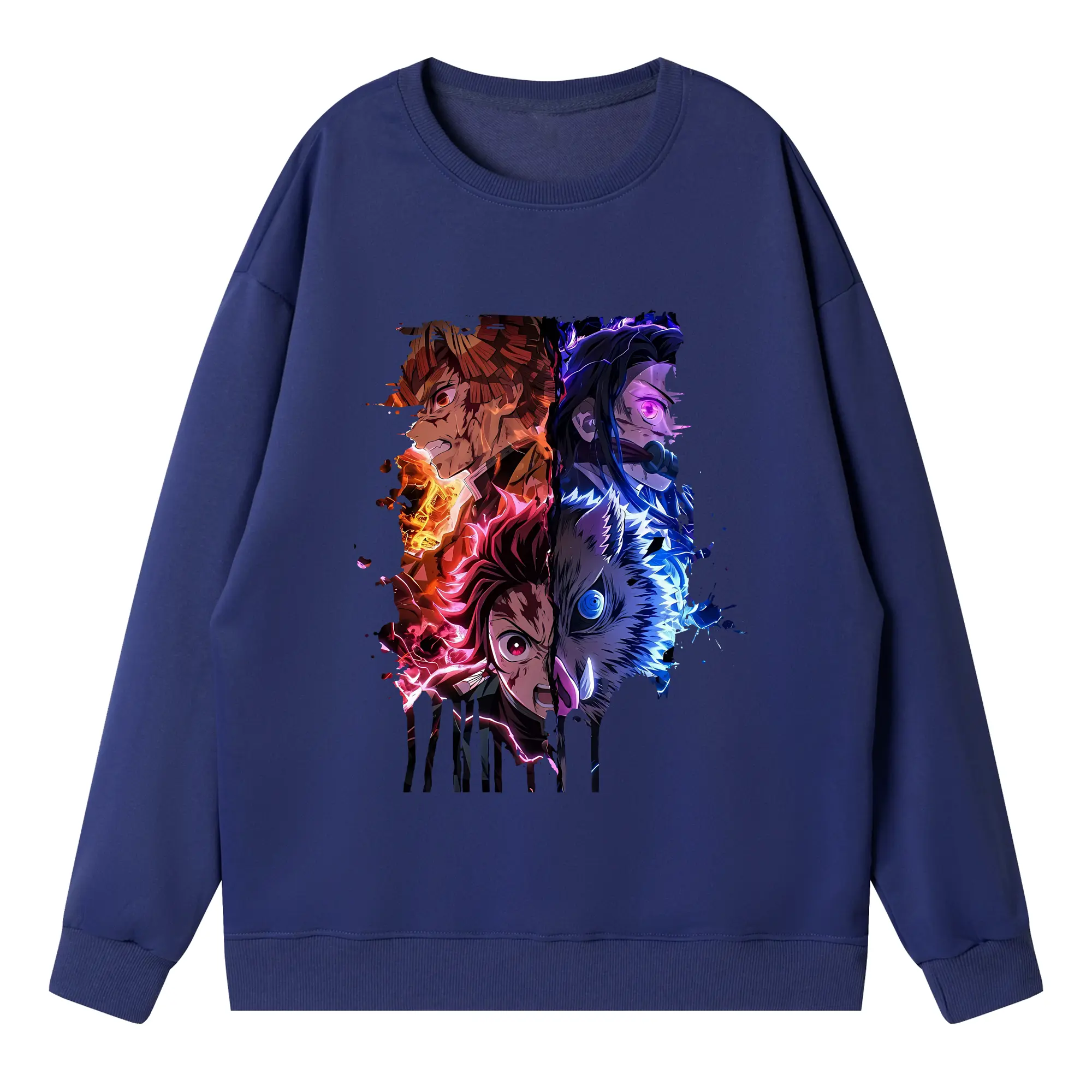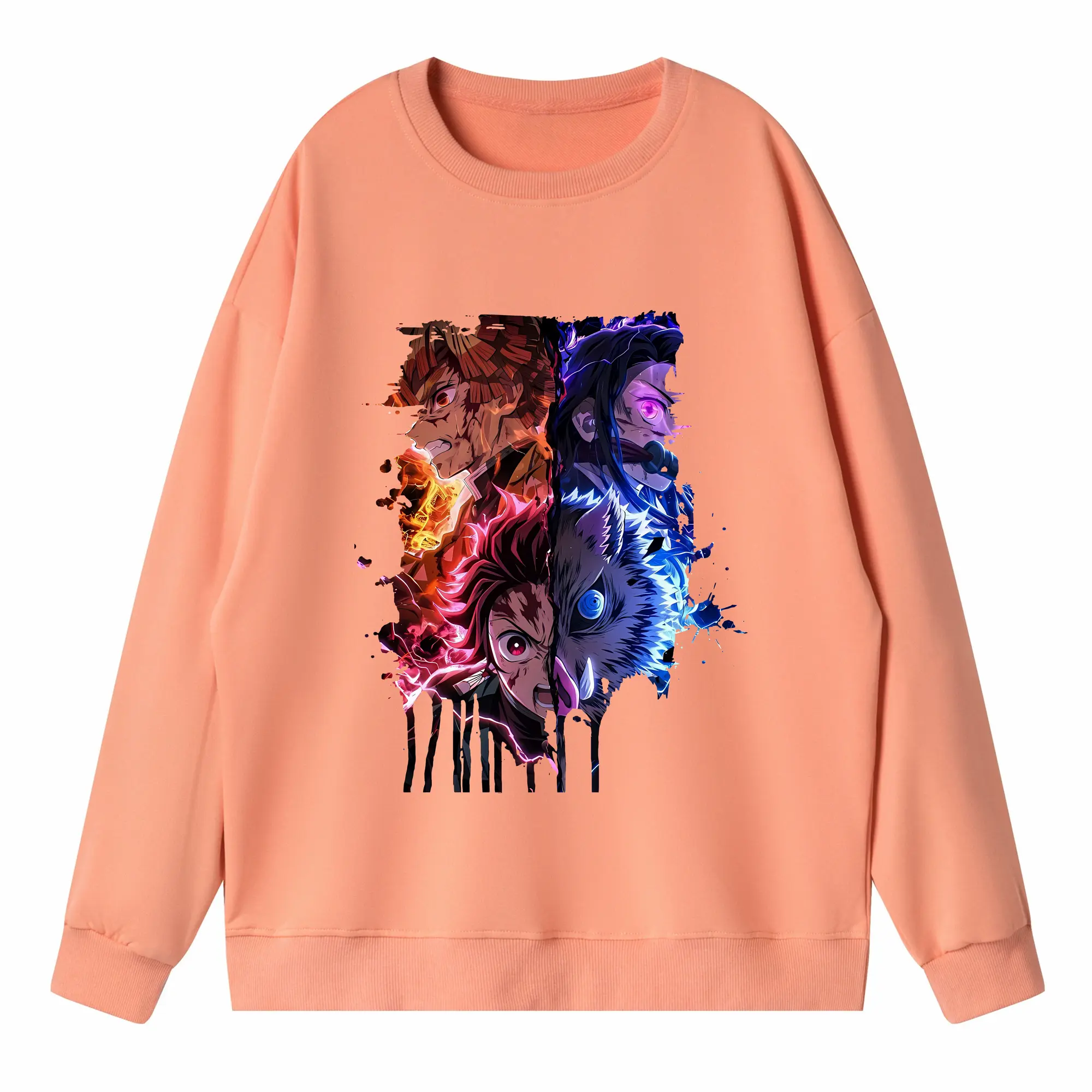 鬼滅の刃 グッズ,竈門 炭治郎 - 高品質 クルーネック スウェット ・ コットン59% ポリエステル41% ・ ユニセックス 長袖 トレーナー ・ カジュアル デイリー スポーツ 散歩用