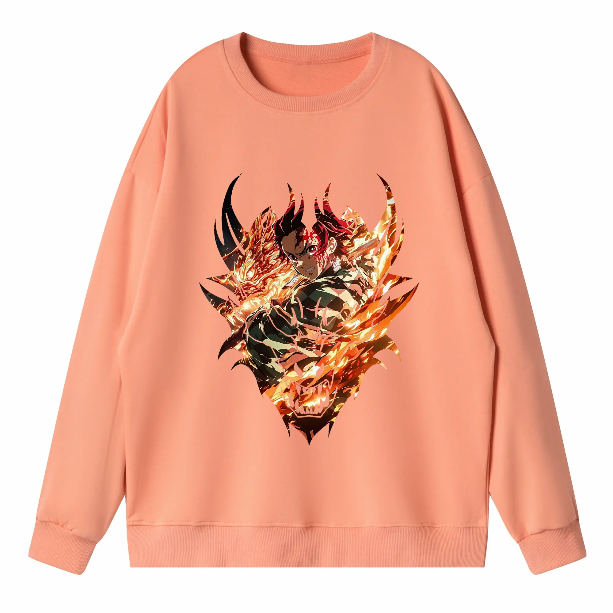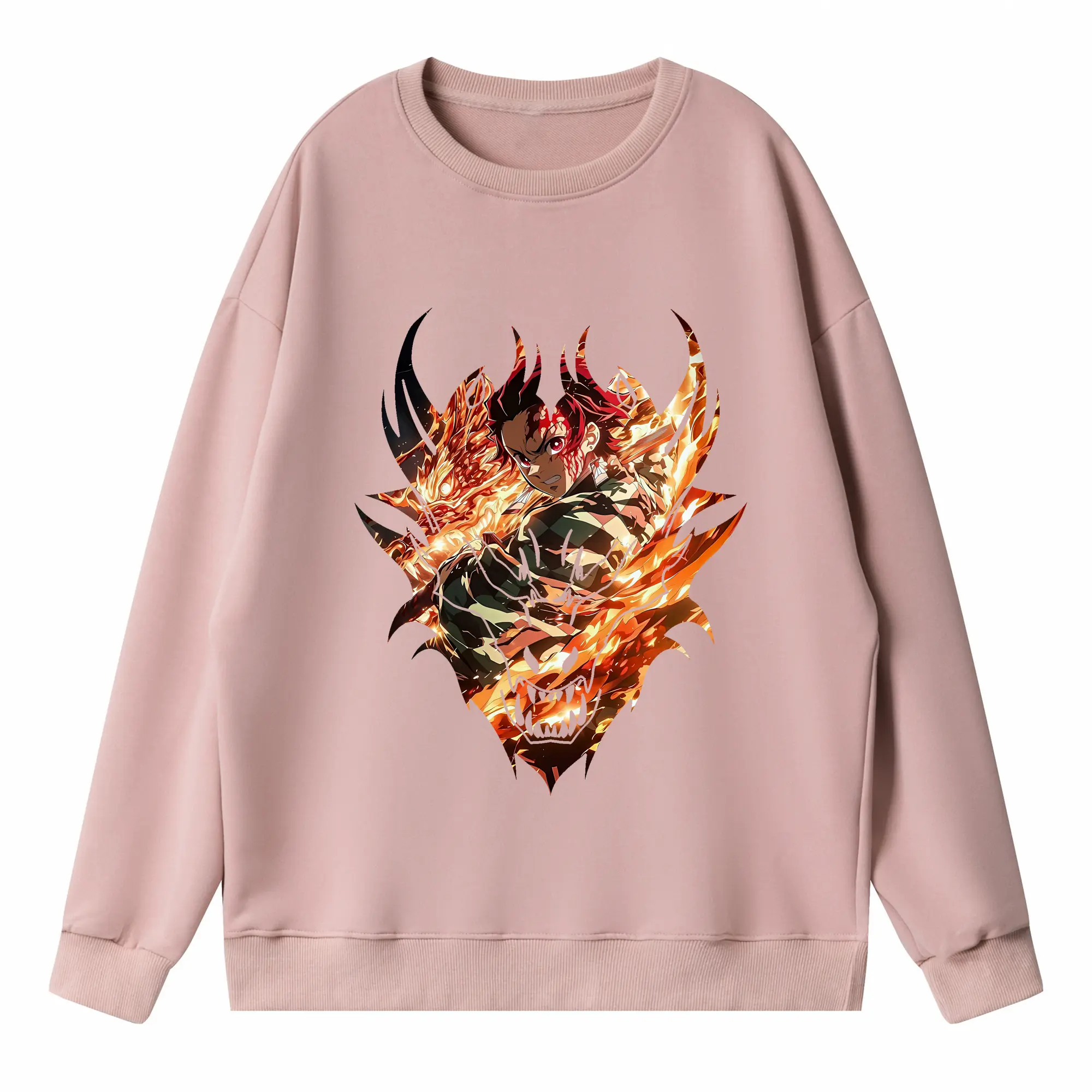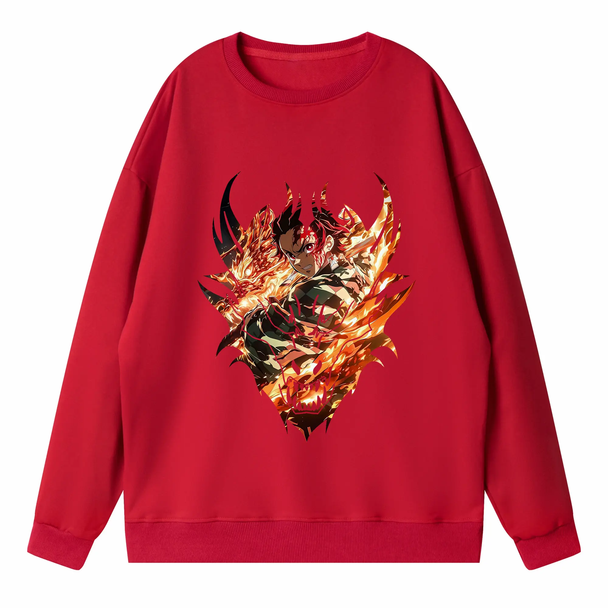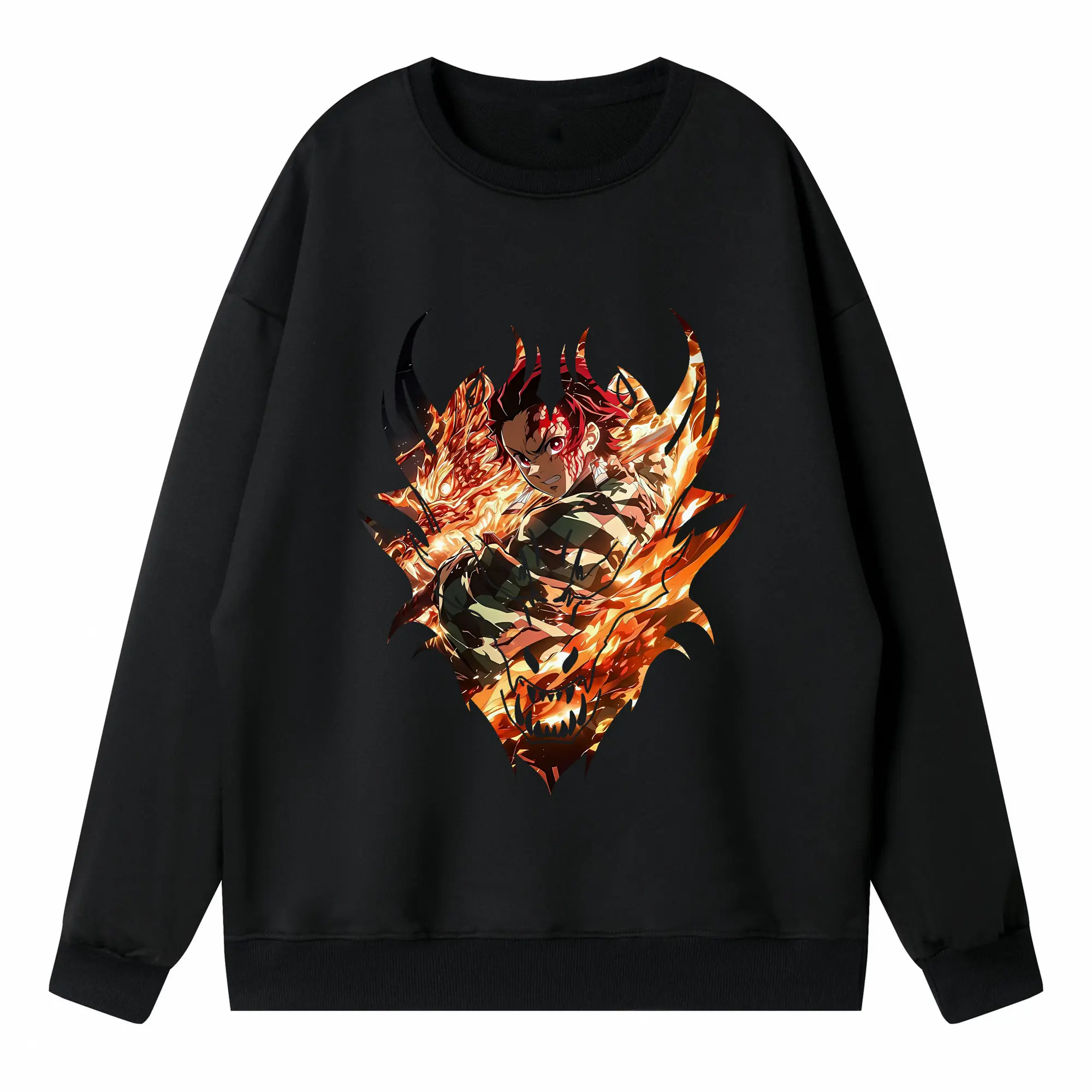 鬼滅の刃 グッズ,竈門 炭治郎 - 高品質 クルーネック スウェット ・ コットン59% ポリエステル41% ・ ユニセックス 長袖 トレーナー ・ カジュアル デイリー スポーツ 散歩用