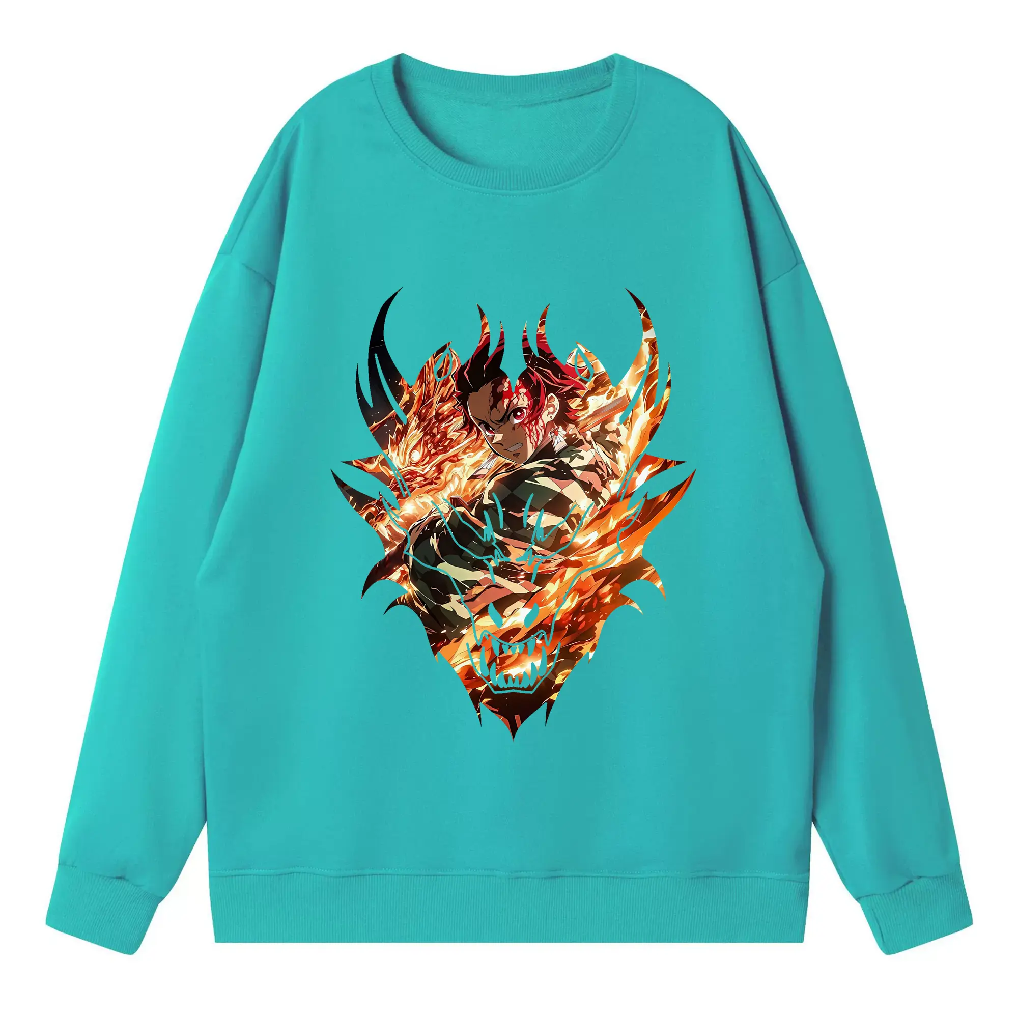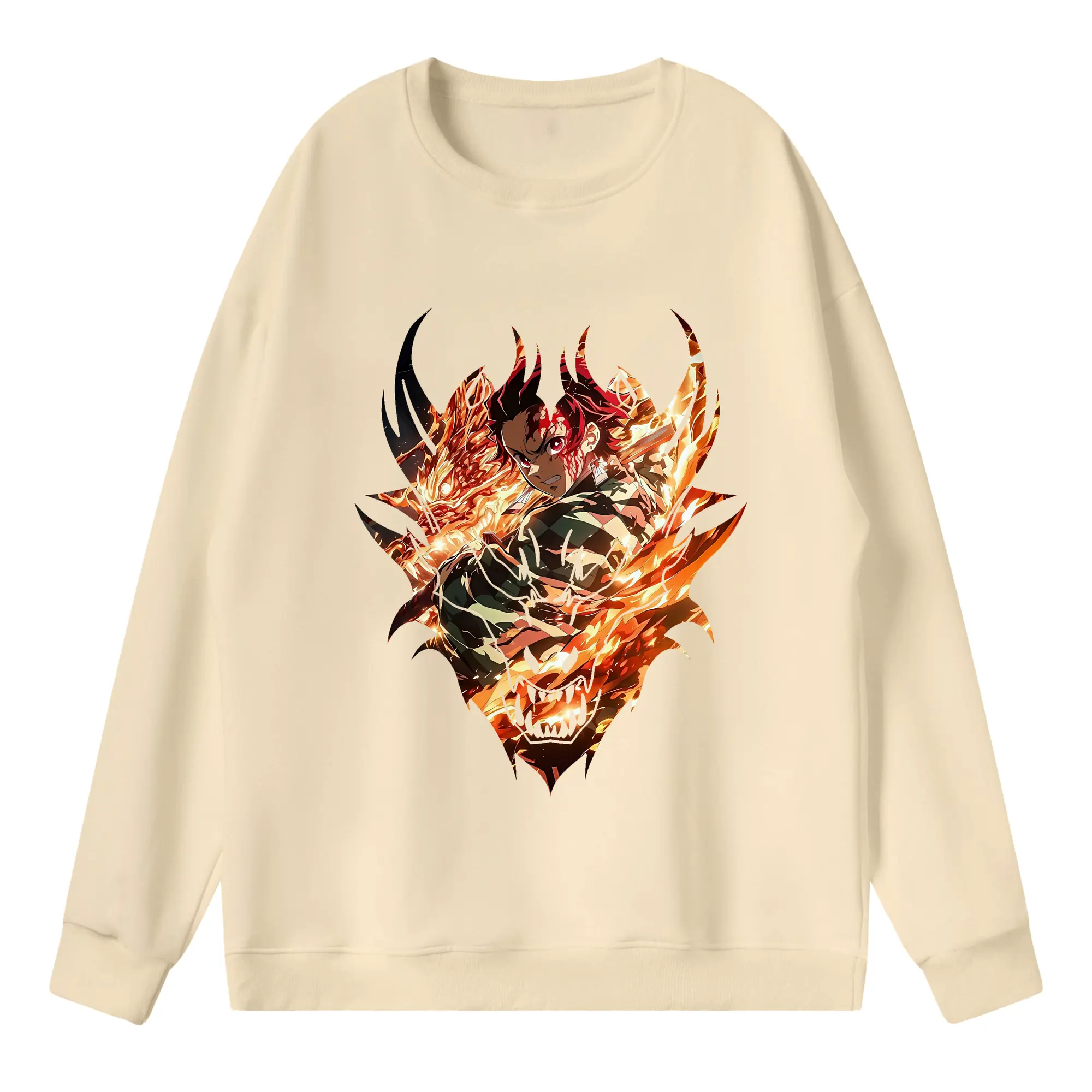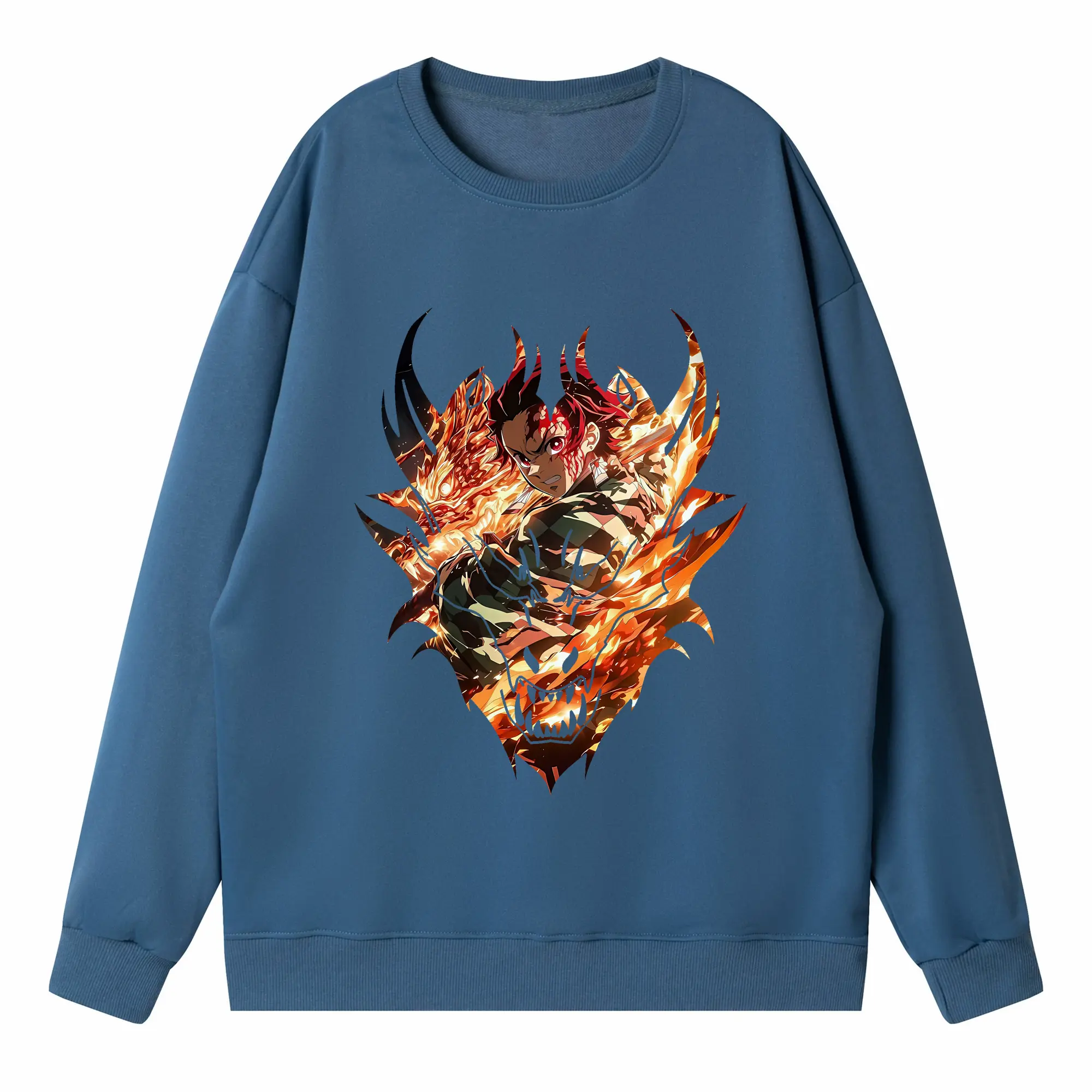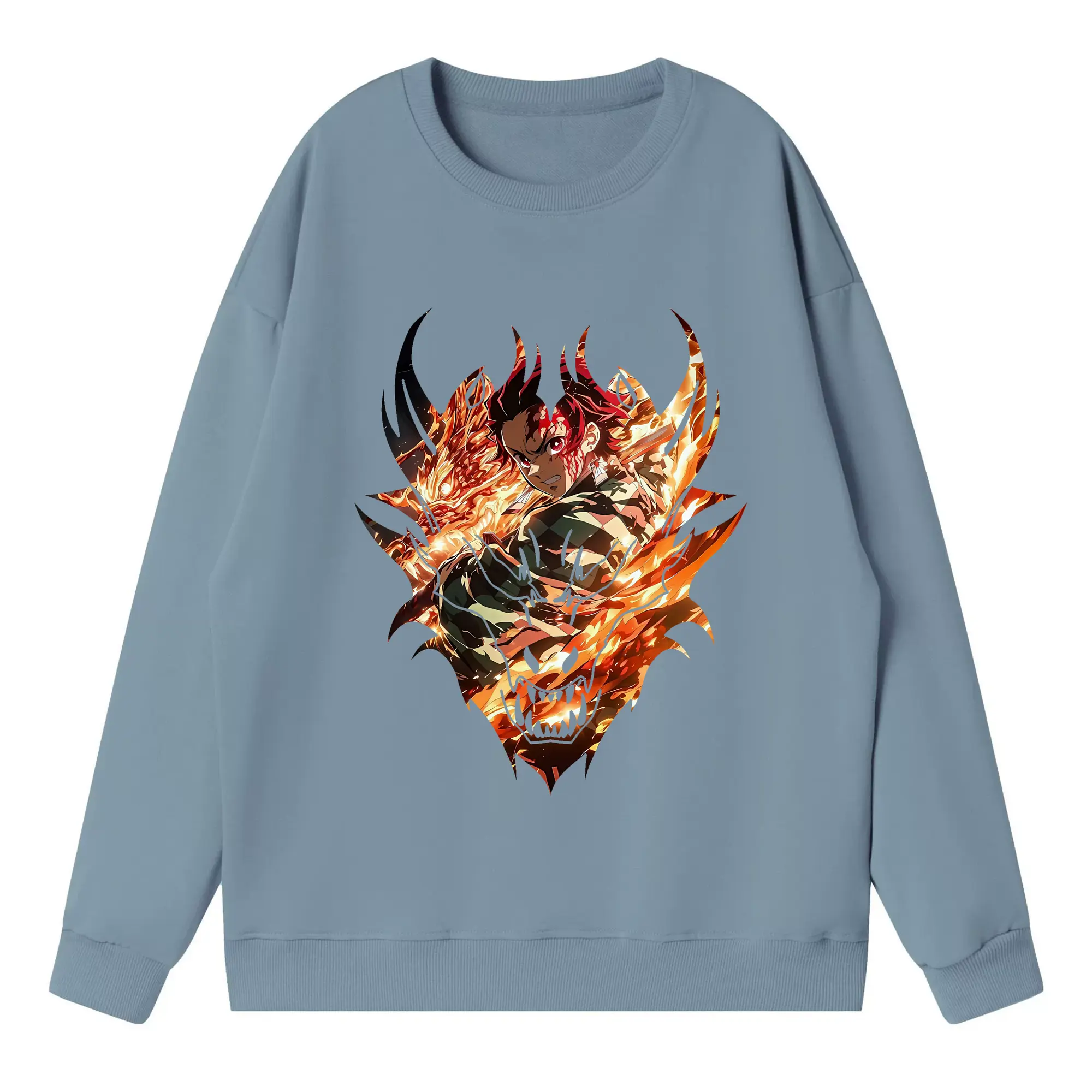 鬼滅の刃 グッズ,竈門 炭治郎 - 高品質 クルーネック スウェット ・ コットン59% ポリエステル41% ・ ユニセックス 長袖 トレーナー ・ カジュアル デイリー スポーツ 散歩用