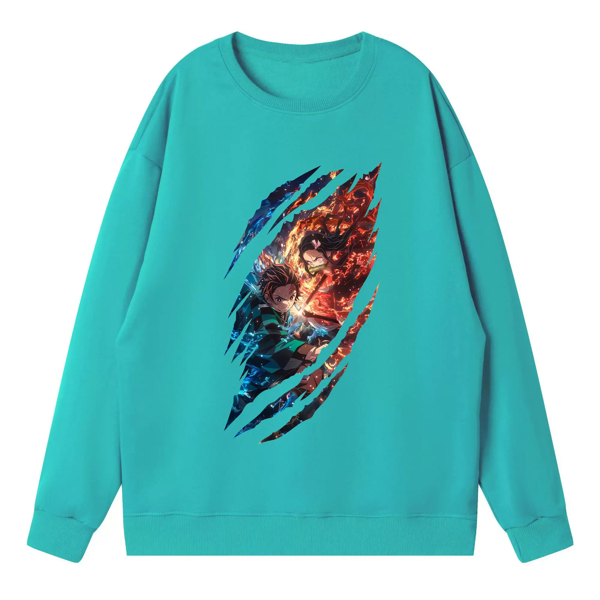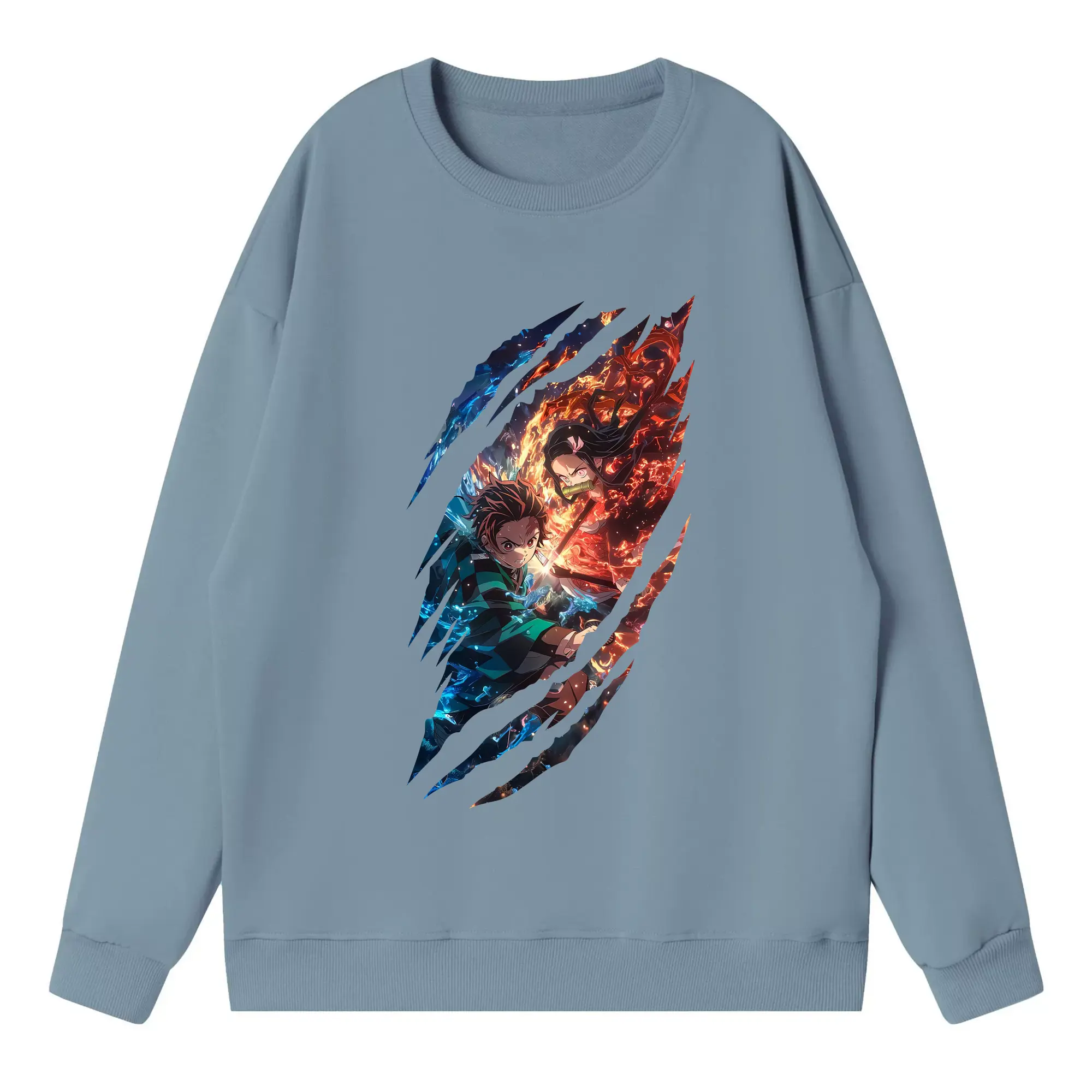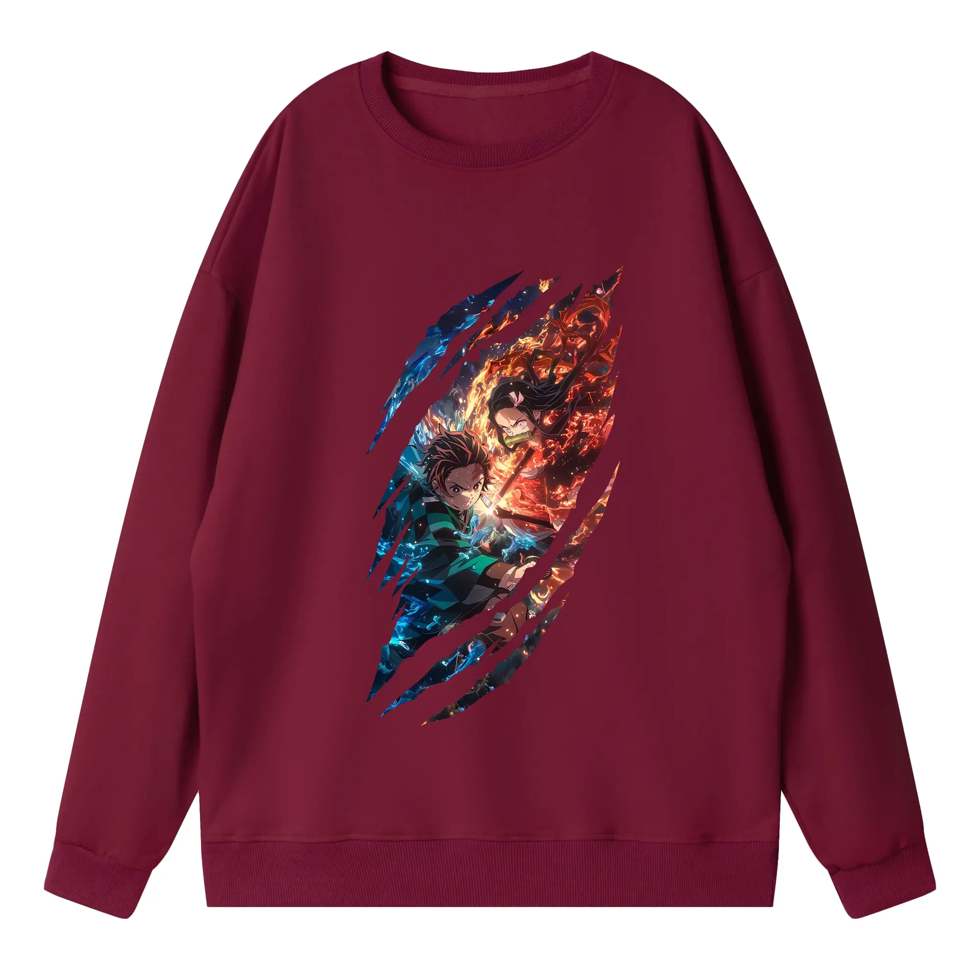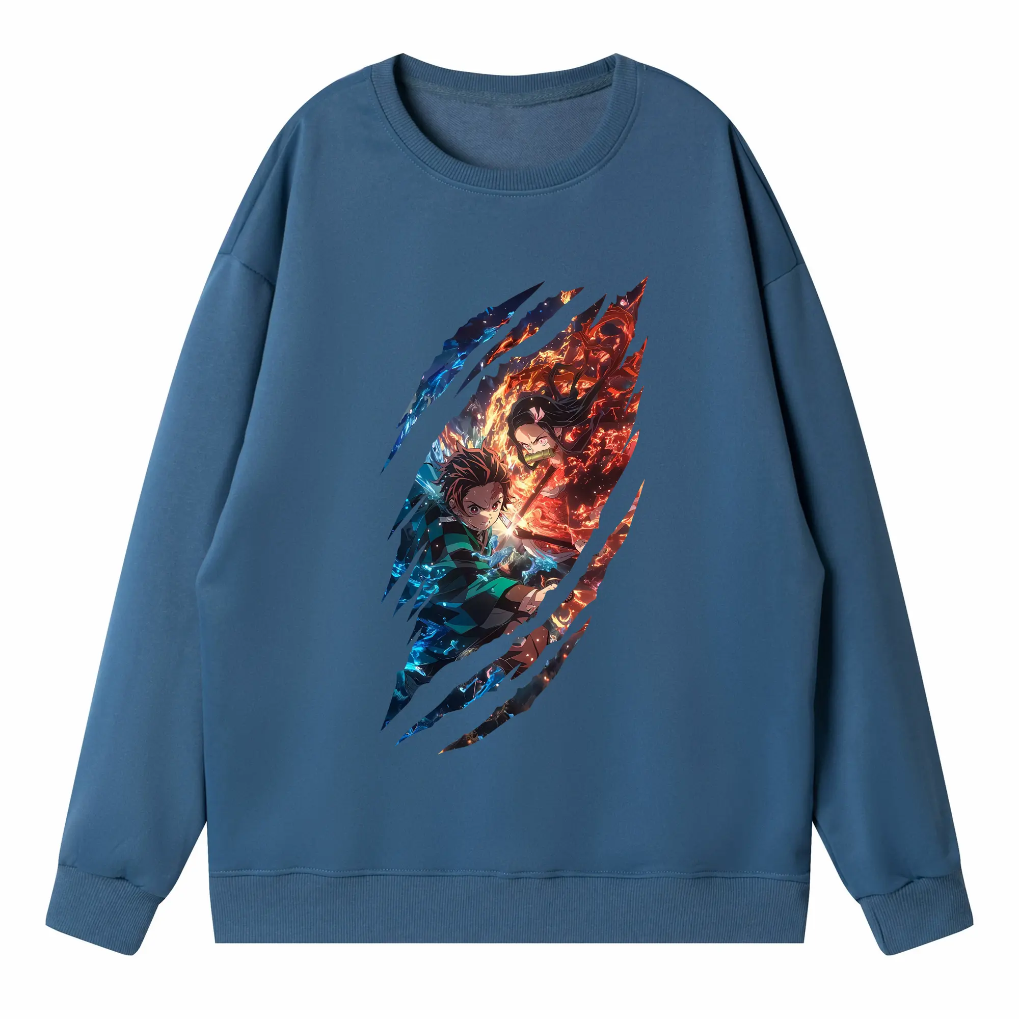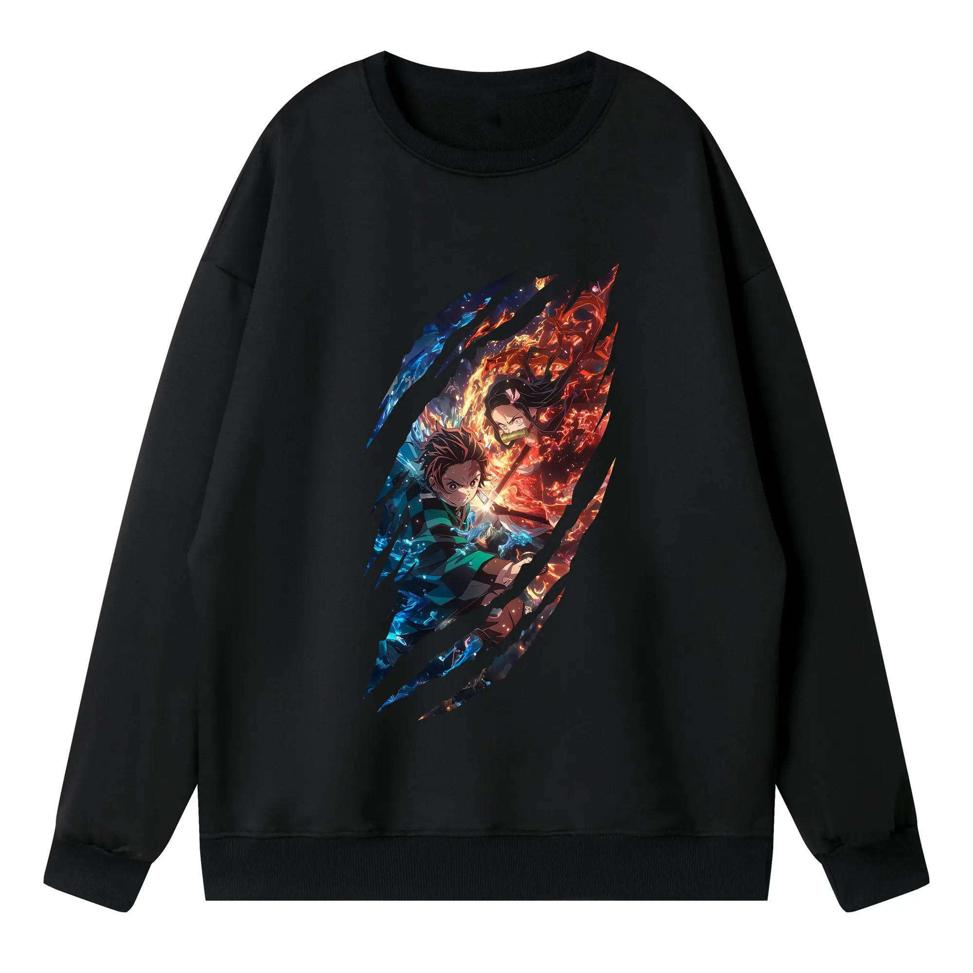 鬼滅の刃 グッズ,竈門 炭治郎 - 高品質 クルーネック スウェット ・ コットン59% ポリエステル41% ・ ユニセックス 長袖 トレーナー ・ カジュアル デイリー スポーツ 散歩用