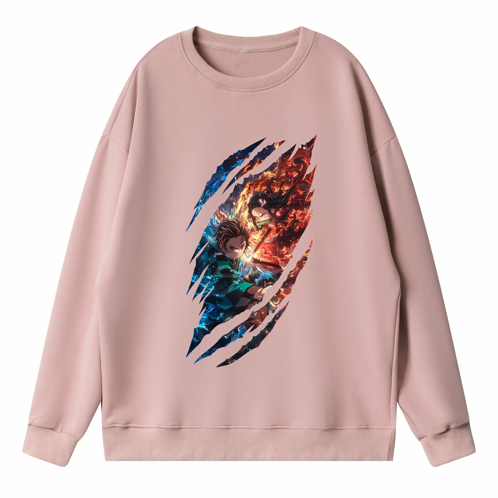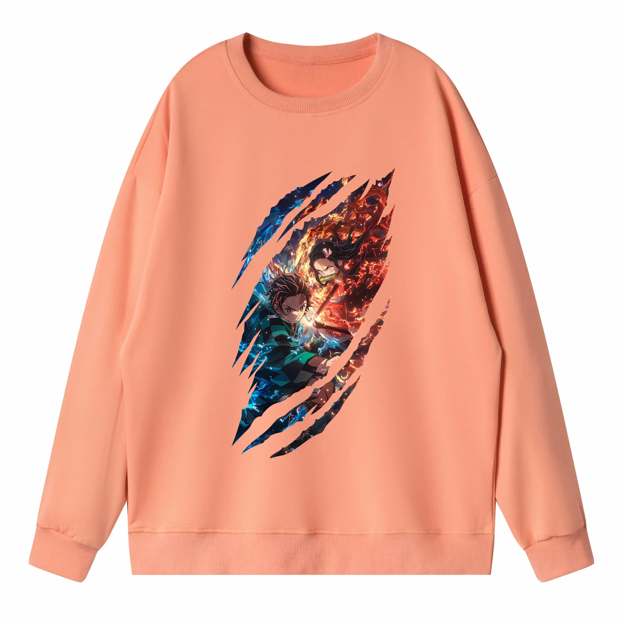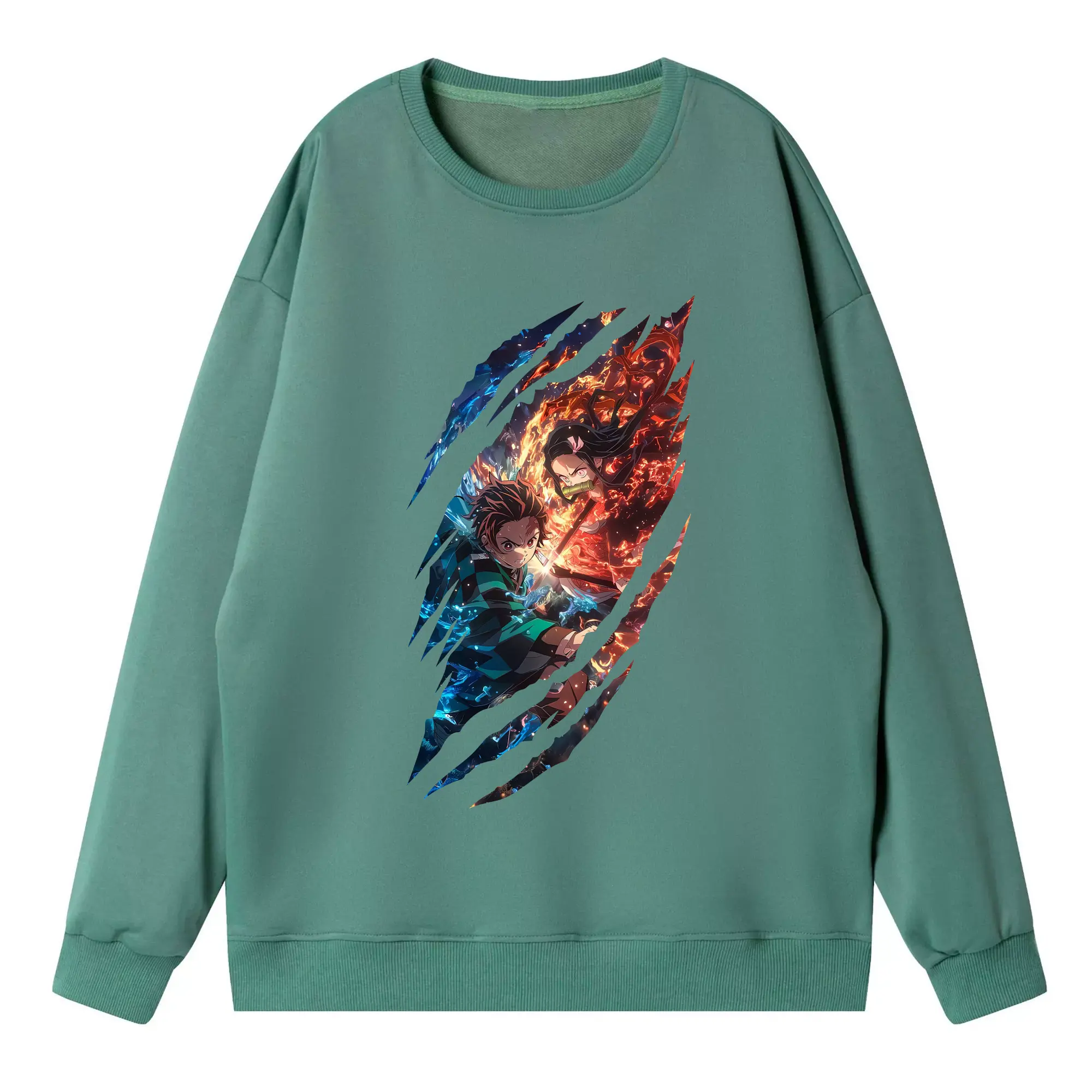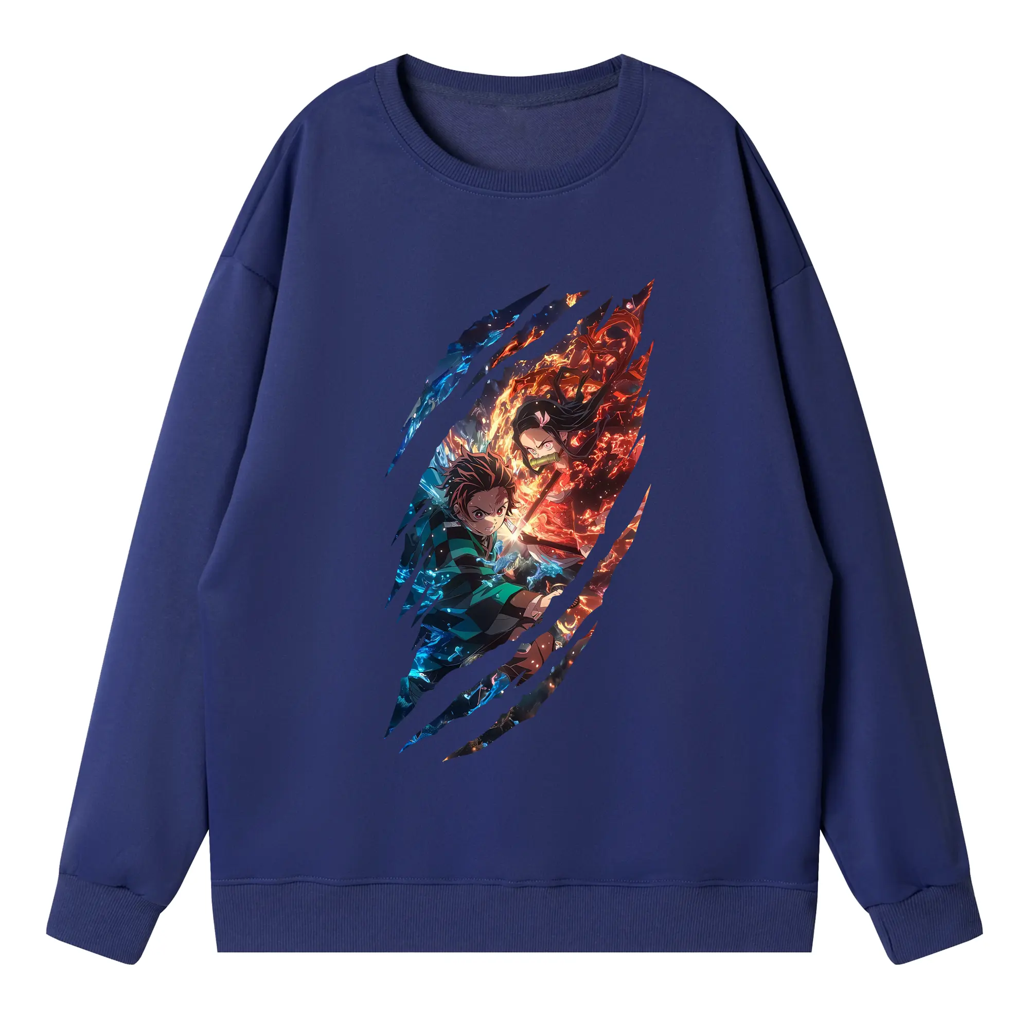 鬼滅の刃 グッズ,竈門 炭治郎 - 高品質 クルーネック スウェット ・ コットン59% ポリエステル41% ・ ユニセックス 長袖 トレーナー ・ カジュアル デイリー スポーツ 散歩用