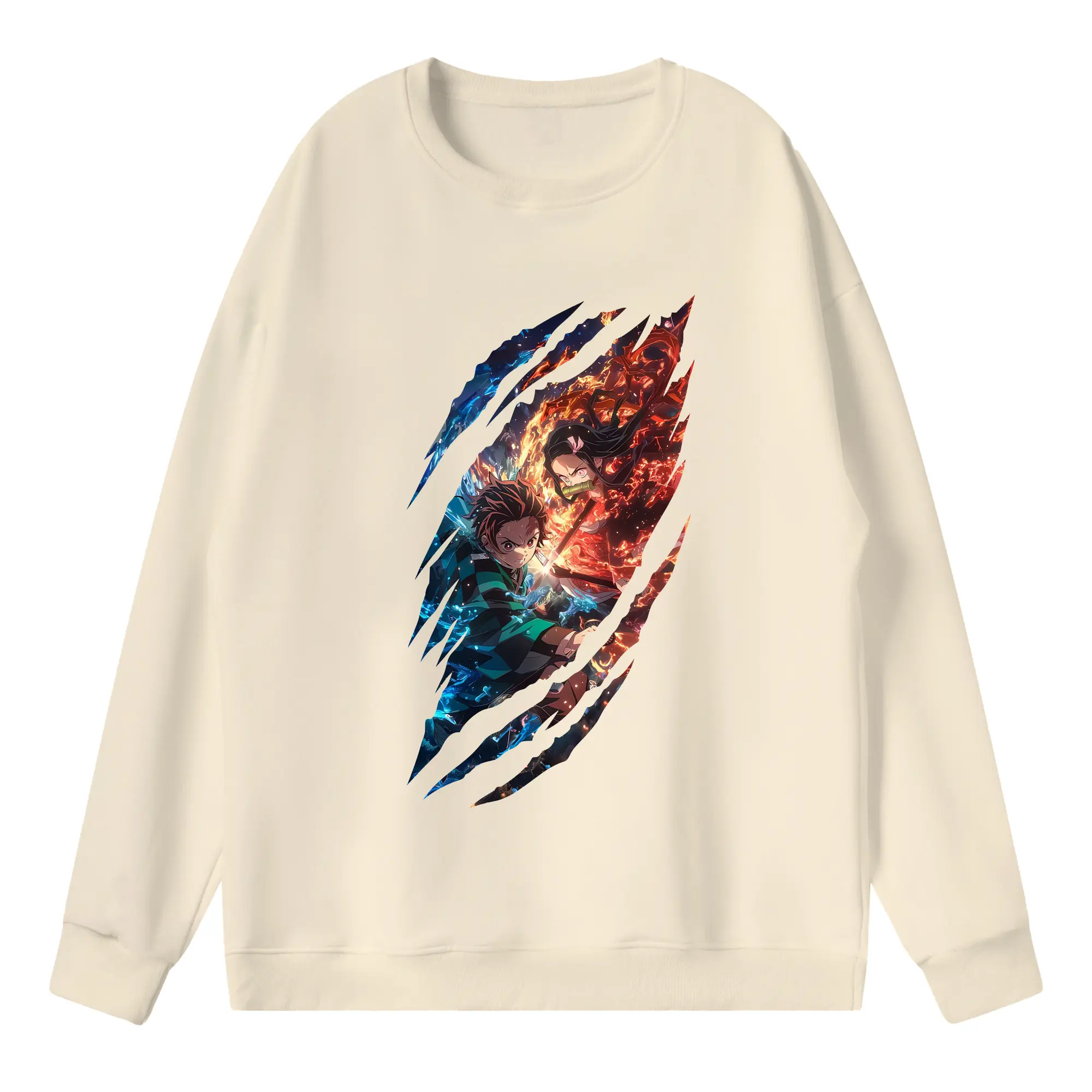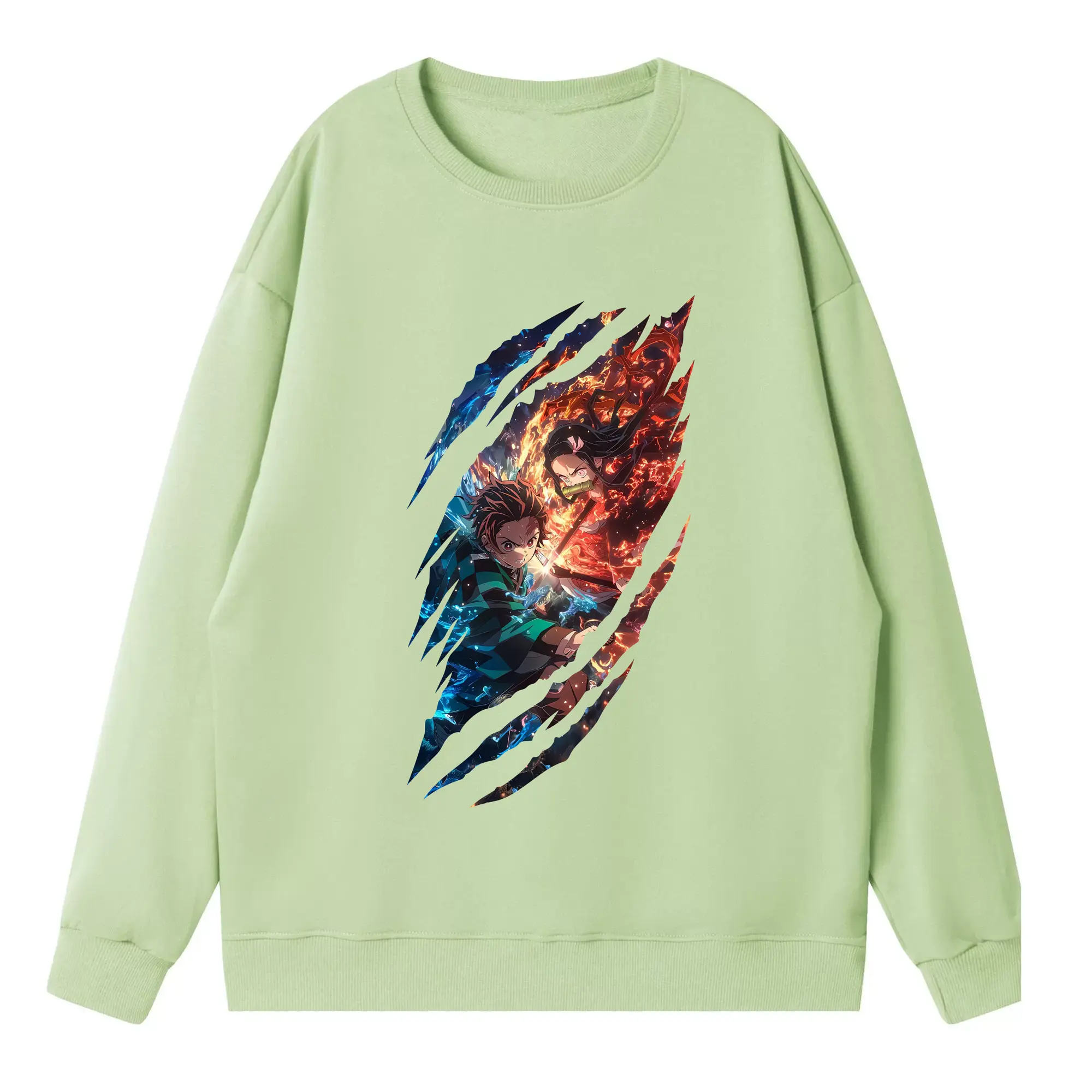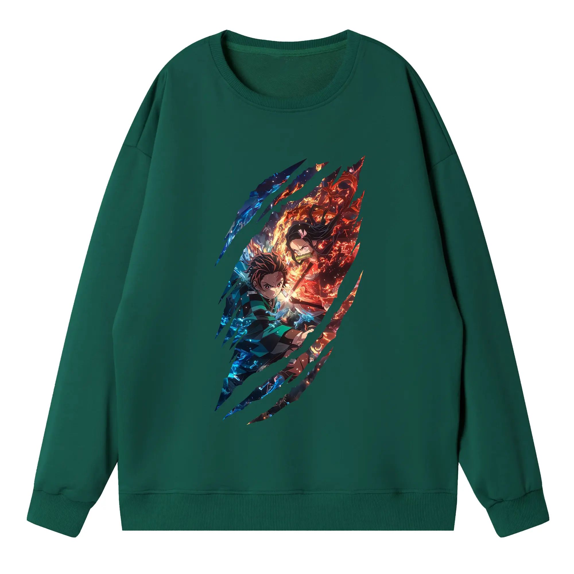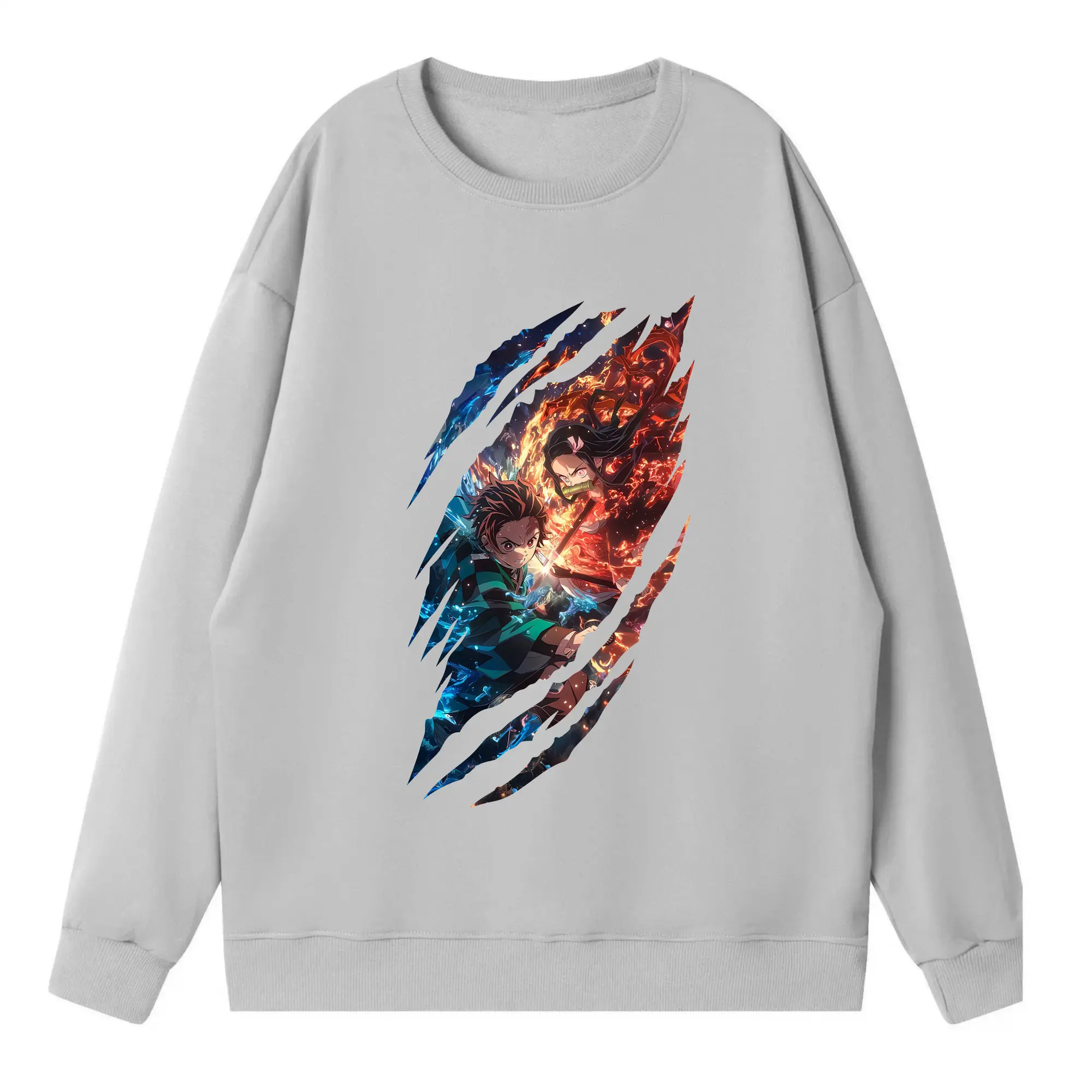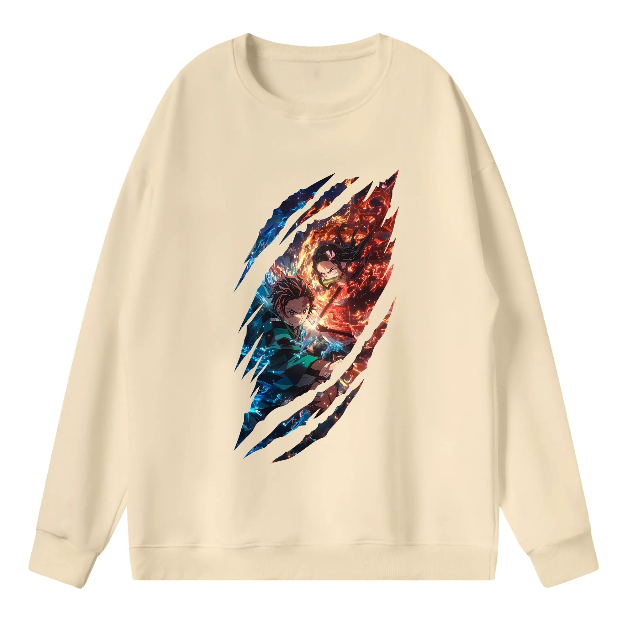 鬼滅の刃 グッズ,竈門 炭治郎 - 高品質 クルーネック スウェット ・ コットン59% ポリエステル41% ・ ユニセックス 長袖 トレーナー ・ カジュアル デイリー スポーツ 散歩用
