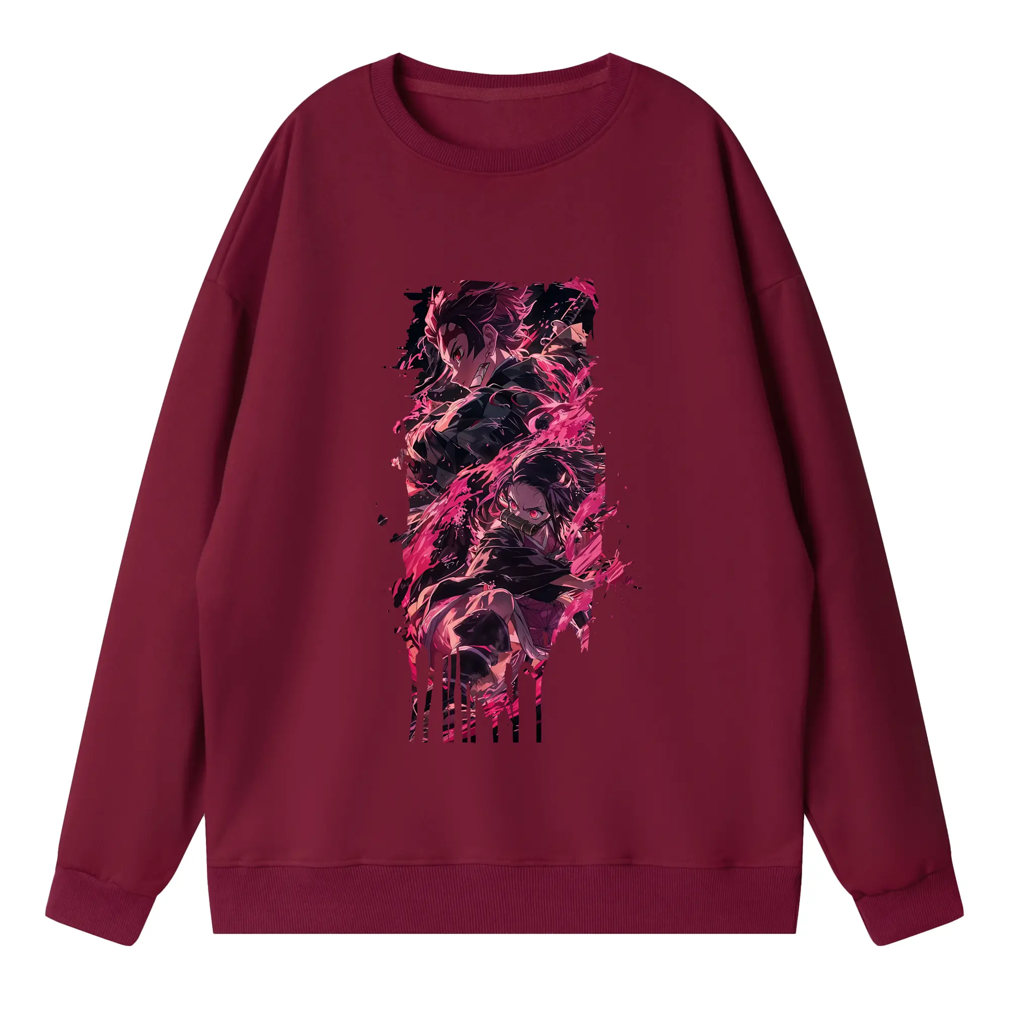 鬼滅の刃 グッズ,竈門 炭治郎 - 高品質 クルーネック スウェット ・ コットン59% ポリエステル41% ・ ユニセックス 長袖 トレーナー ・ カジュアル デイリー スポーツ 散歩用