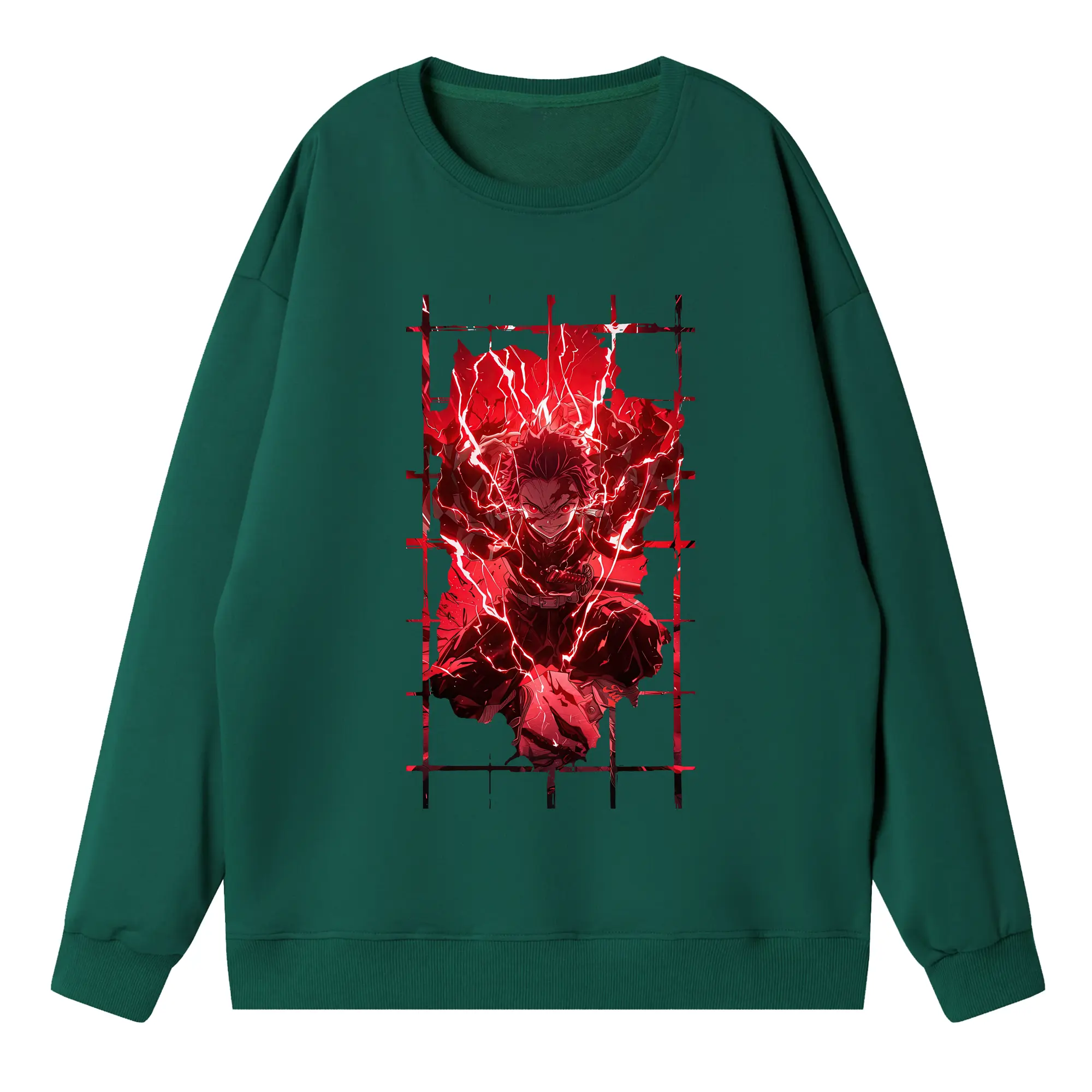 鬼滅の刃 グッズ,竈門 炭治郎 - 高品質 クルーネック スウェット ・ コットン59% ポリエステル41% ・ ユニセックス 長袖 トレーナー ・ カジュアル デイリー スポーツ 散歩用