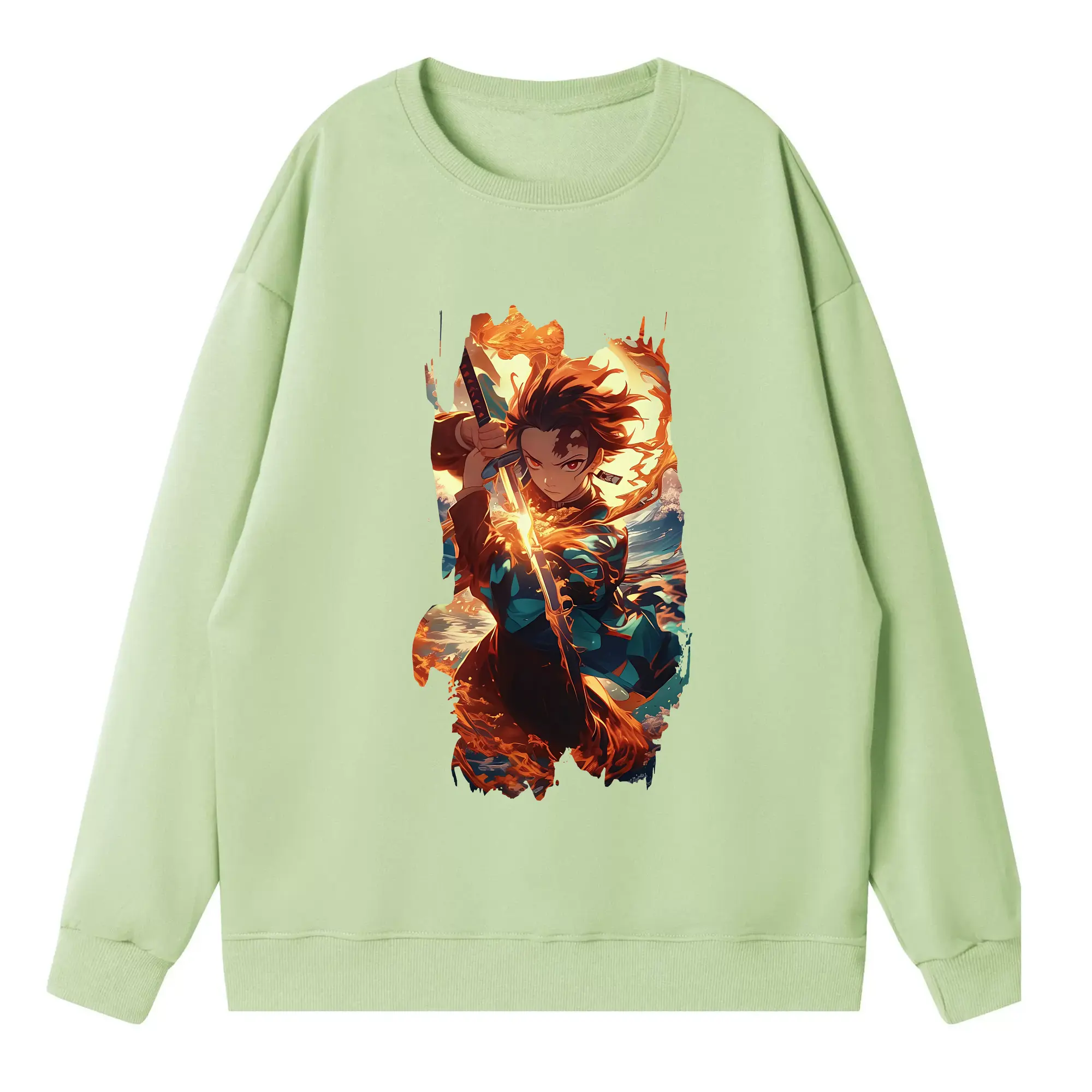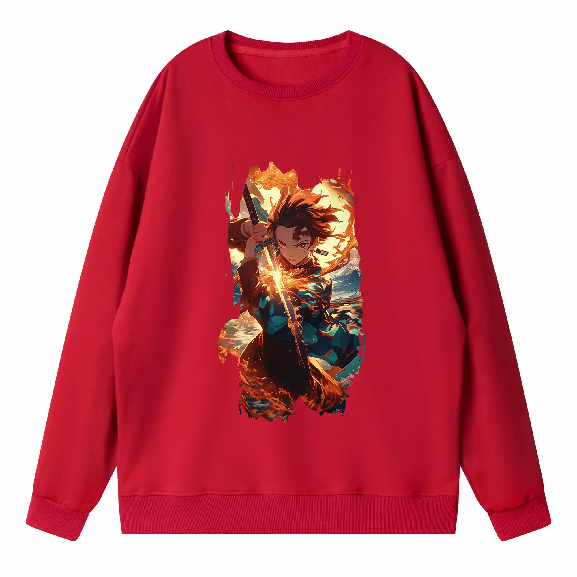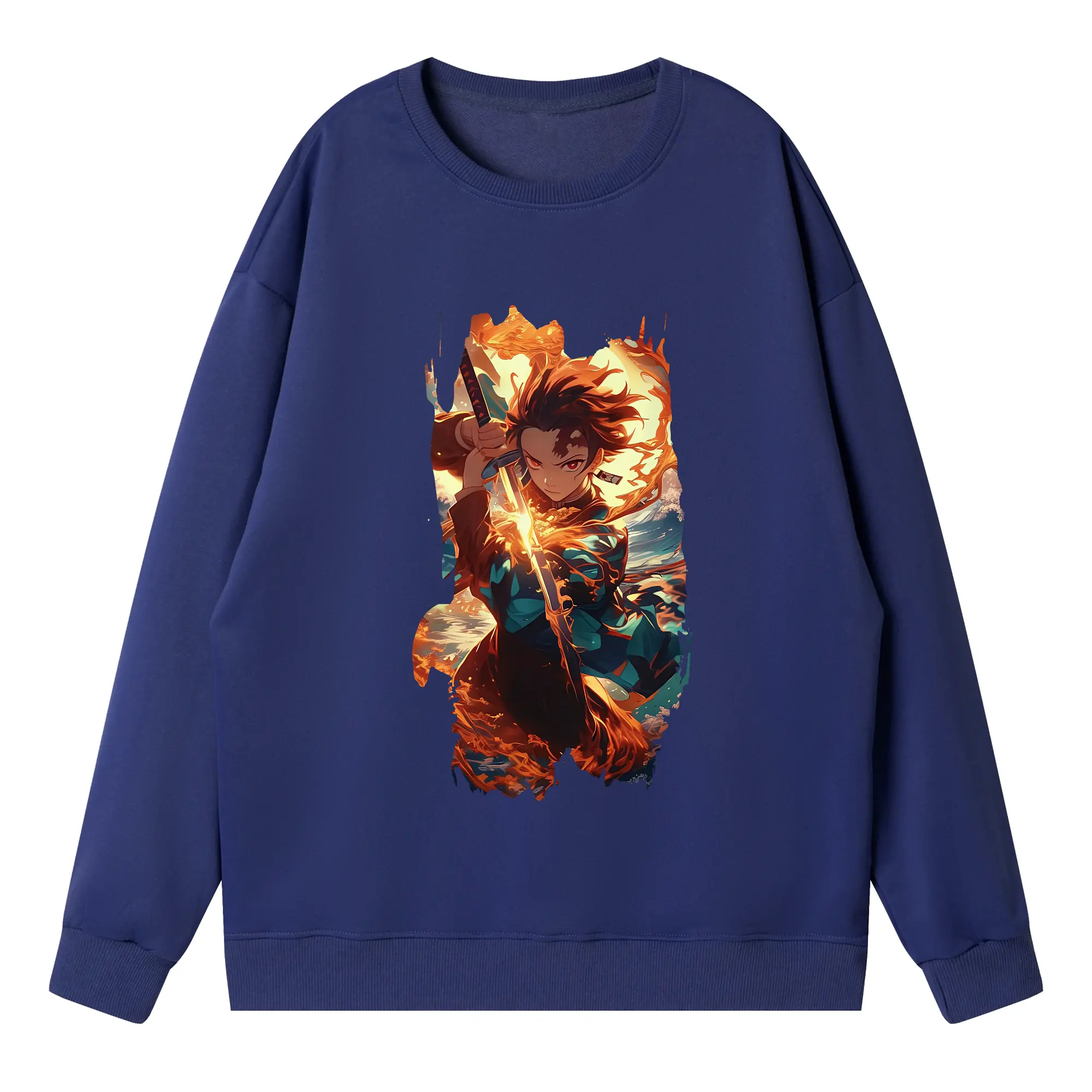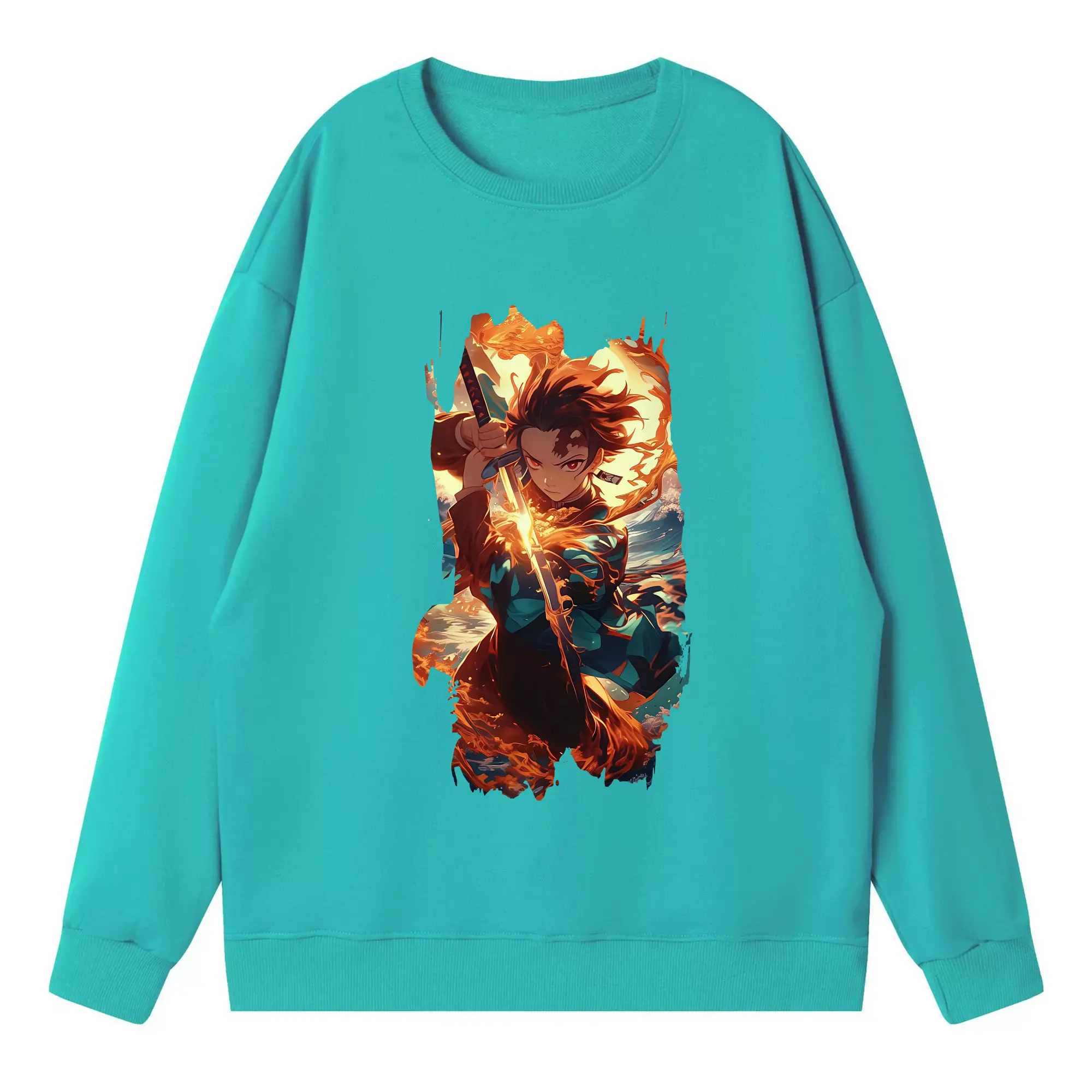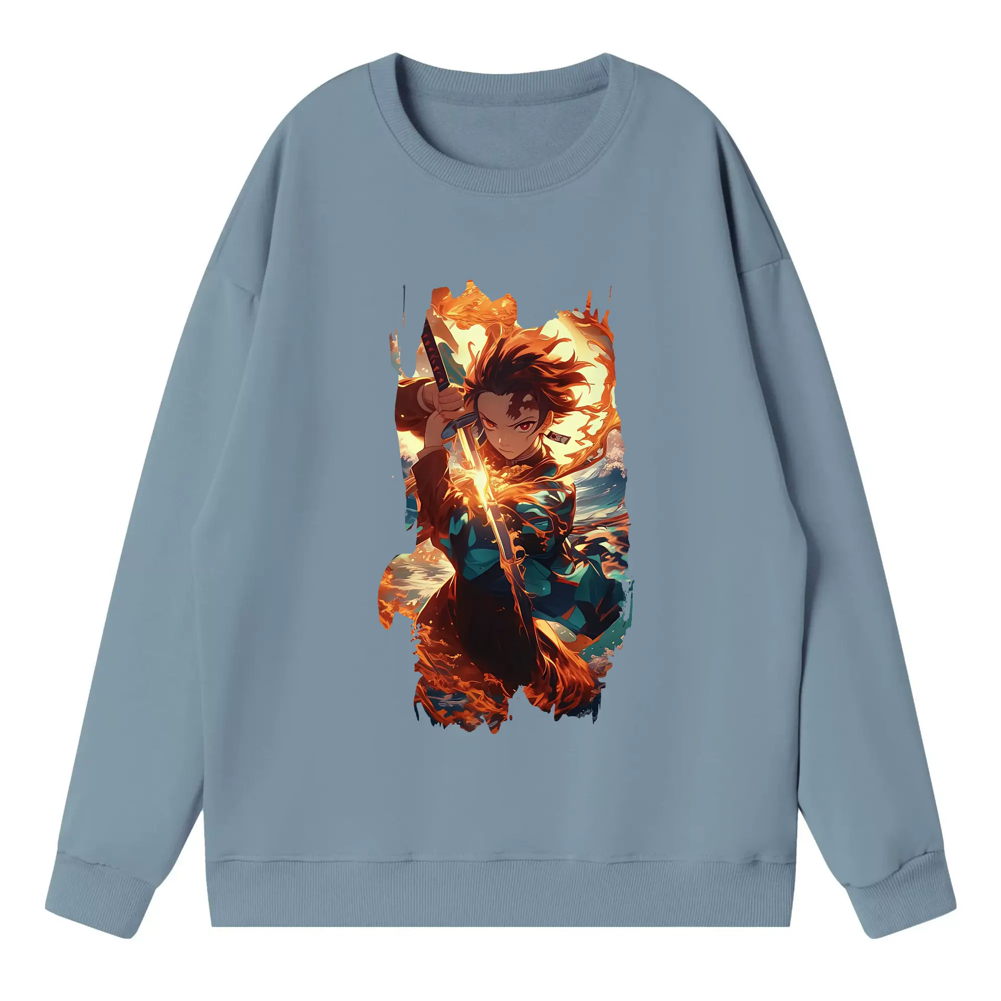 鬼滅の刃 グッズ,竈門 炭治郎 - 高品質 クルーネック スウェット ・ コットン59% ポリエステル41% ・ ユニセックス 長袖 トレーナー ・ カジュアル デイリー スポーツ 散歩用