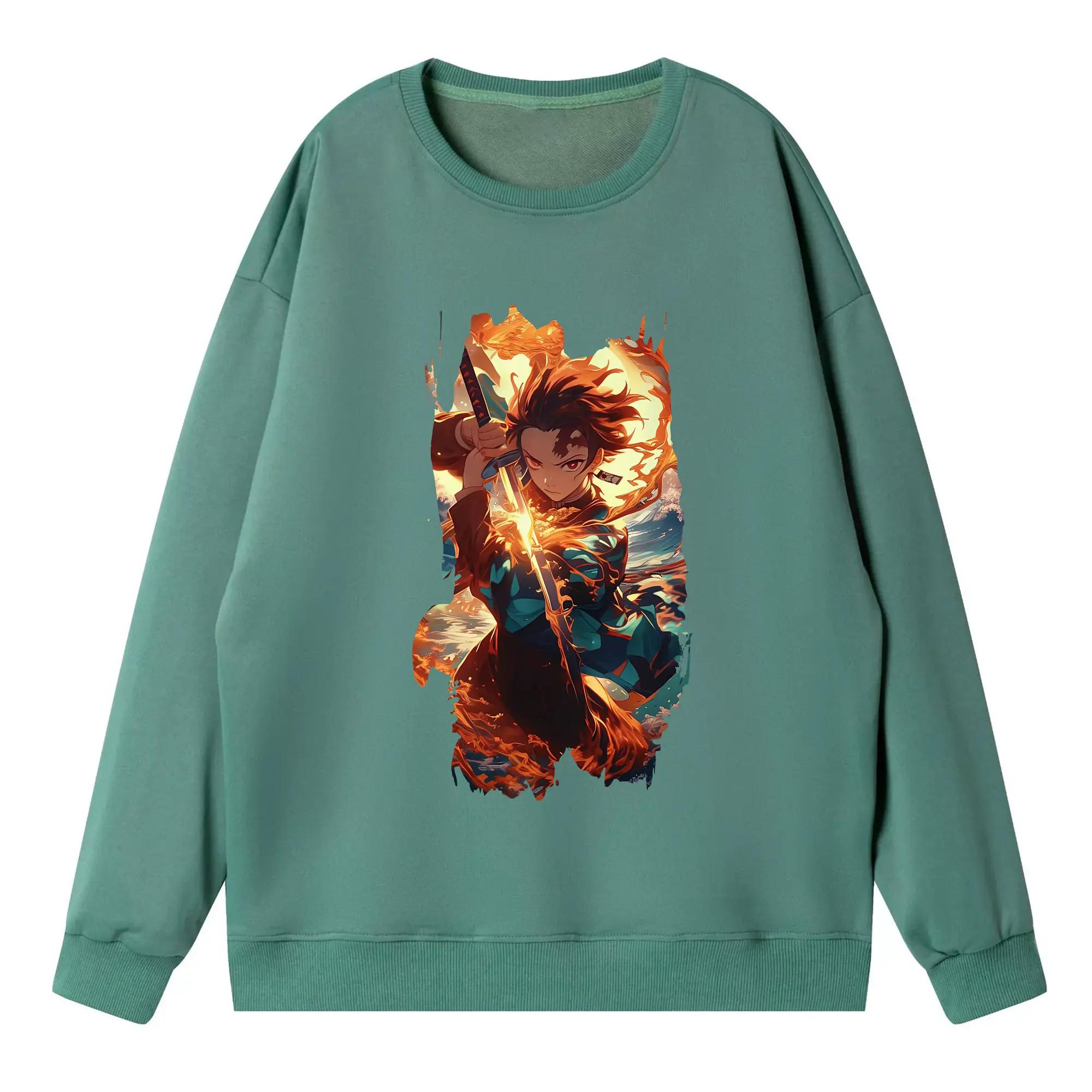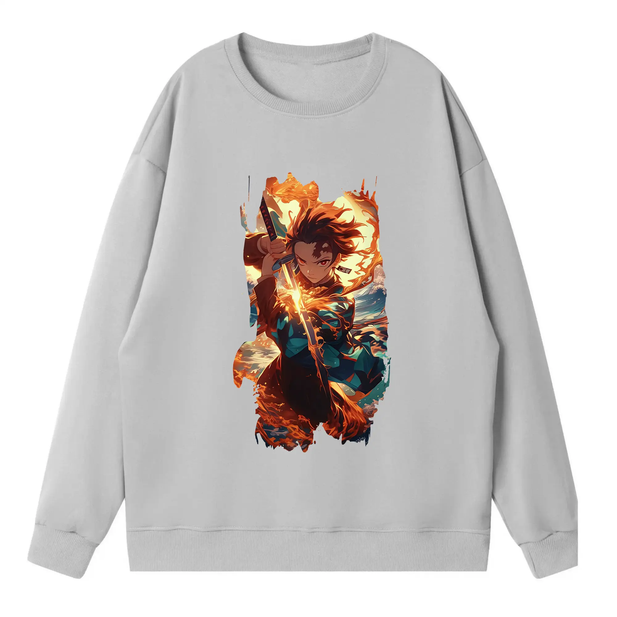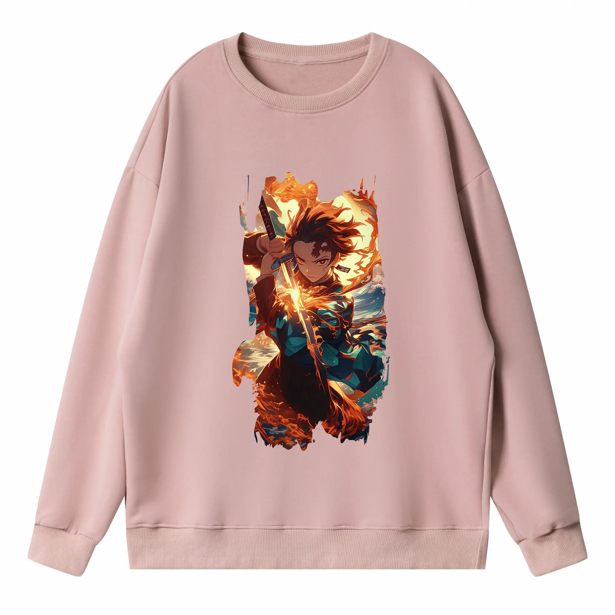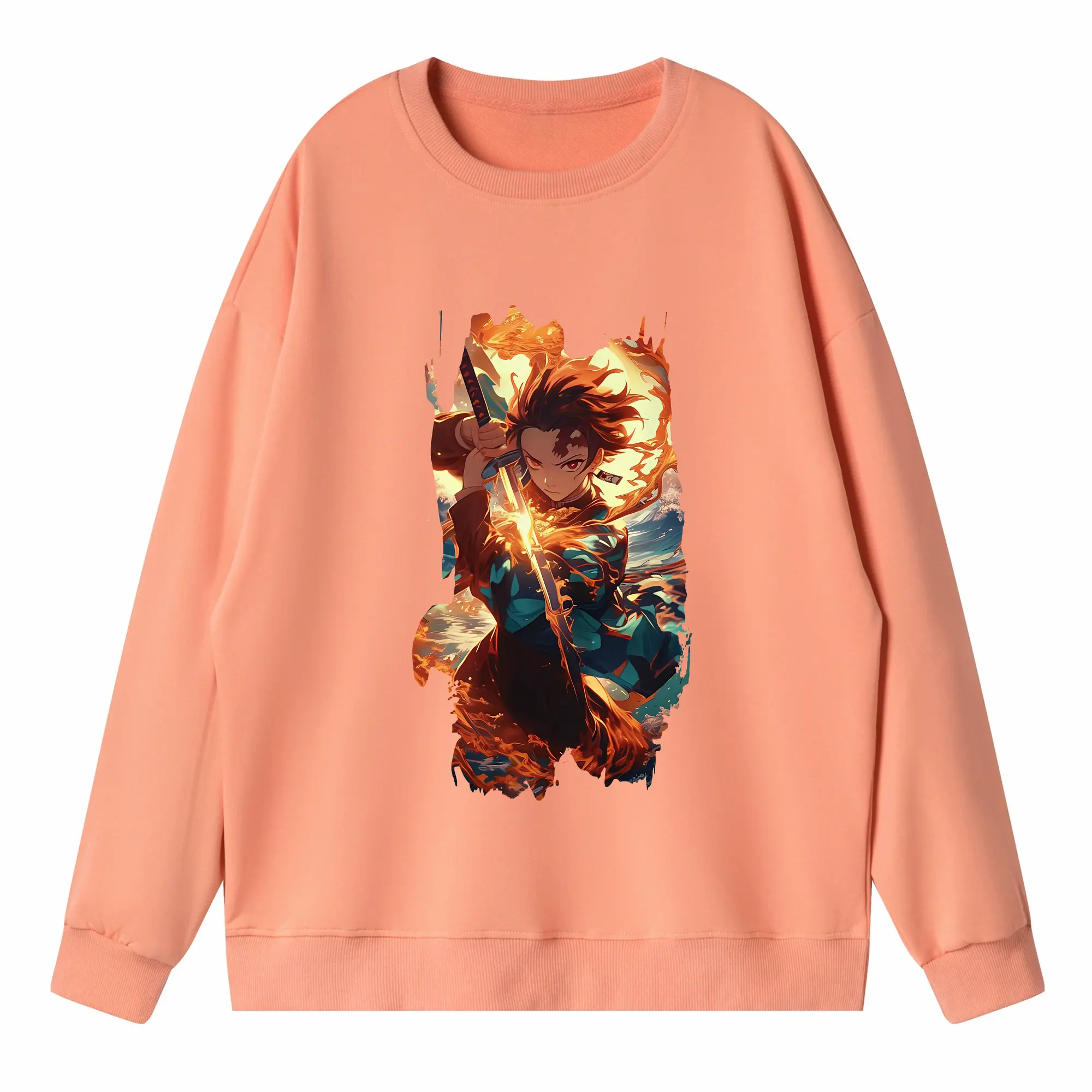 鬼滅の刃 グッズ,竈門 炭治郎 - 高品質 クルーネック スウェット ・ コットン59% ポリエステル41% ・ ユニセックス 長袖 トレーナー ・ カジュアル デイリー スポーツ 散歩用