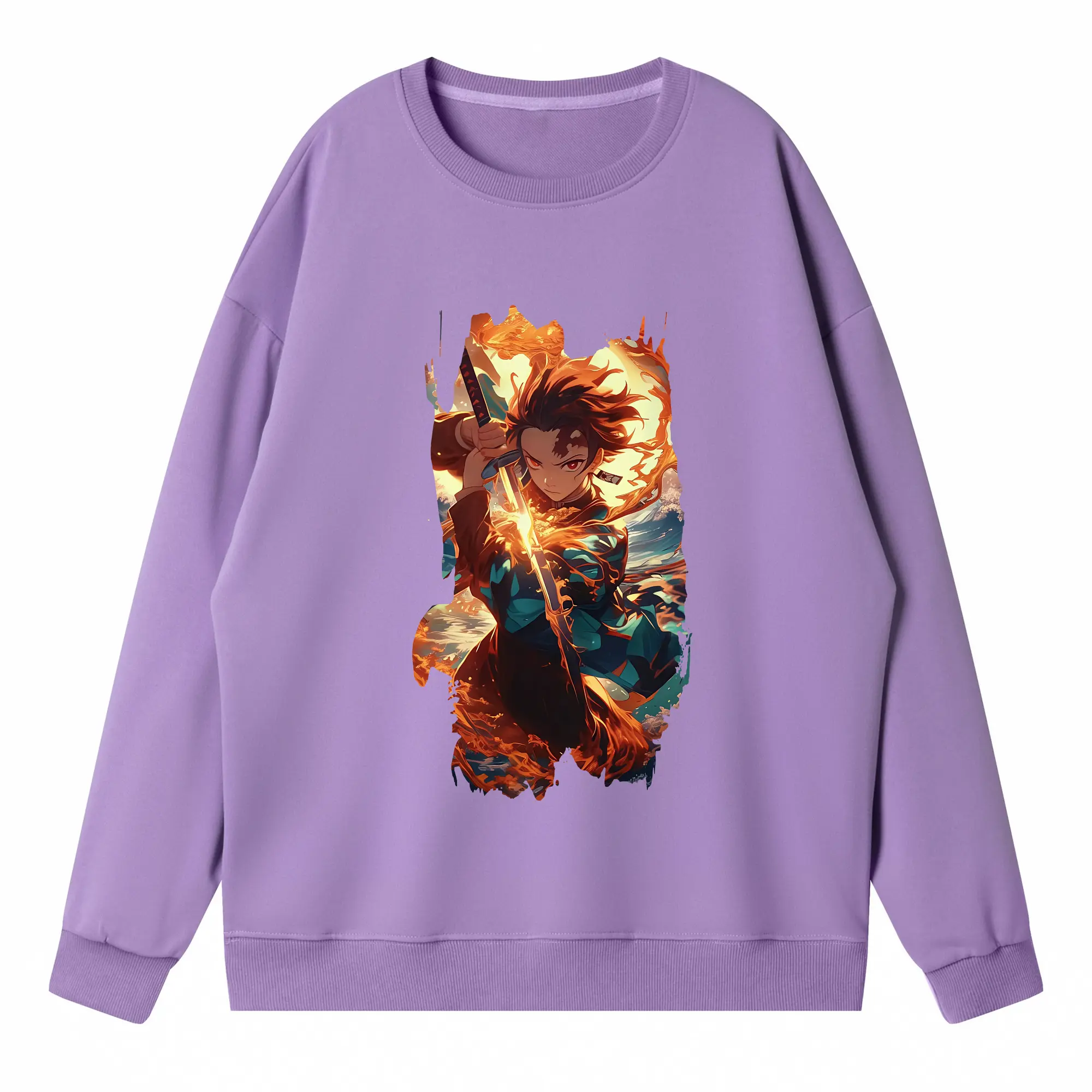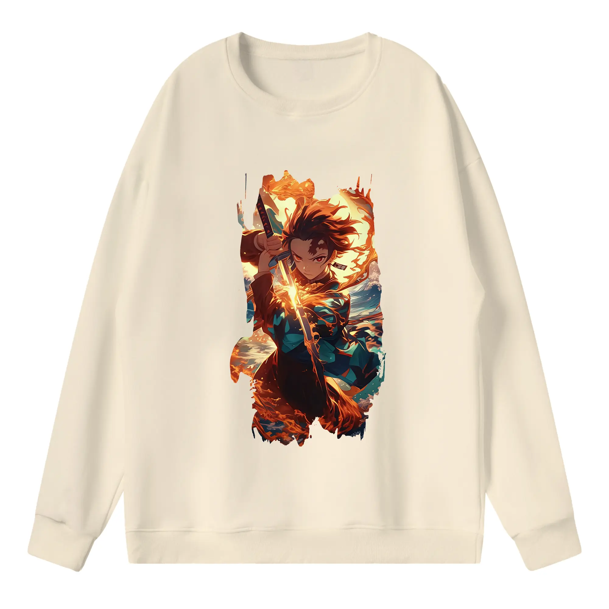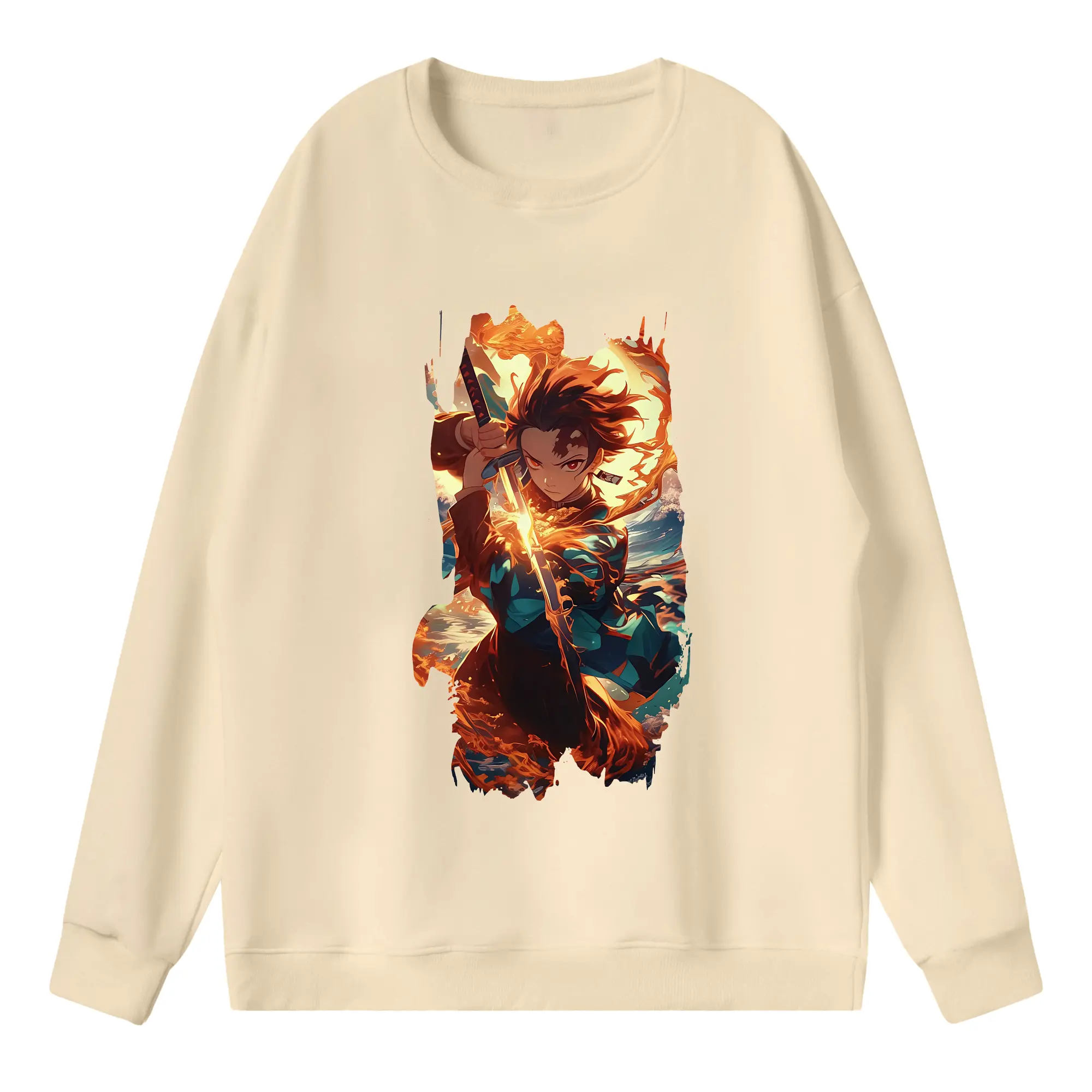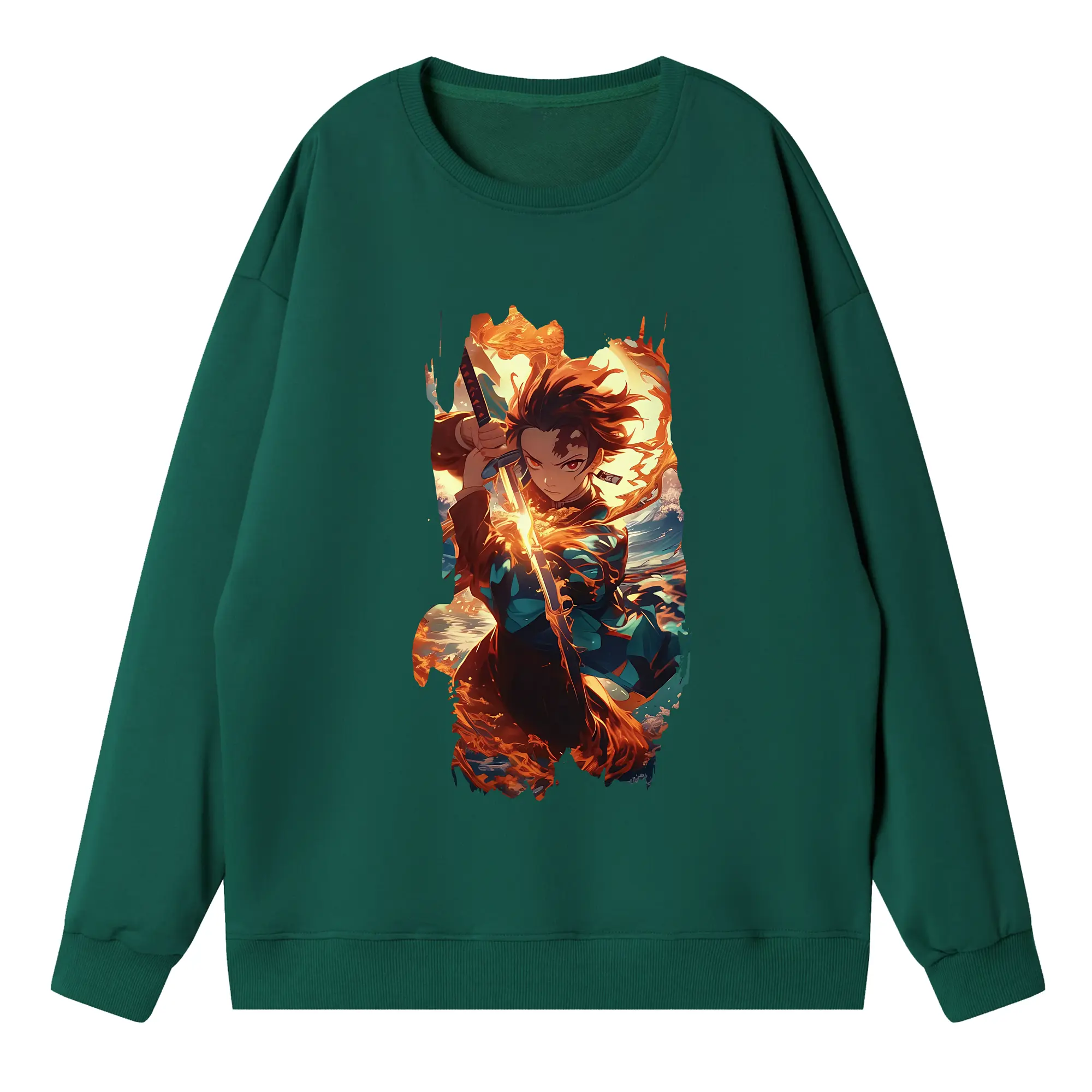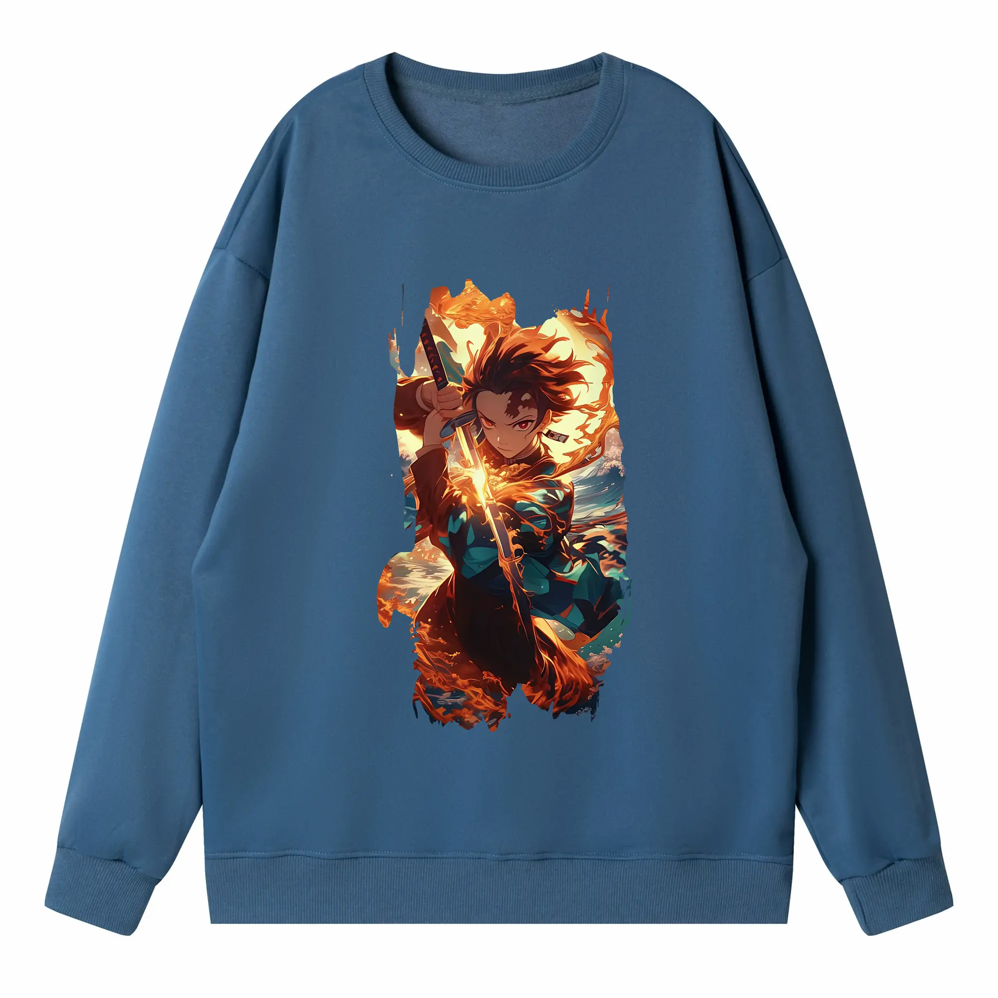 鬼滅の刃 グッズ,竈門 炭治郎 - 高品質 クルーネック スウェット ・ コットン59% ポリエステル41% ・ ユニセックス 長袖 トレーナー ・ カジュアル デイリー スポーツ 散歩用