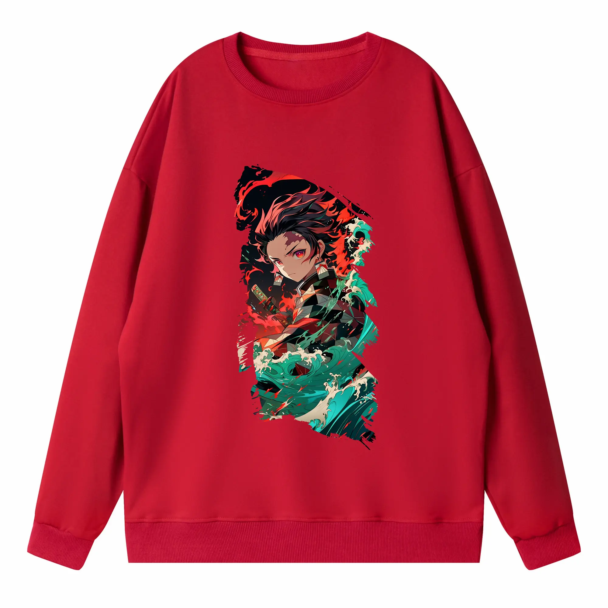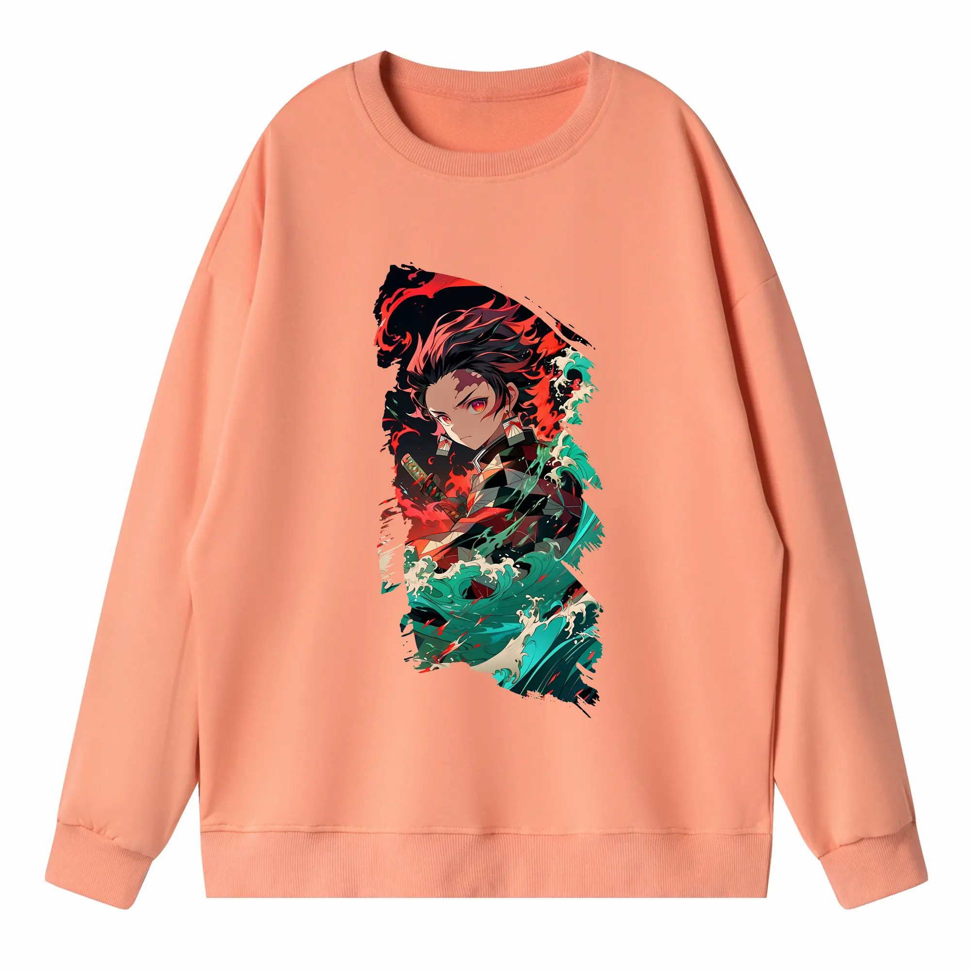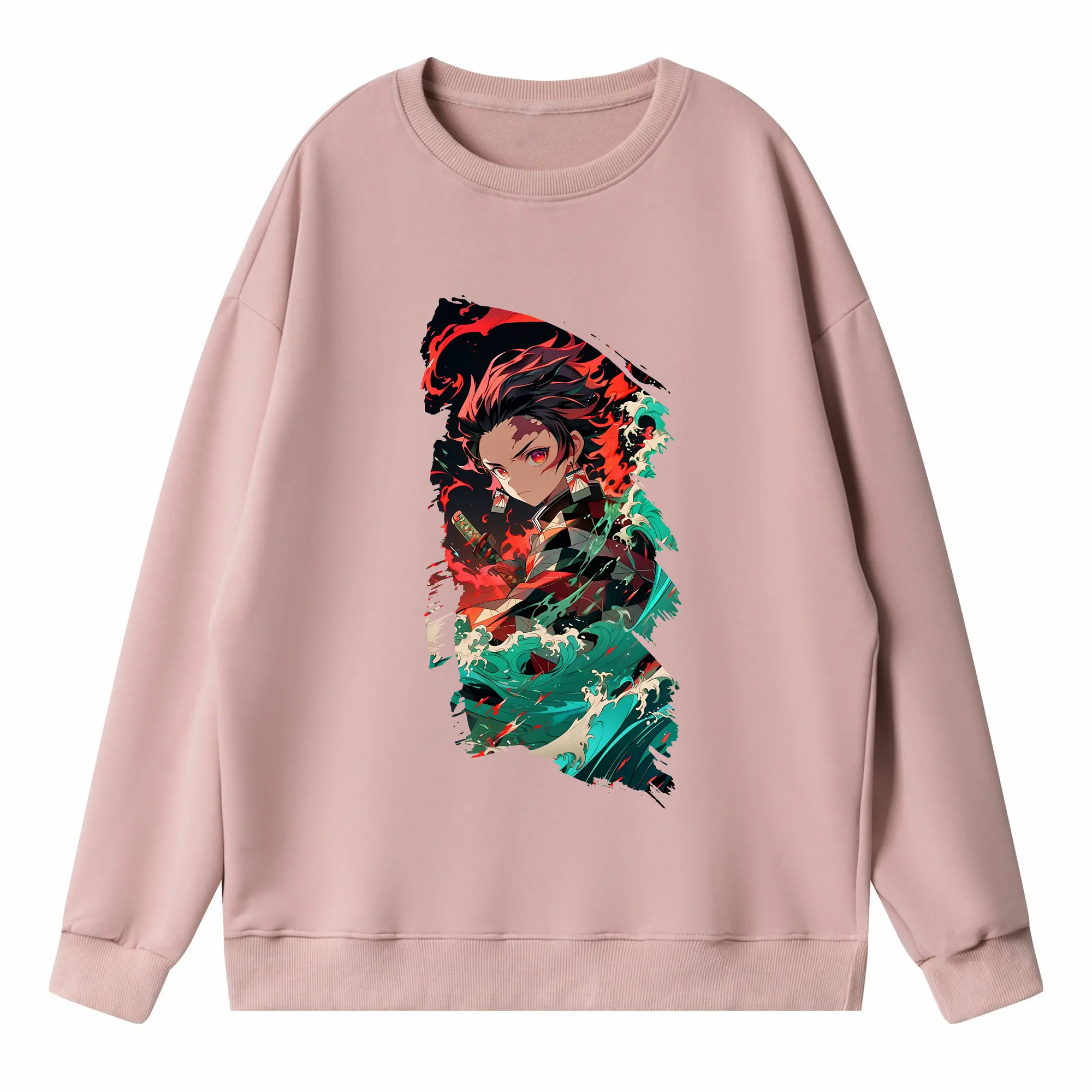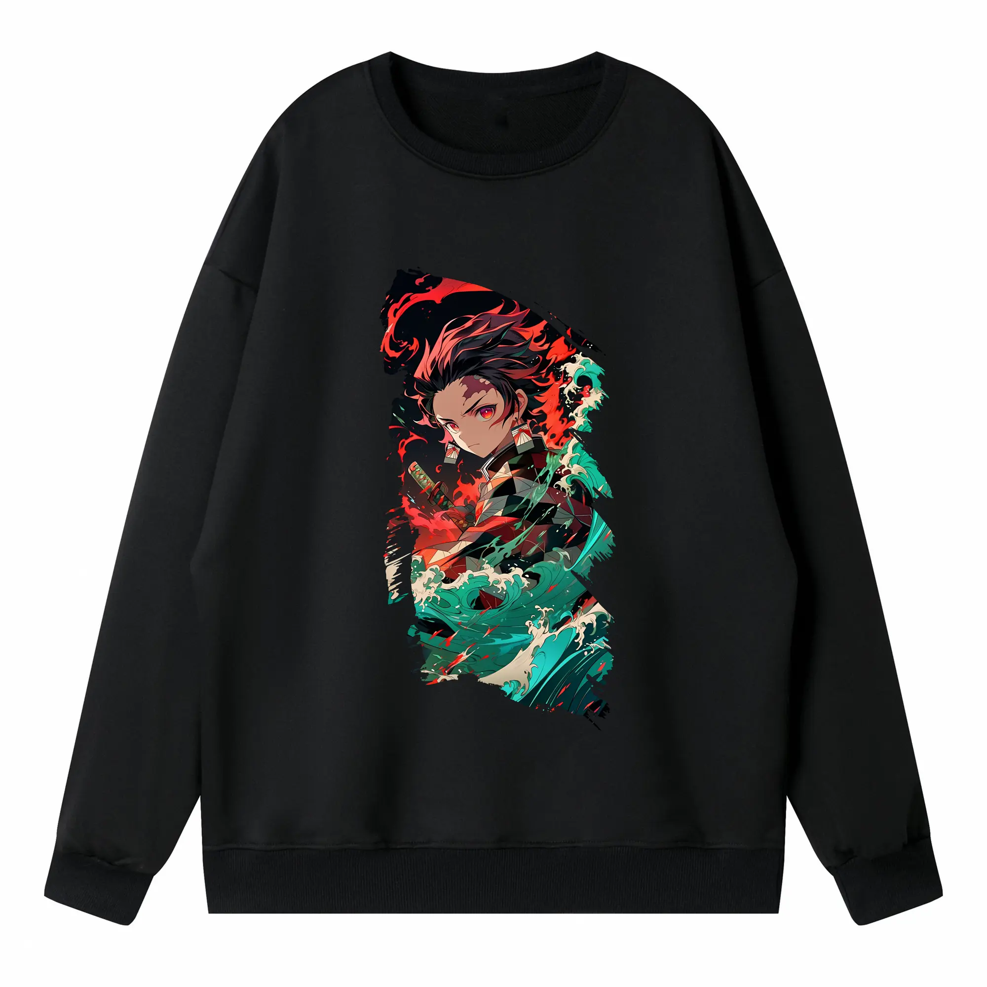鬼滅の刃 グッズ,竈門 炭治郎 - 高品質 クルーネック スウェット ・ コットン59% ポリエステル41% ・ ユニセックス 長袖 トレーナー ・ カジュアル デイリー スポーツ 散歩用