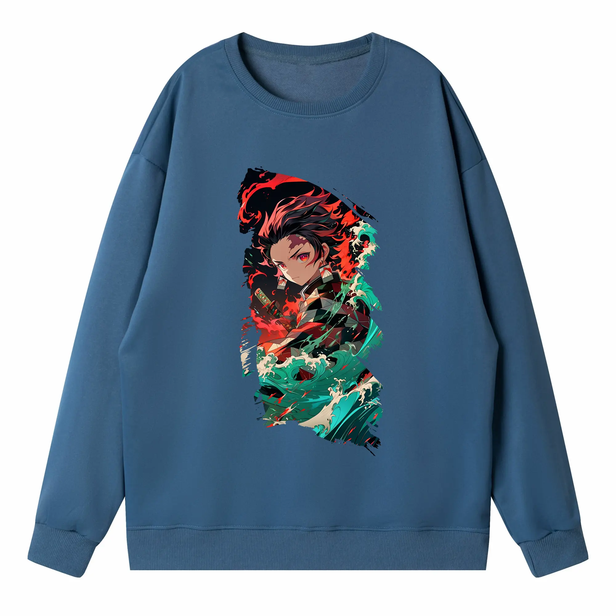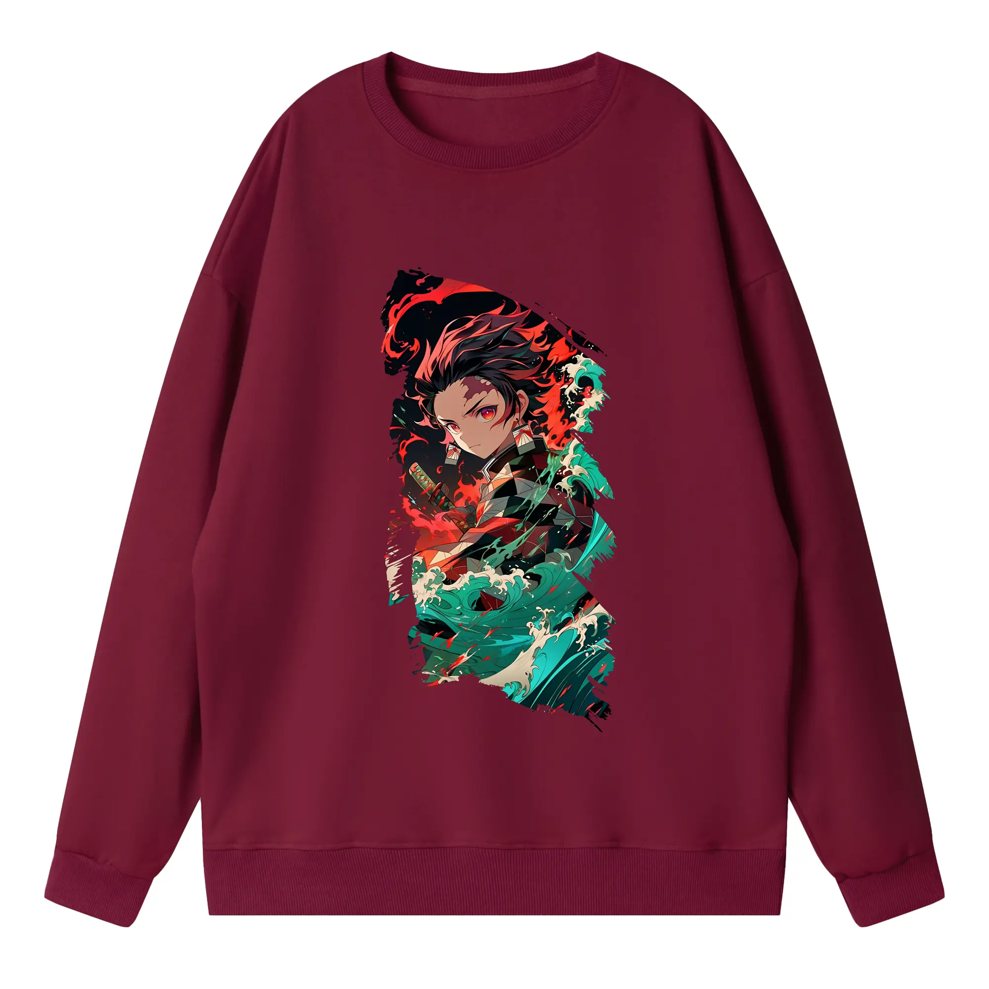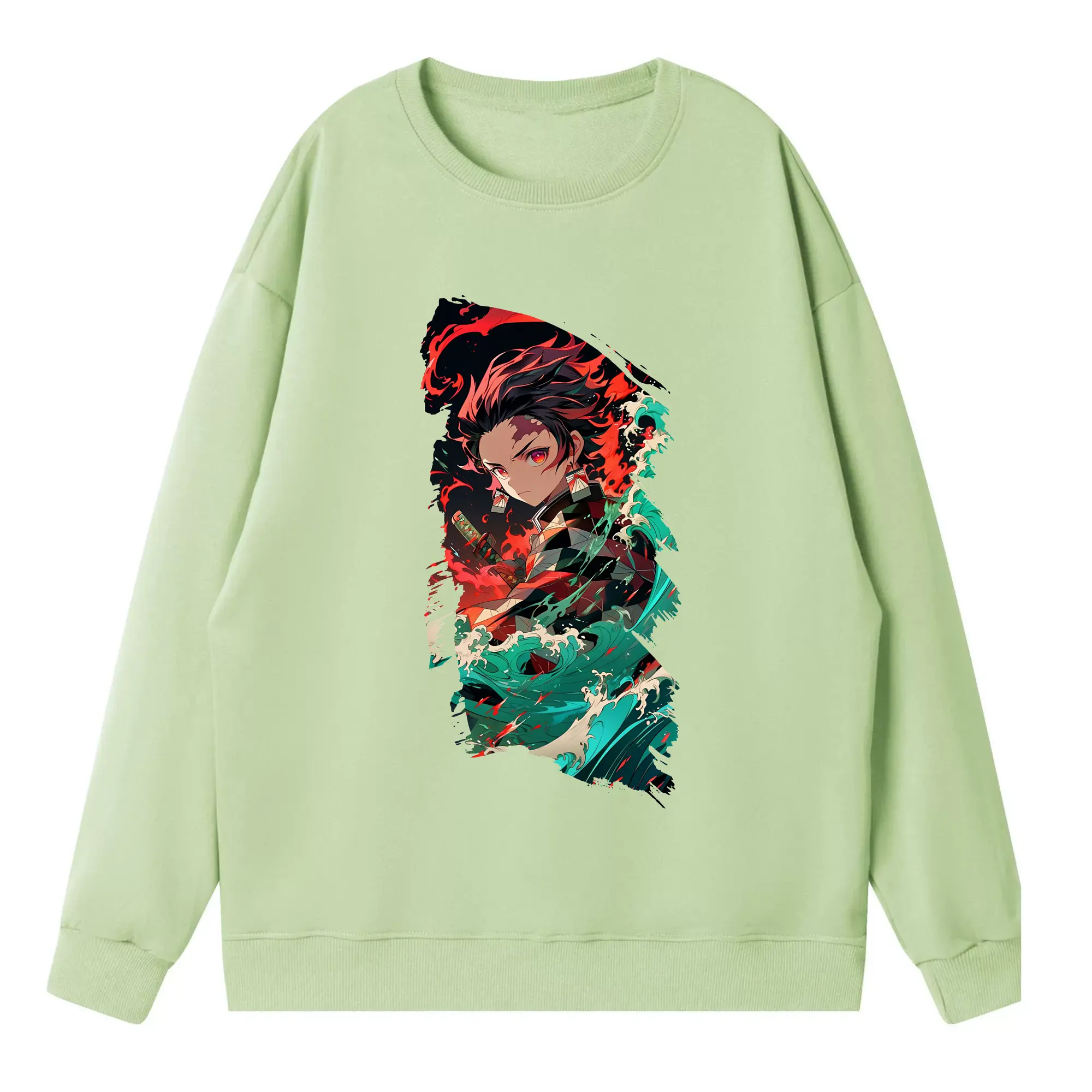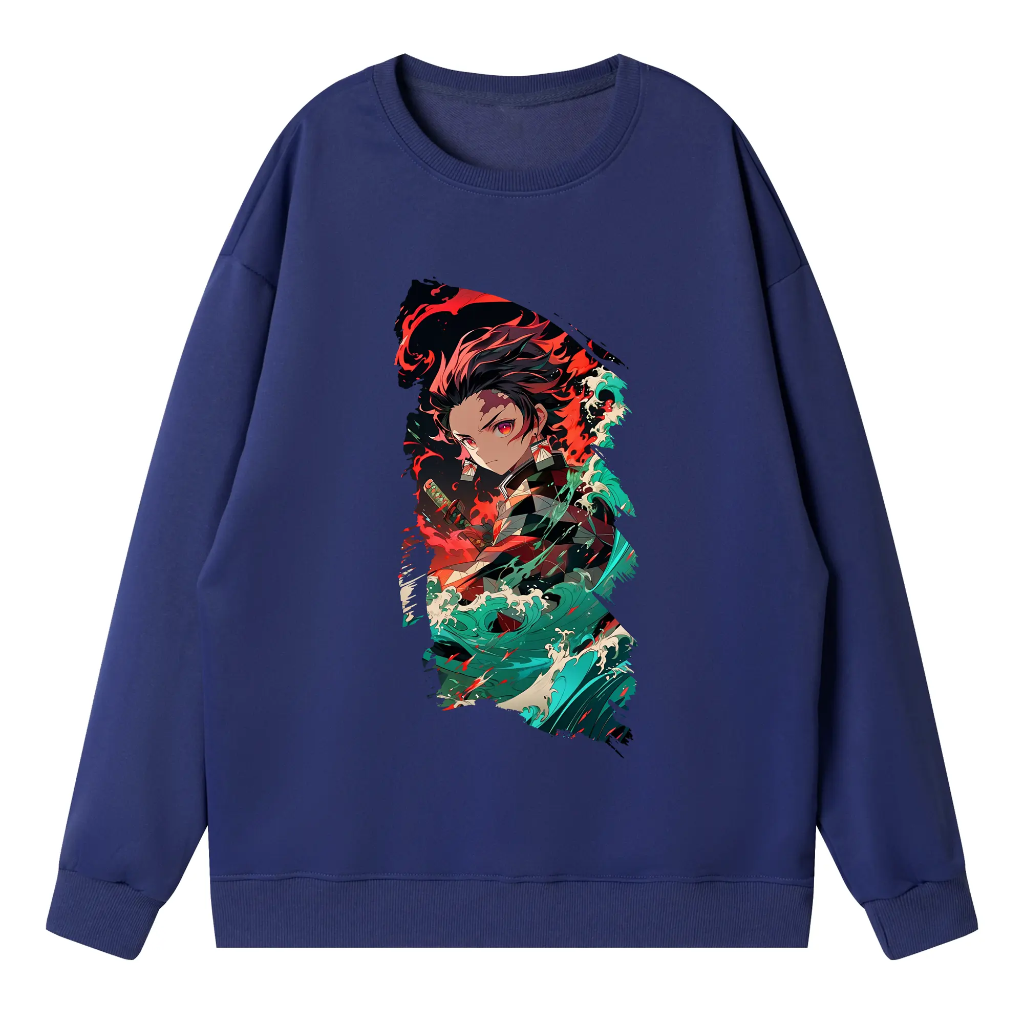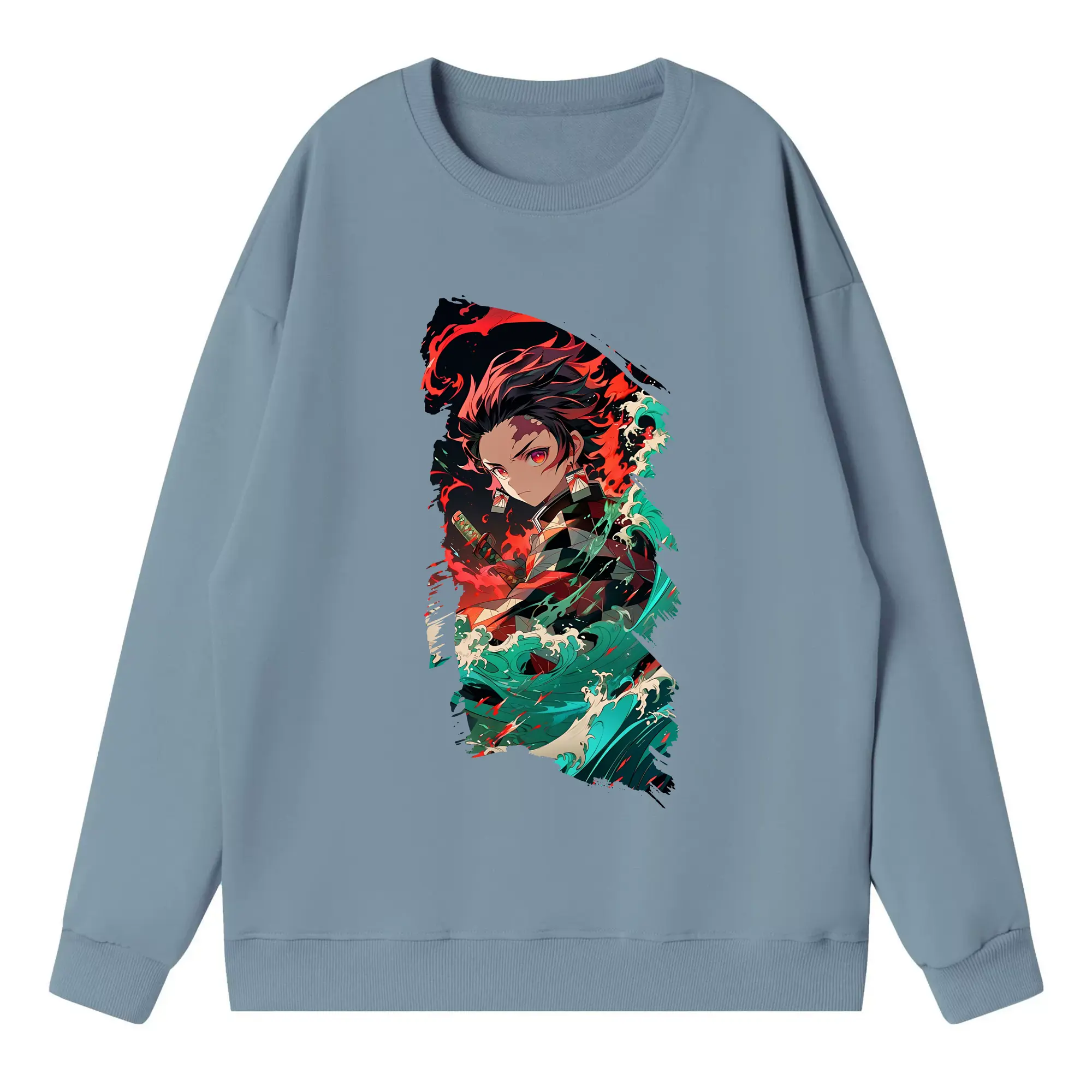 鬼滅の刃 グッズ,竈門 炭治郎 - 高品質 クルーネック スウェット ・ コットン59% ポリエステル41% ・ ユニセックス 長袖 トレーナー ・ カジュアル デイリー スポーツ 散歩用