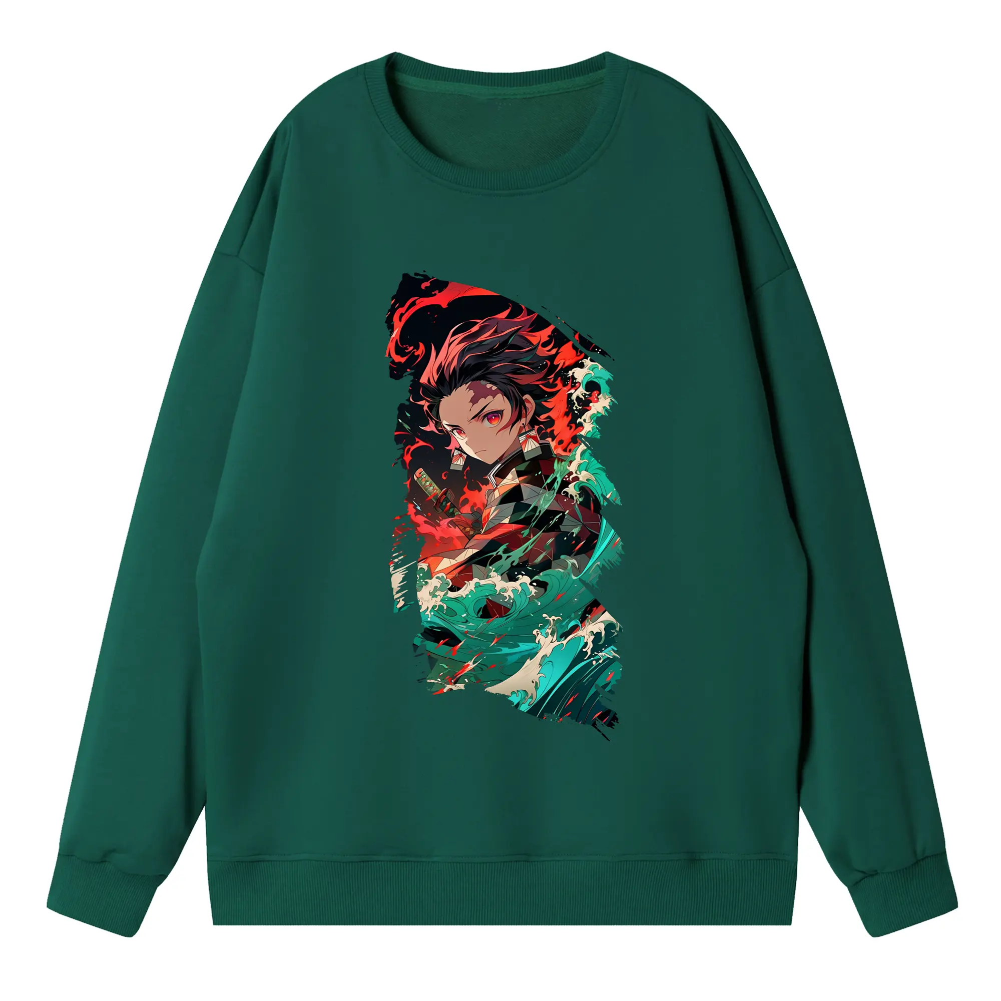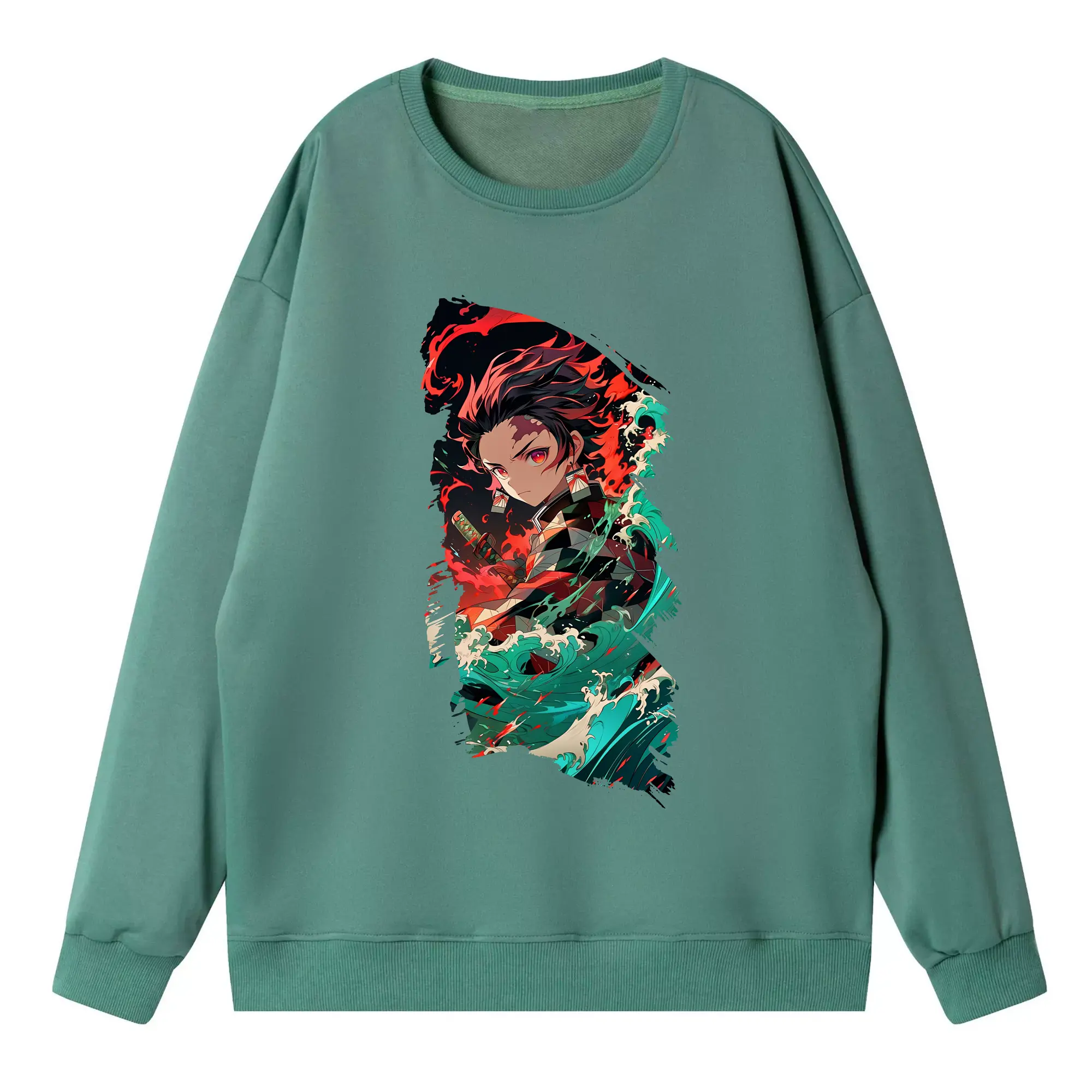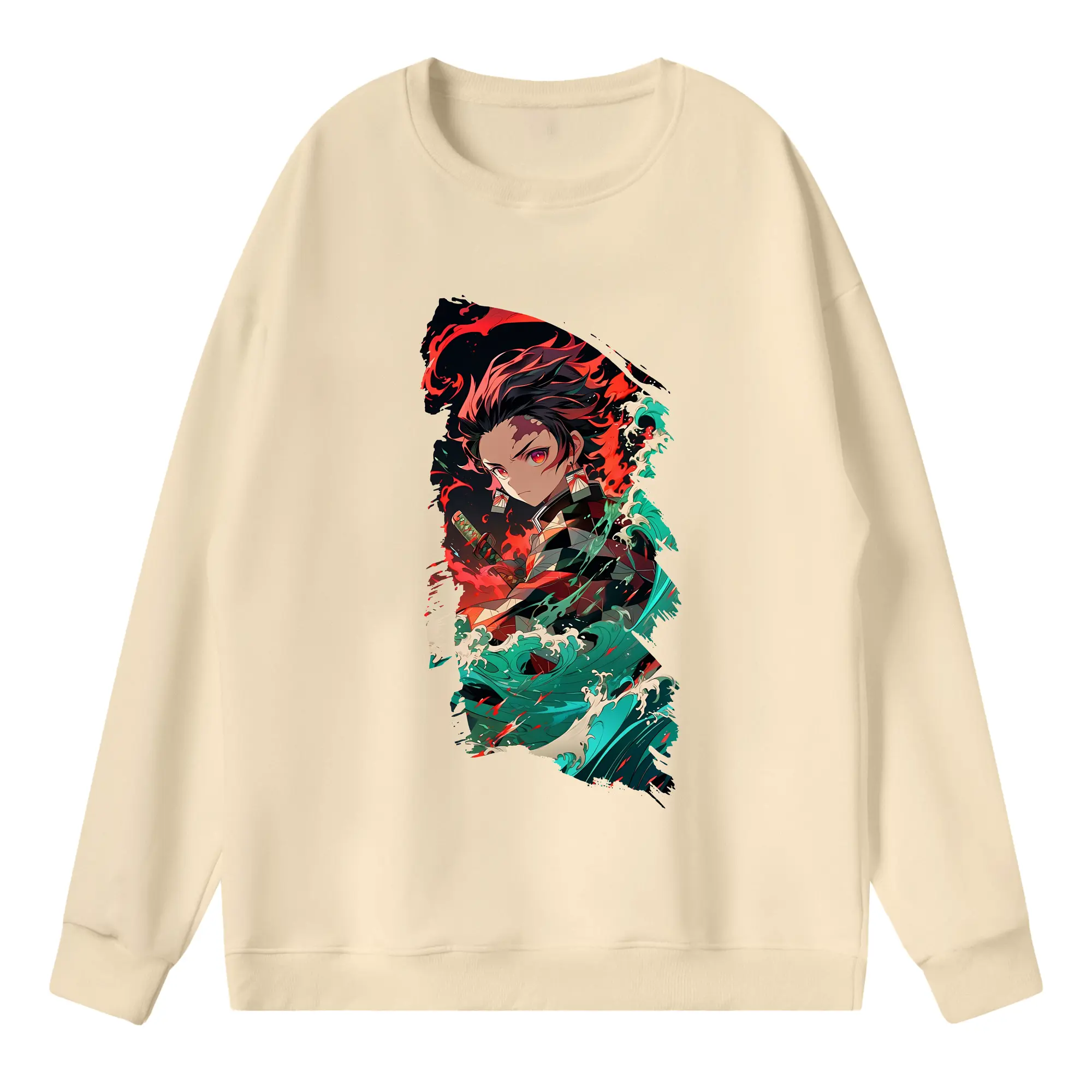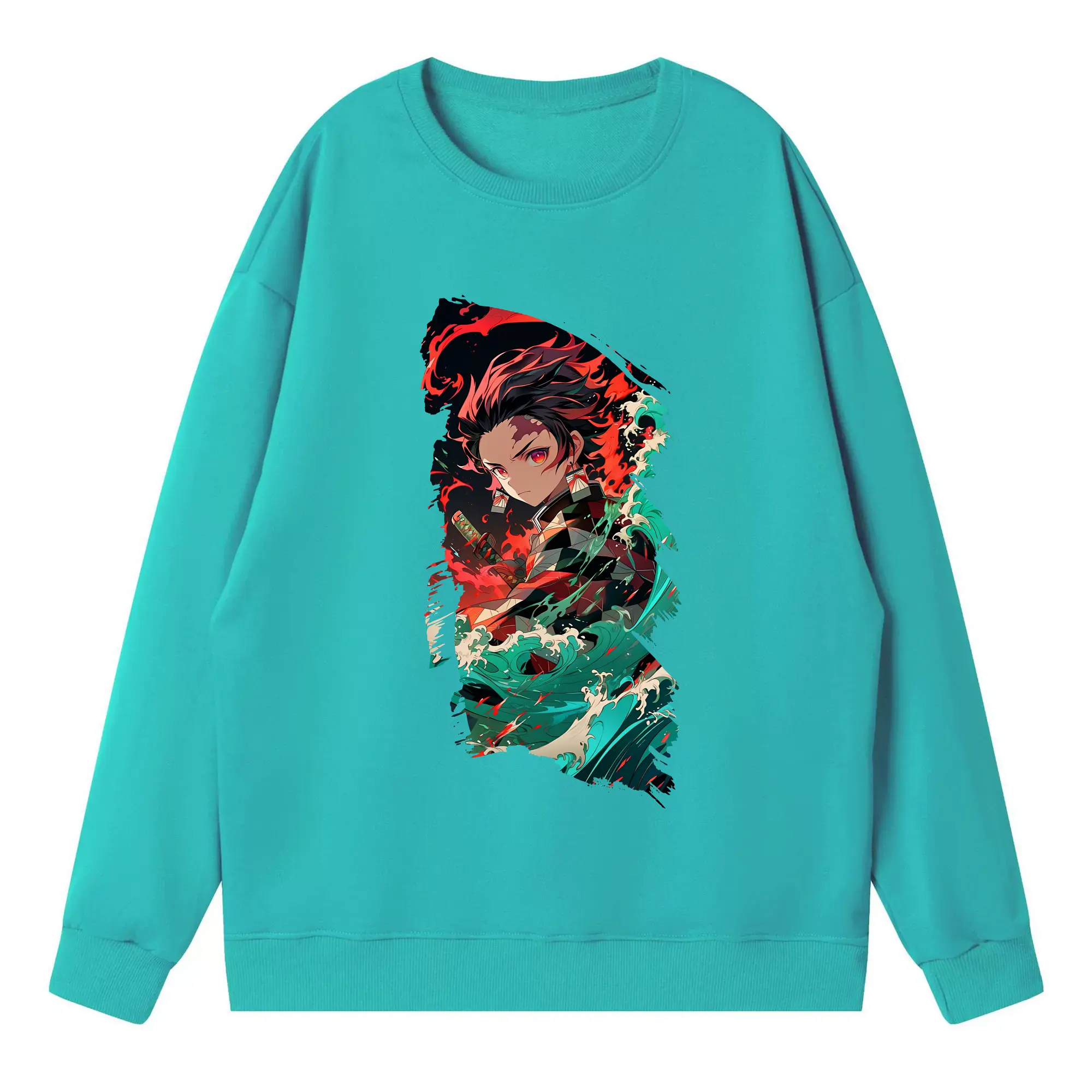 鬼滅の刃 グッズ,竈門 炭治郎 - 高品質 クルーネック スウェット ・ コットン59% ポリエステル41% ・ ユニセックス 長袖 トレーナー ・ カジュアル デイリー スポーツ 散歩用