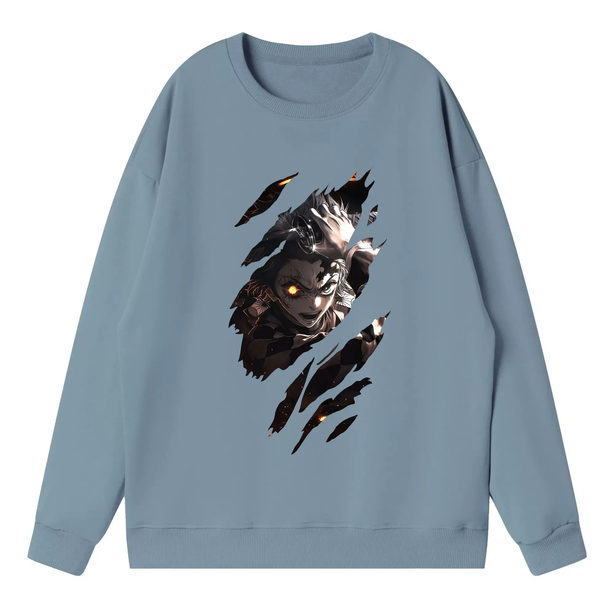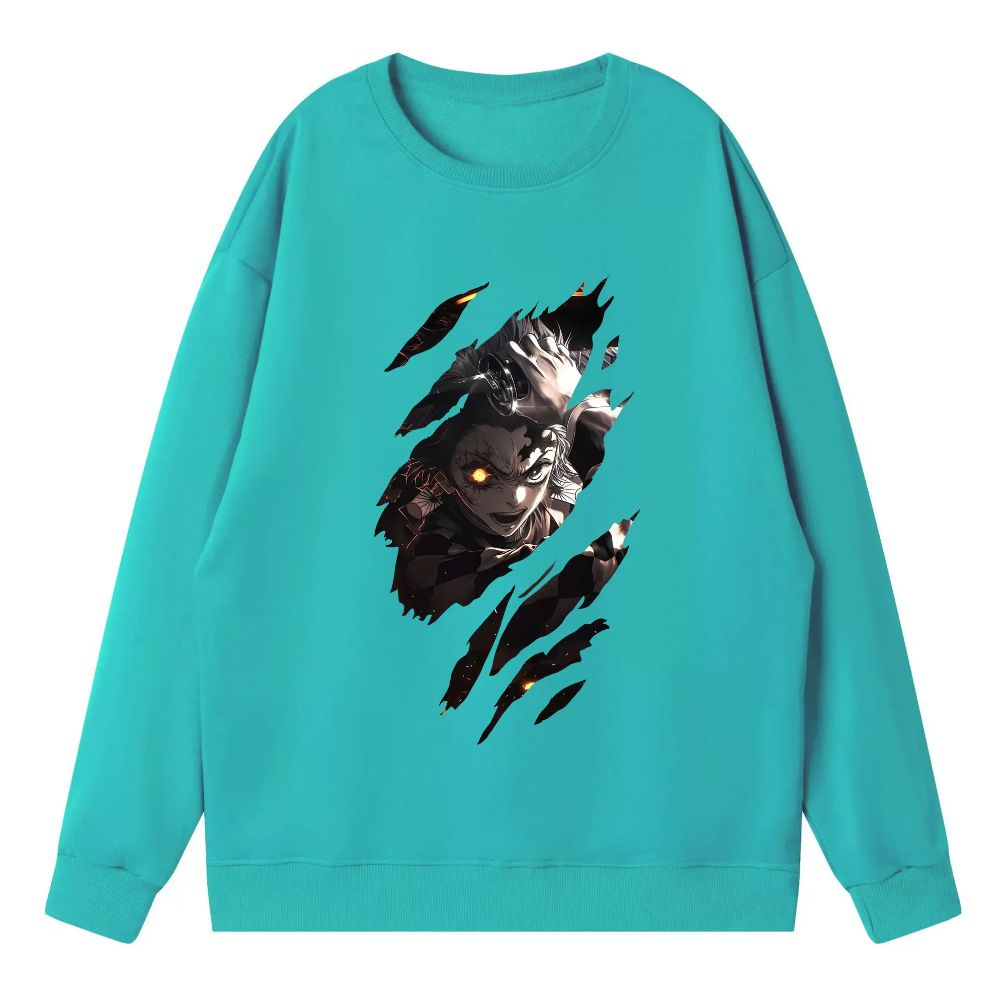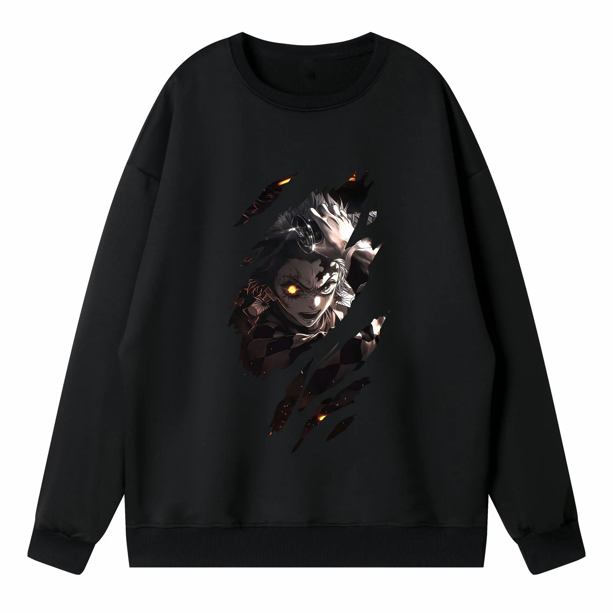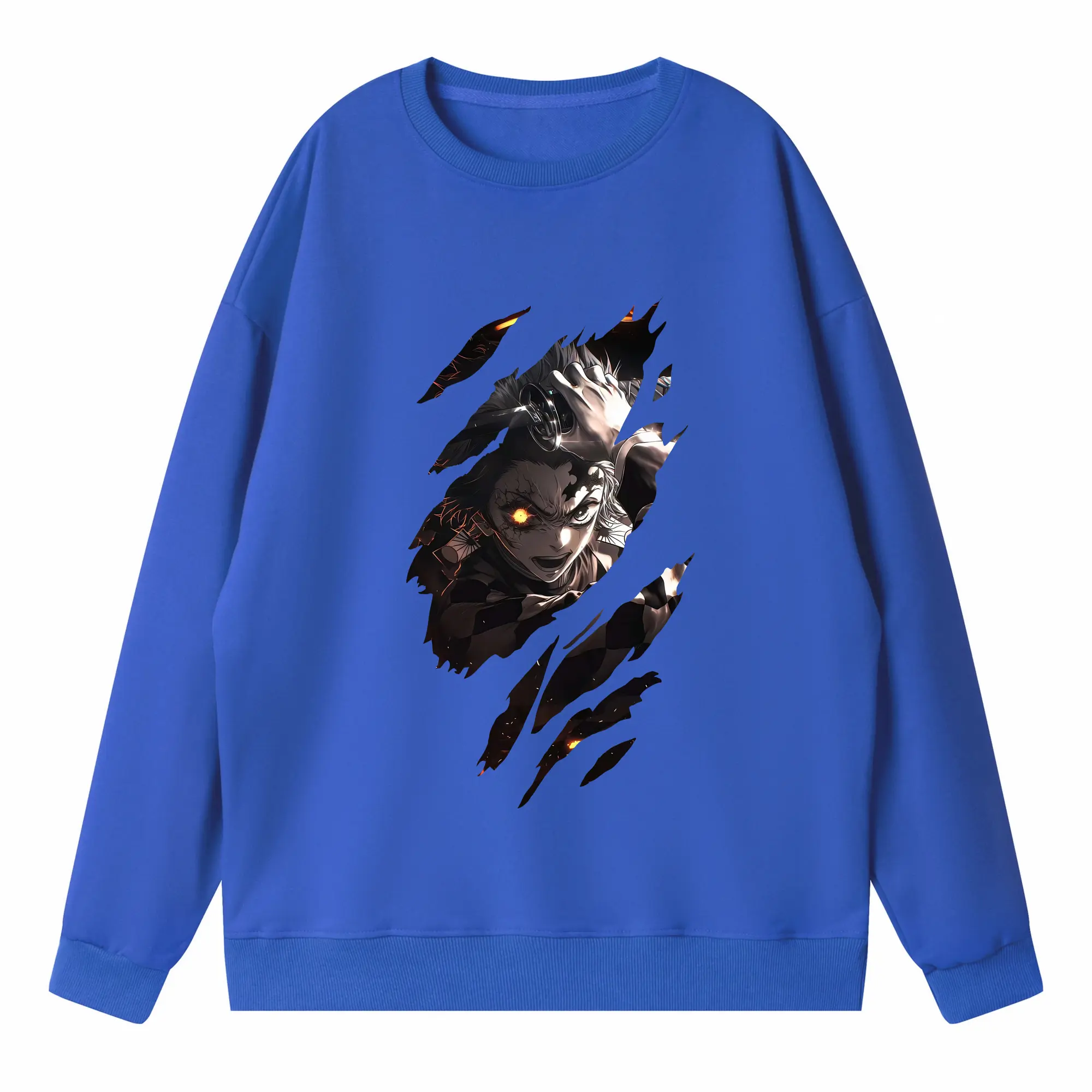 鬼滅の刃 グッズ,竈門 炭治郎 - 薄手 クルーネック スウェット 裏毛260g · ポリエステル 春秋向け カジュアル 男女兼用 · トレーナー デイリー スポーツ 散歩に最適