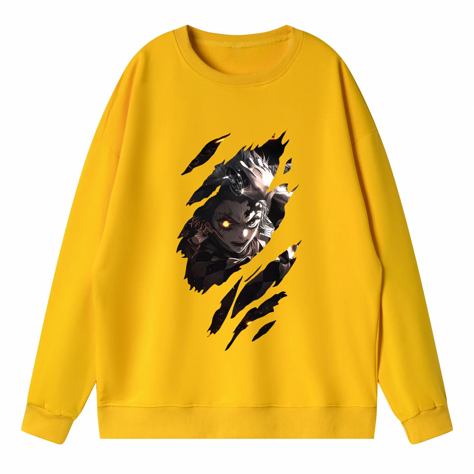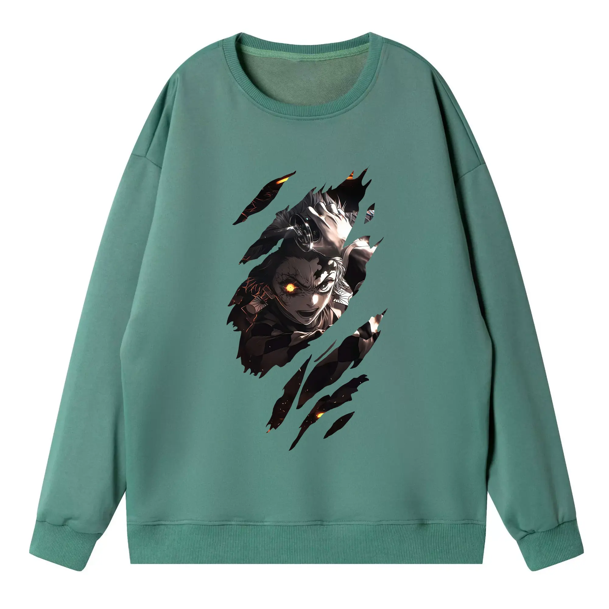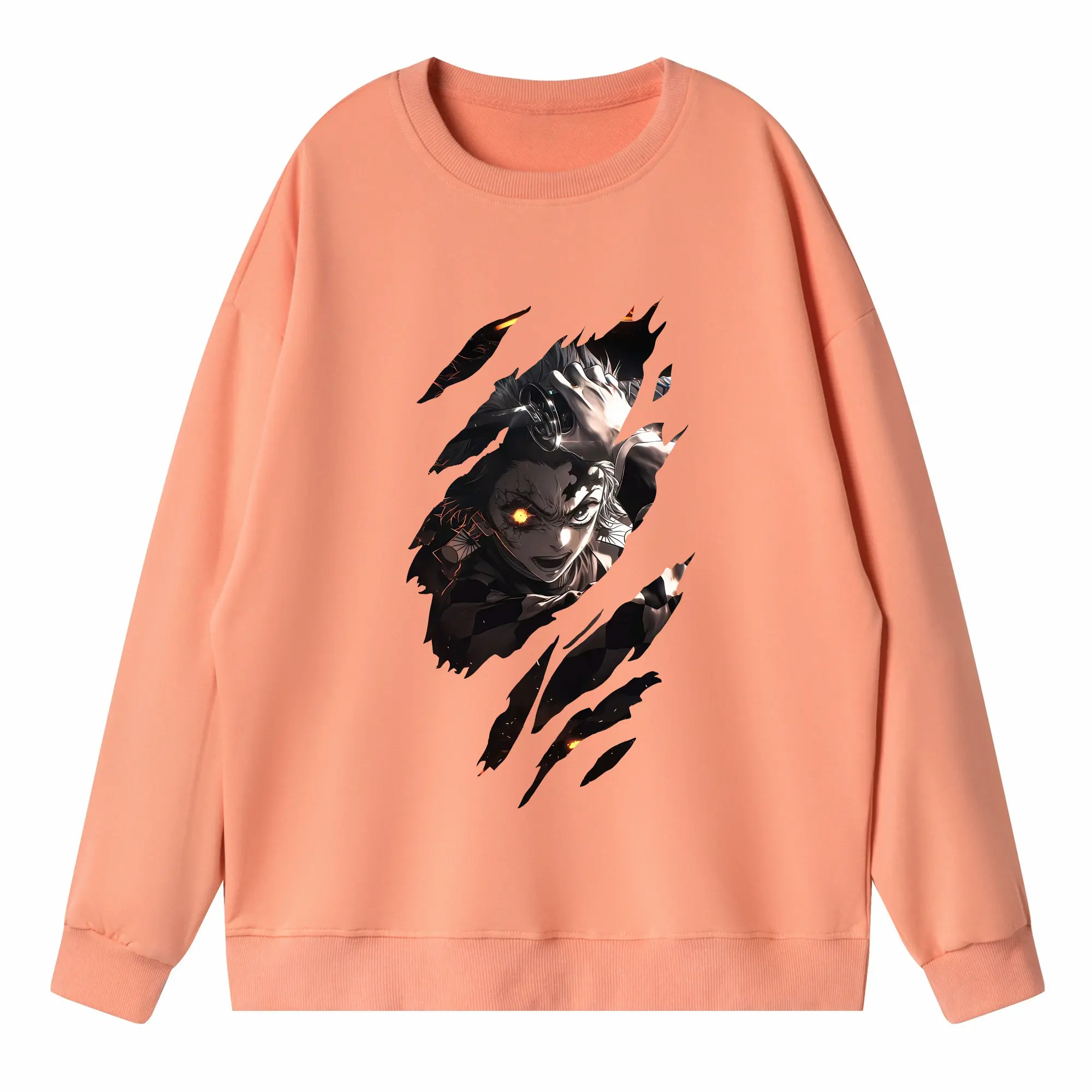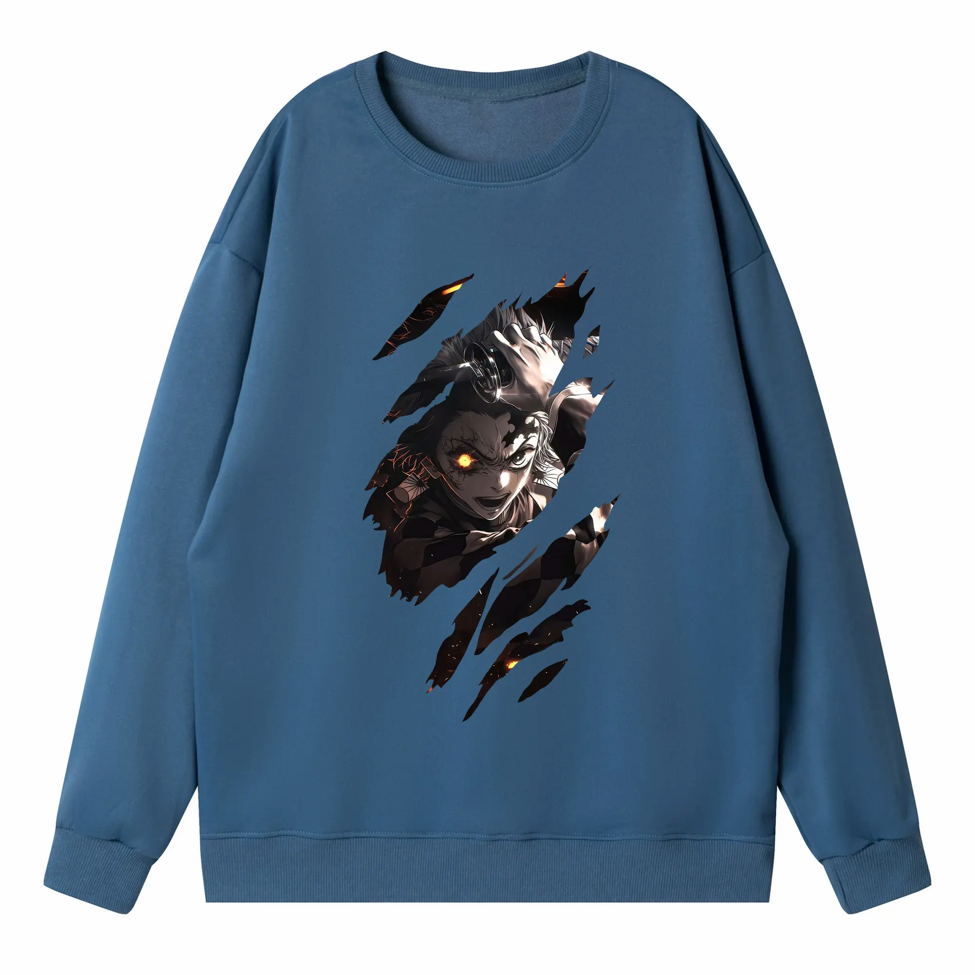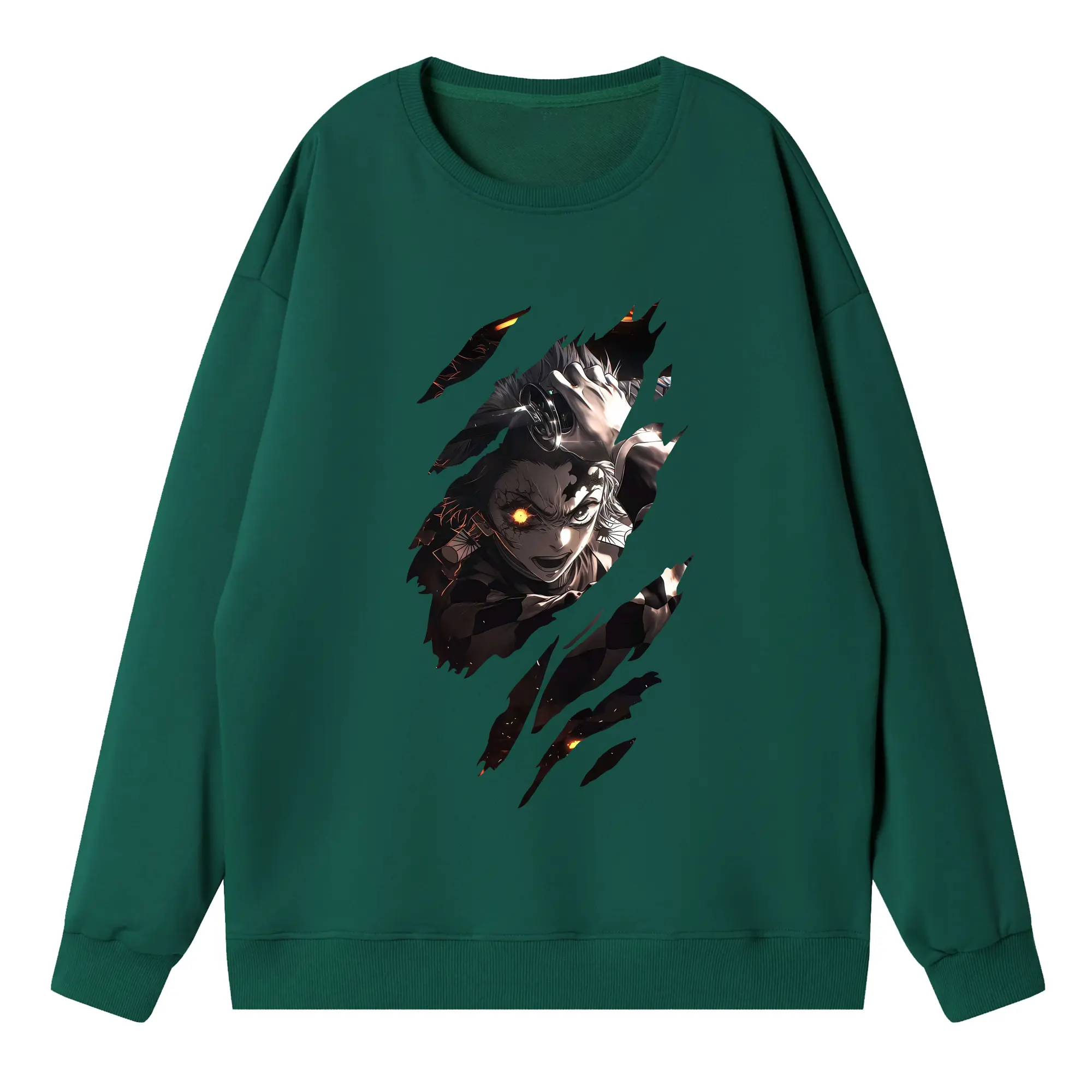 鬼滅の刃 グッズ,竈門 炭治郎 - 薄手 クルーネック スウェット 裏毛260g · ポリエステル 春秋向け カジュアル 男女兼用 · トレーナー デイリー スポーツ 散歩に最適