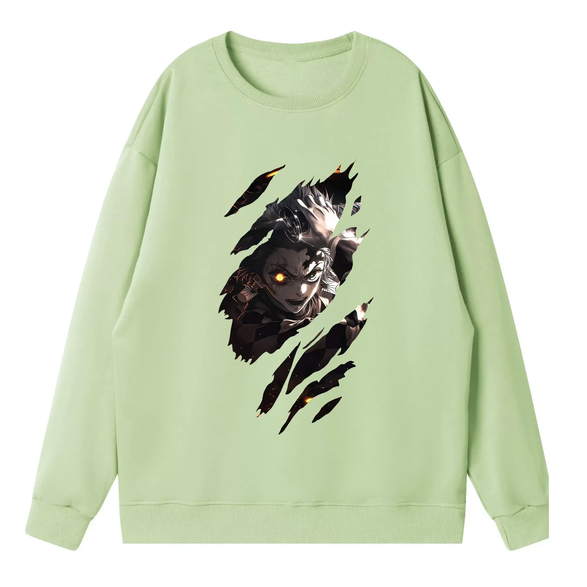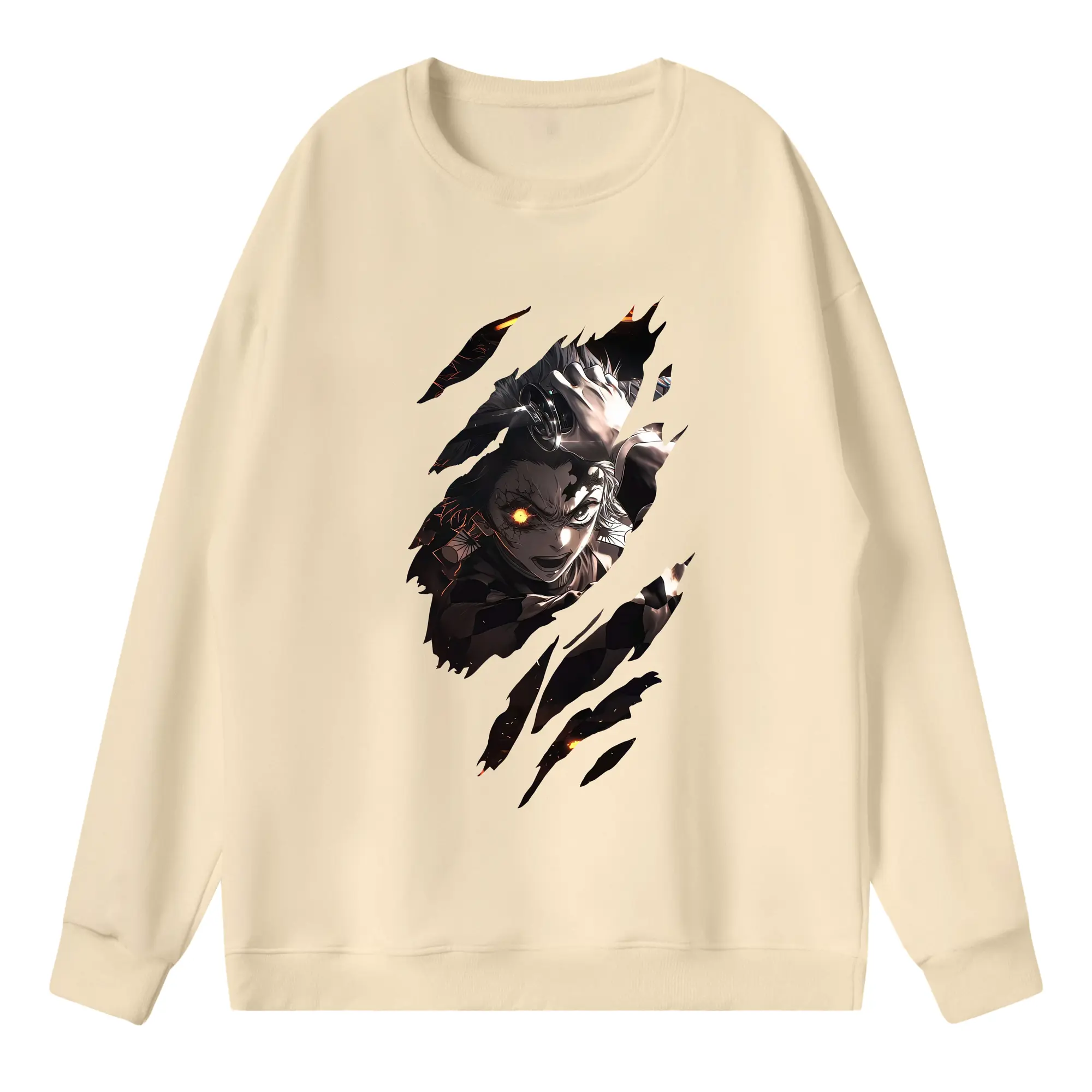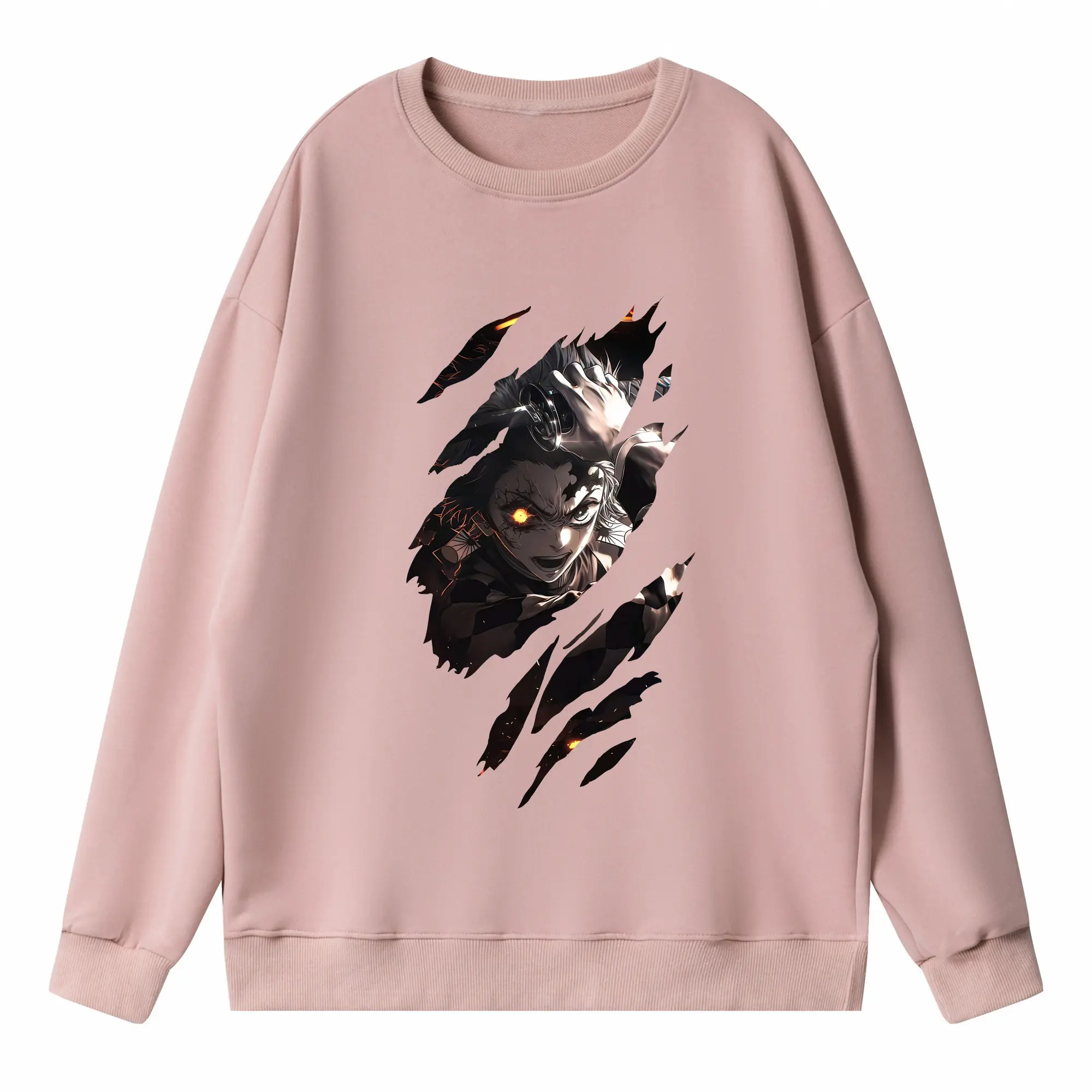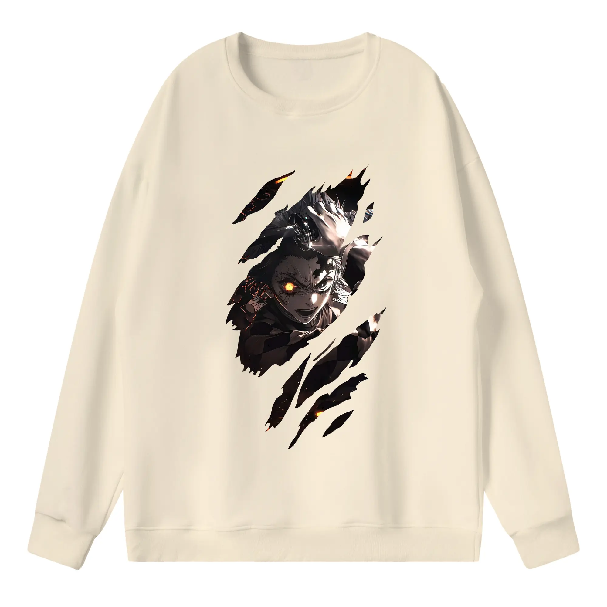 鬼滅の刃 グッズ,竈門 炭治郎 - 薄手 クルーネック スウェット 裏毛260g · ポリエステル 春秋向け カジュアル 男女兼用 · トレーナー デイリー スポーツ 散歩に最適
