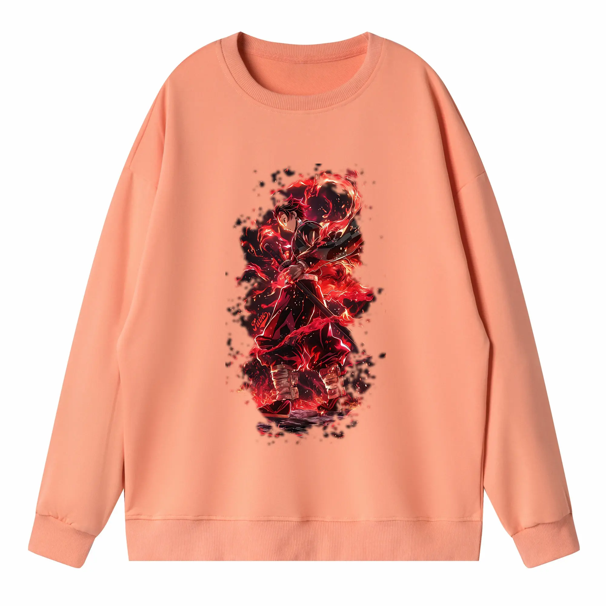 鬼滅の刃 グッズ,竈門 炭治郎 - 高品質 クルーネック スウェット ・ コットン59% ポリエステル41% ・ ユニセックス 長袖 トレーナー ・ カジュアル デイリー スポーツ 散歩用