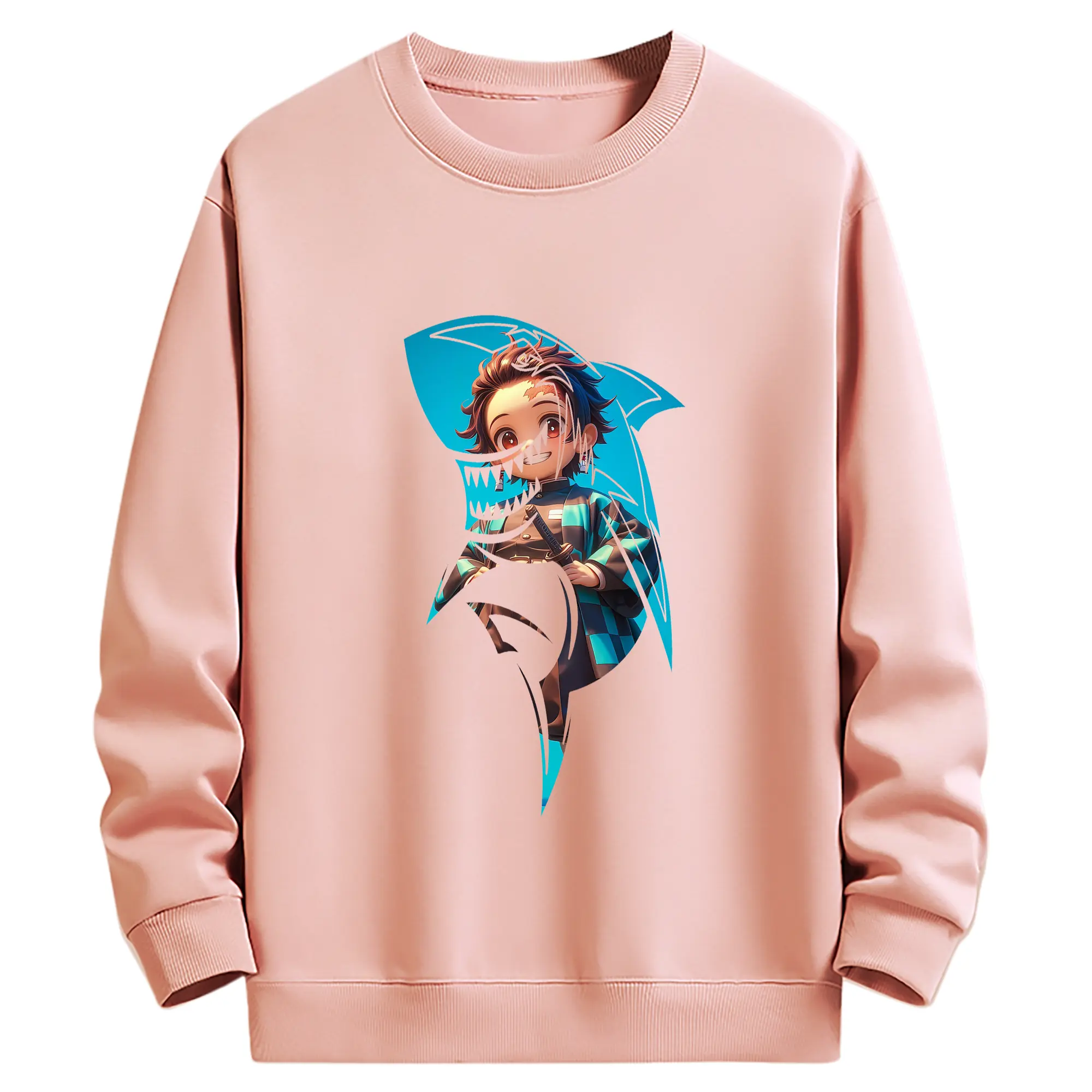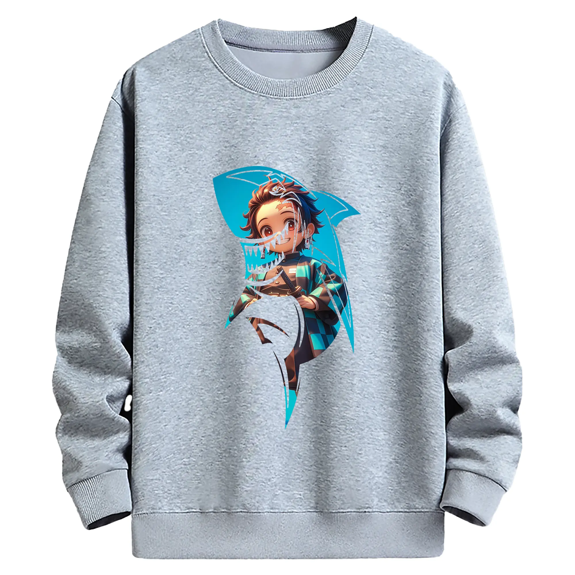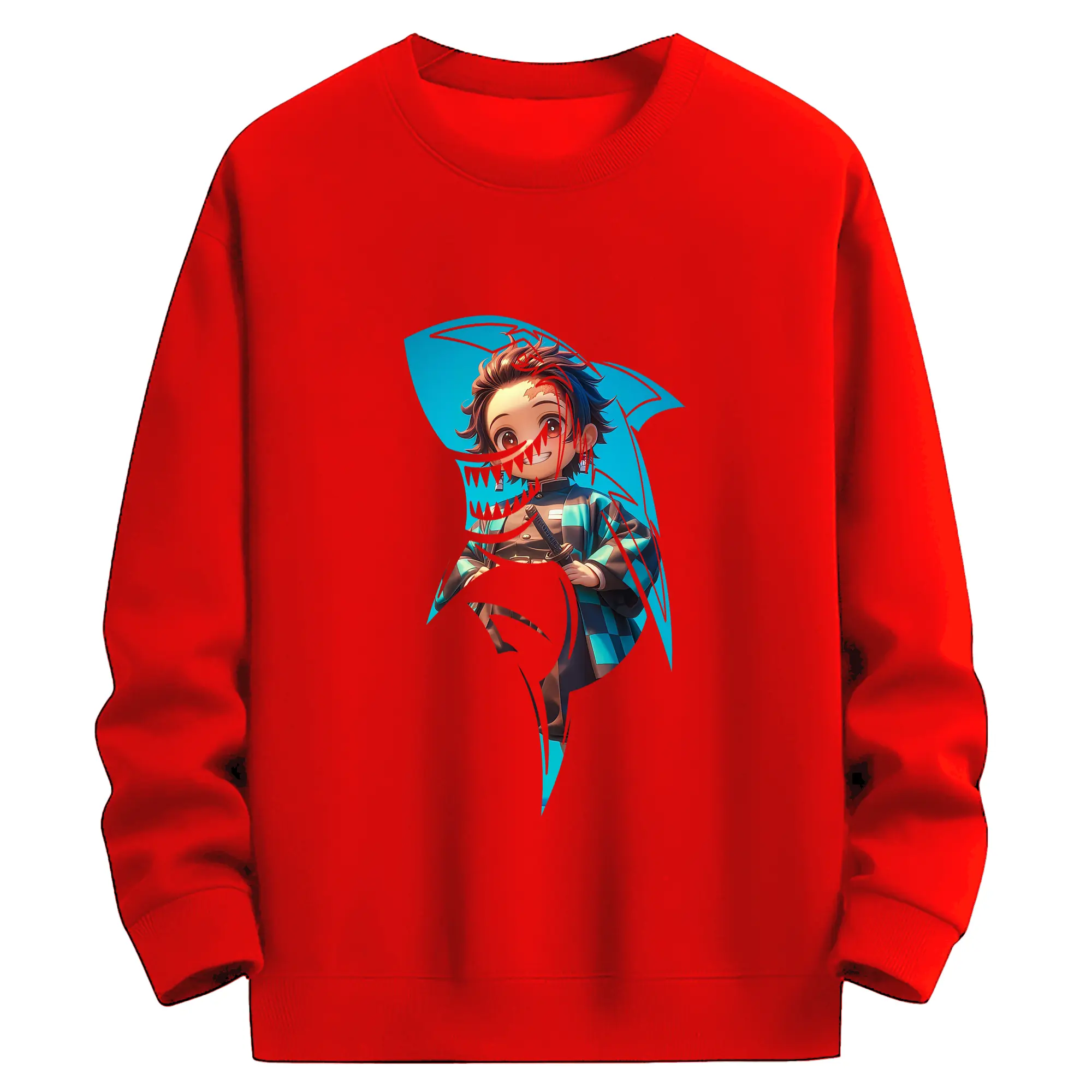 鬼滅の刃 グッズ,竈門 炭治郎 - 薄手 クルーネック スウェット 裏毛260g · ポリエステル 春秋向け カジュアル 男女兼用 · トレーナー デイリー スポーツ 散歩に最適