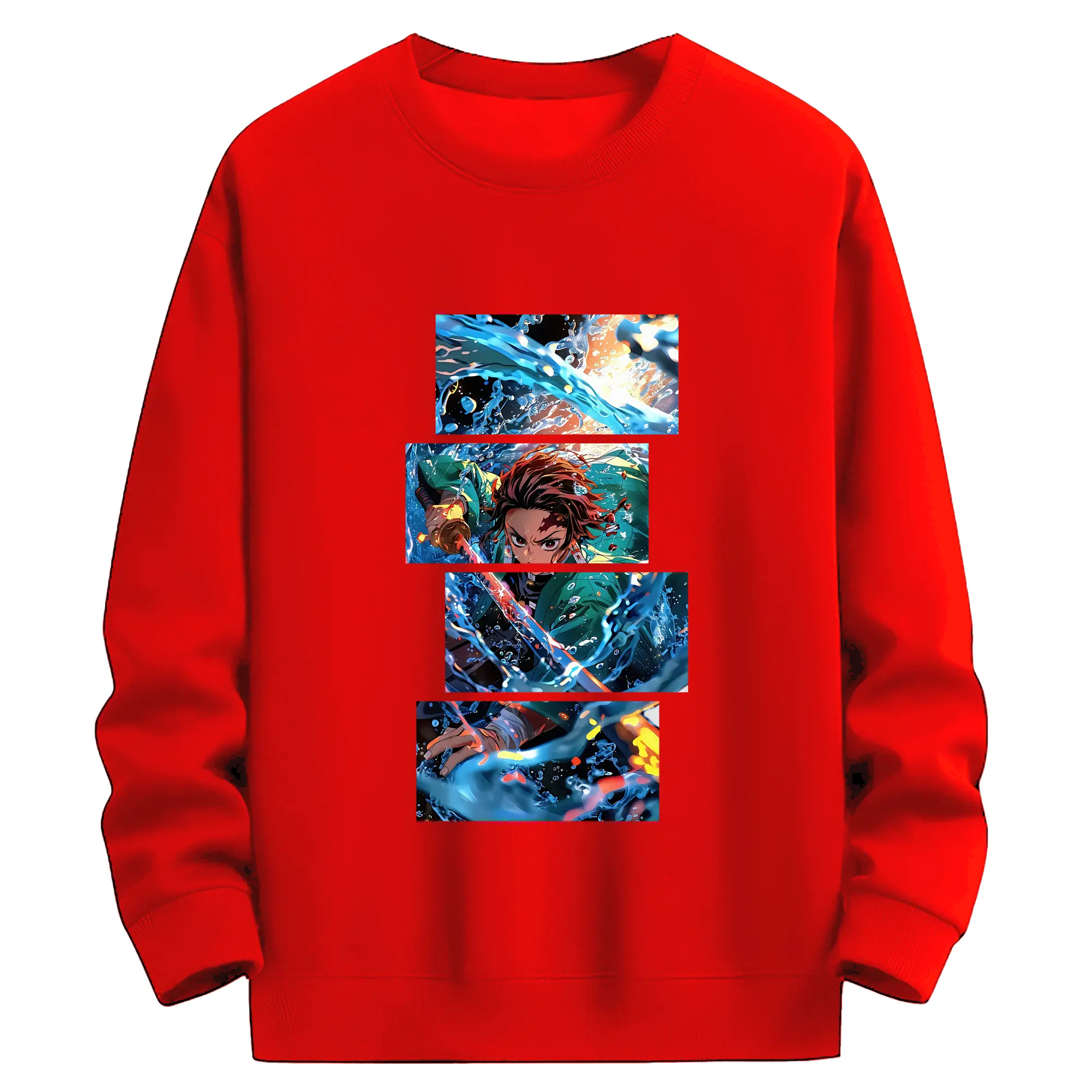 鬼滅の刃 グッズ,竈門 炭治郎 - 薄手 クルーネック スウェット 裏毛260g · ポリエステル 春秋向け カジュアル 男女兼用 · トレーナー デイリー スポーツ 散歩に最適