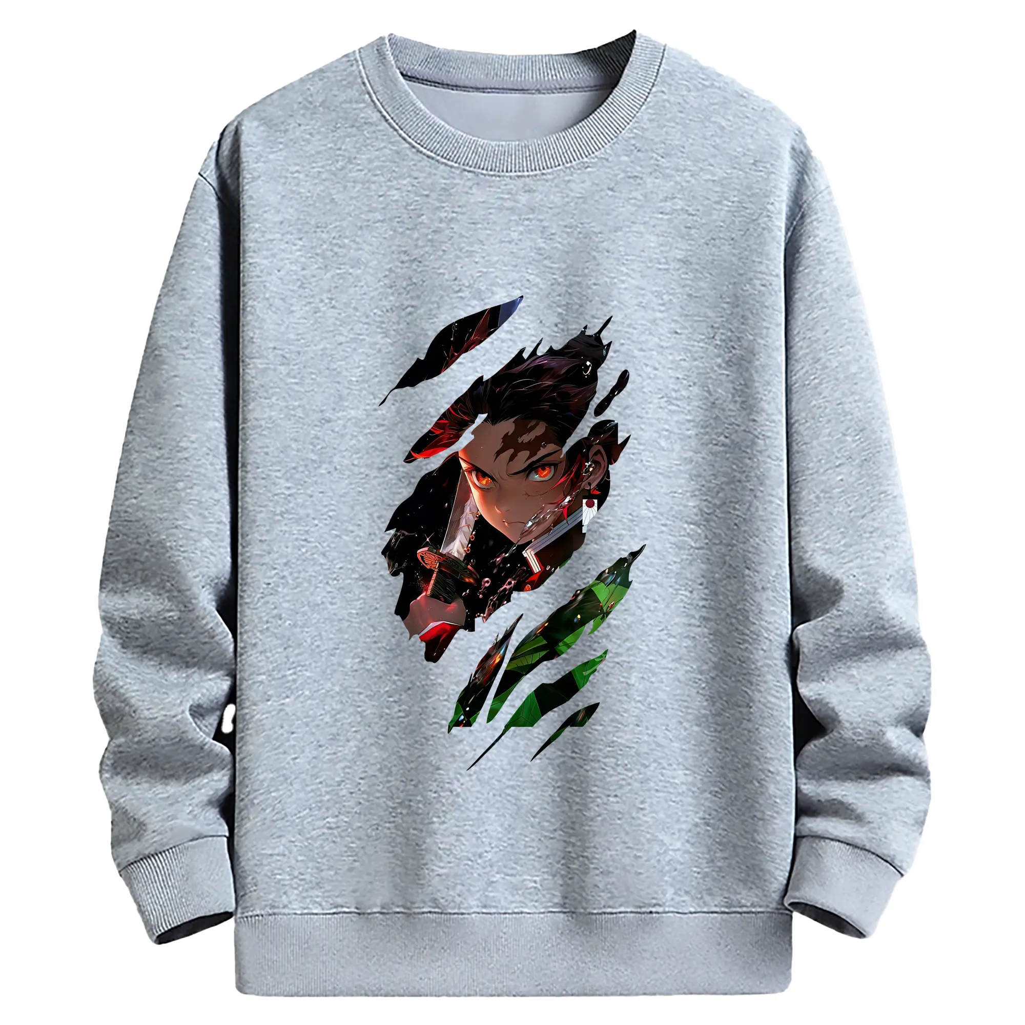 鬼滅の刃 グッズ,竈門 炭治郎 - 薄手 クルーネック スウェット 裏毛260g · ポリエステル 春秋向け カジュアル 男女兼用 · トレーナー デイリー スポーツ 散歩に最適