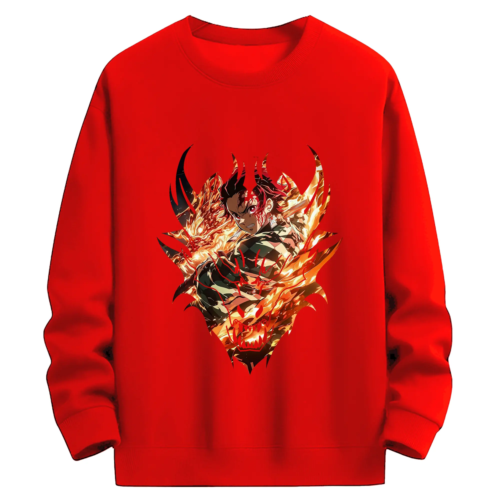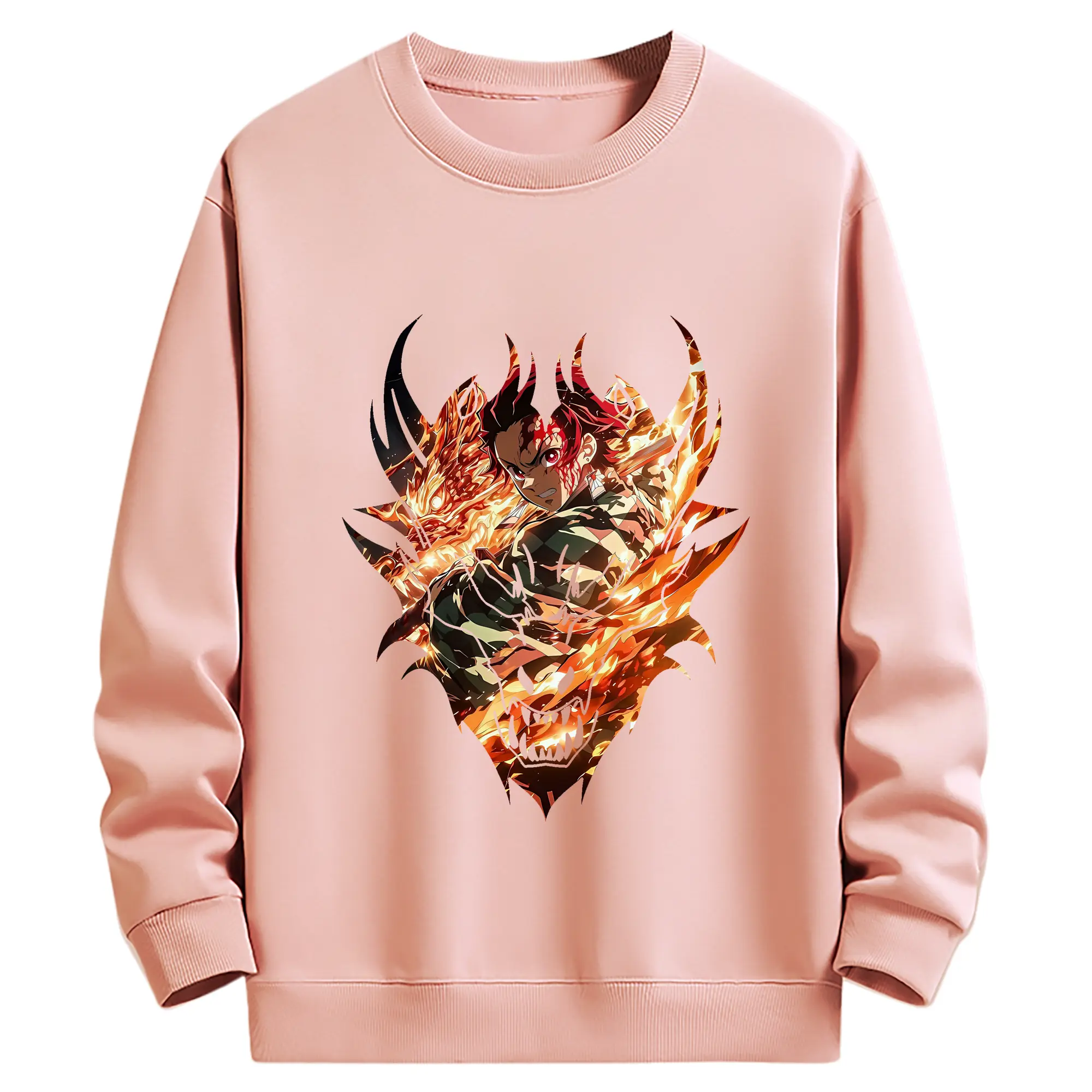 鬼滅の刃 グッズ,竈門 炭治郎 - 薄手 クルーネック スウェット 裏毛260g · ポリエステル 春秋向け カジュアル 男女兼用 · トレーナー デイリー スポーツ 散歩に最適