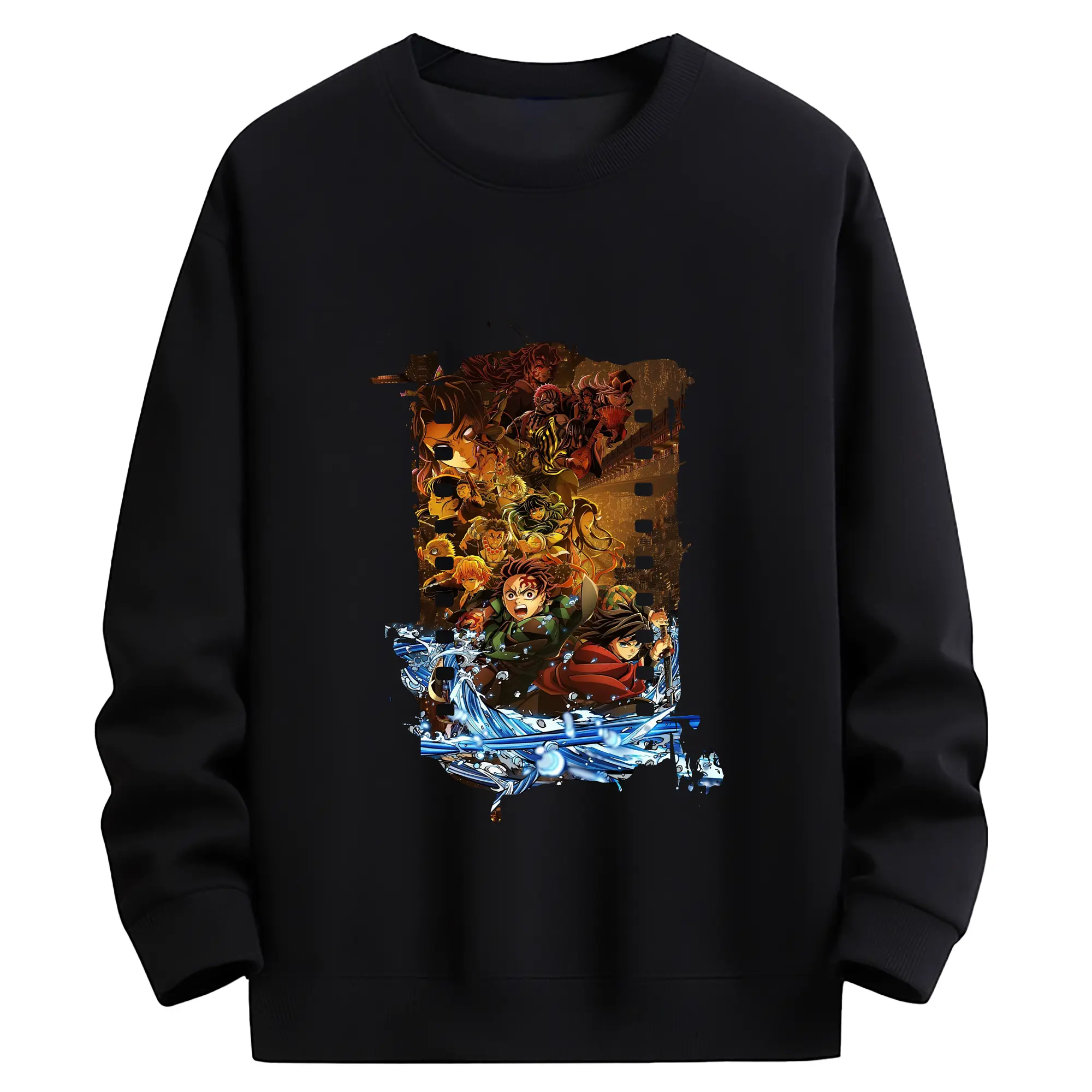 鬼滅の刃 グッズ,竈門 炭治郎 - 薄手 クルーネック スウェット 裏毛260g · ポリエステル 春秋向け カジュアル 男女兼用 · トレーナー デイリー スポーツ 散歩に最適
