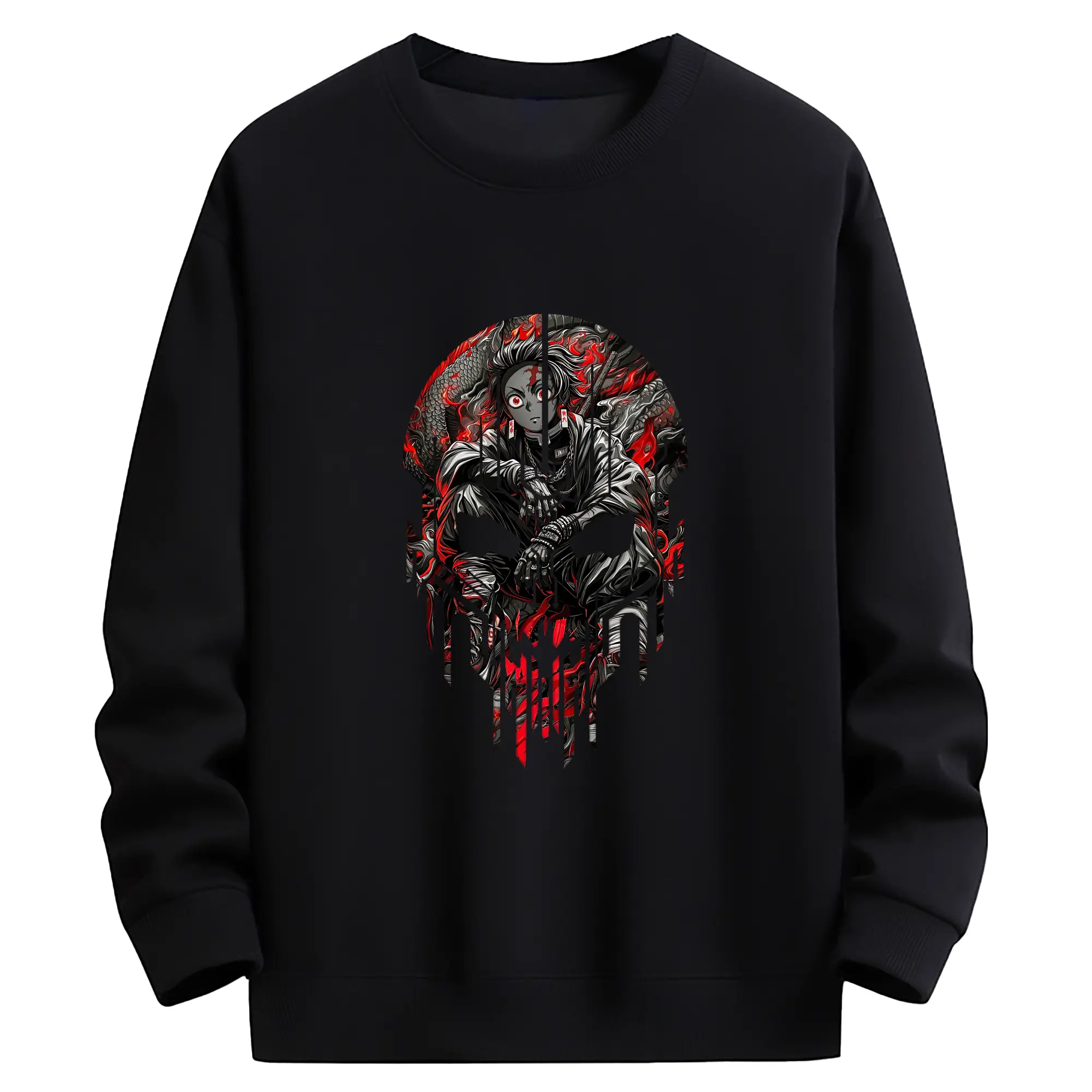 鬼滅の刃 グッズ,竈門 炭治郎 - 薄手 クルーネック スウェット 裏毛260g · ポリエステル 春秋向け カジュアル 男女兼用 · トレーナー デイリー スポーツ 散歩に最適
