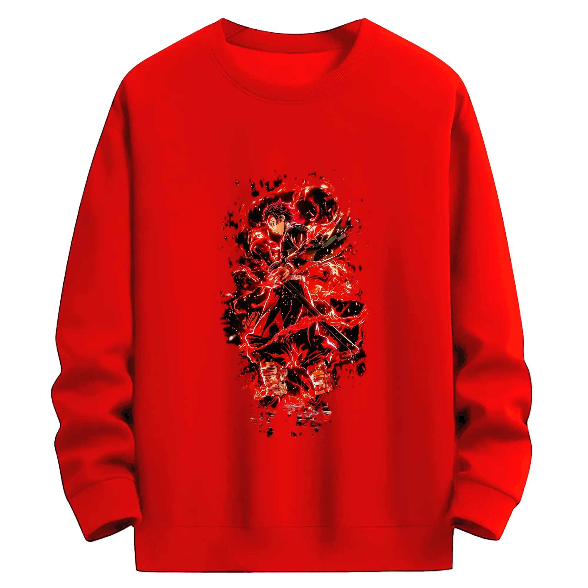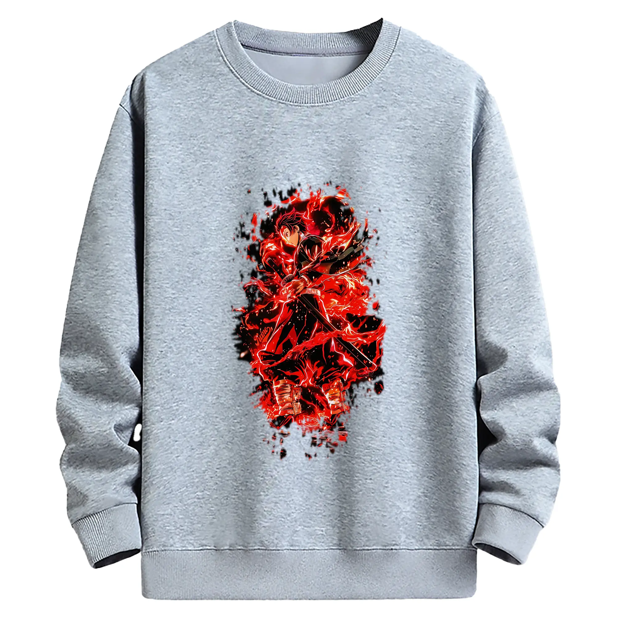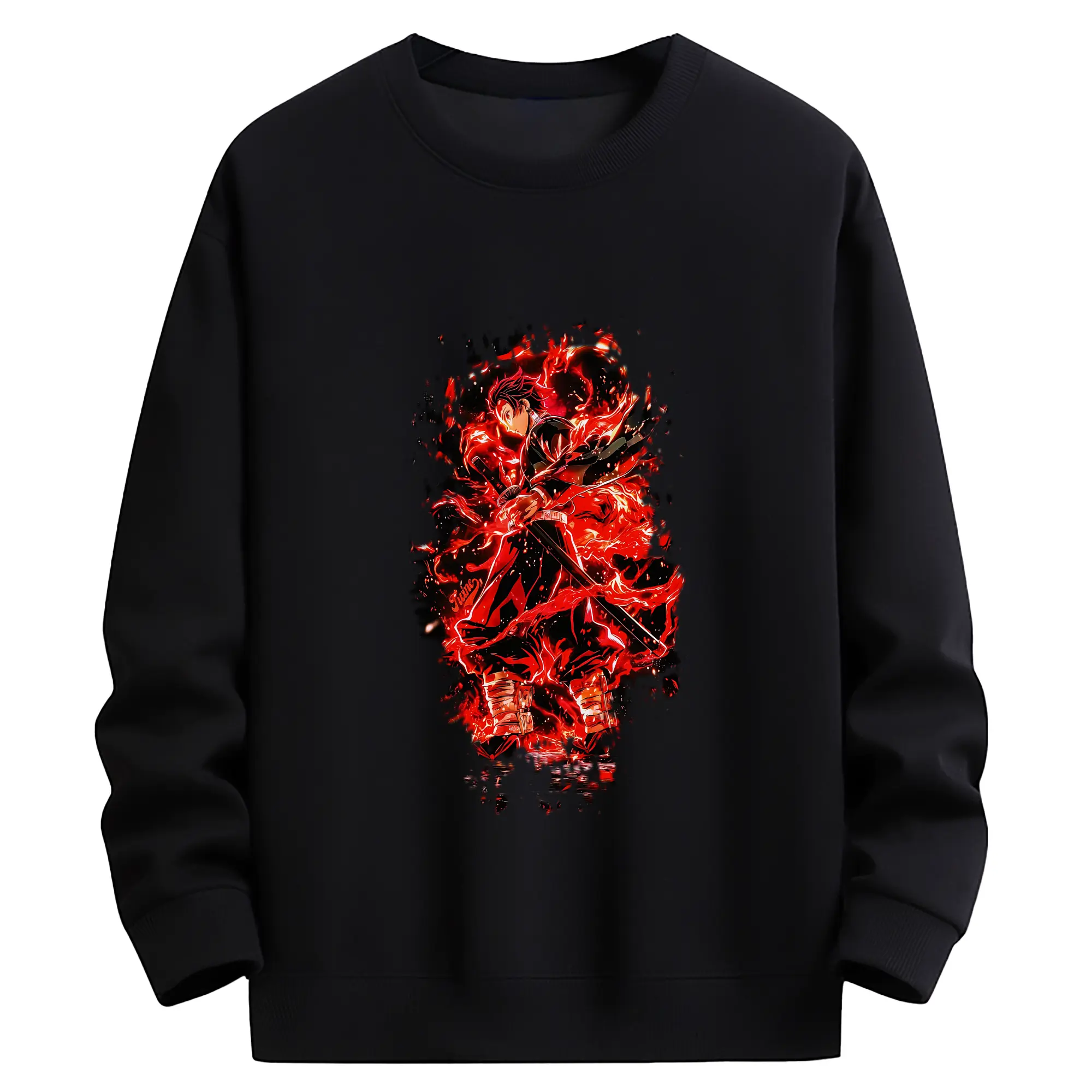 鬼滅の刃 グッズ,竈門 炭治郎 - 薄手 クルーネック スウェット 裏毛260g · ポリエステル 春秋向け カジュアル 男女兼用 · トレーナー デイリー スポーツ 散歩に最適