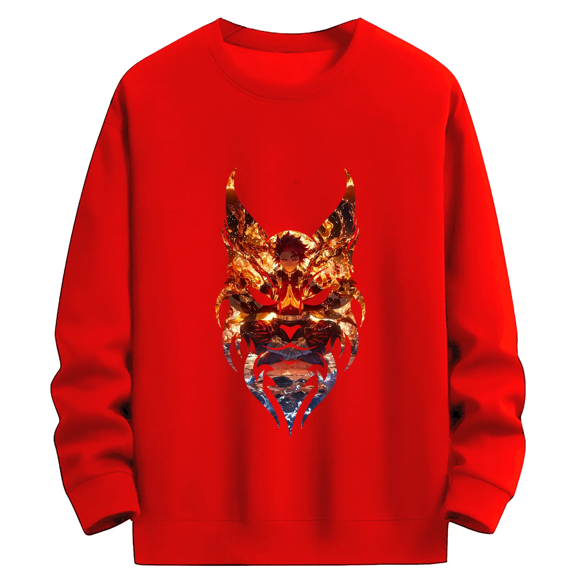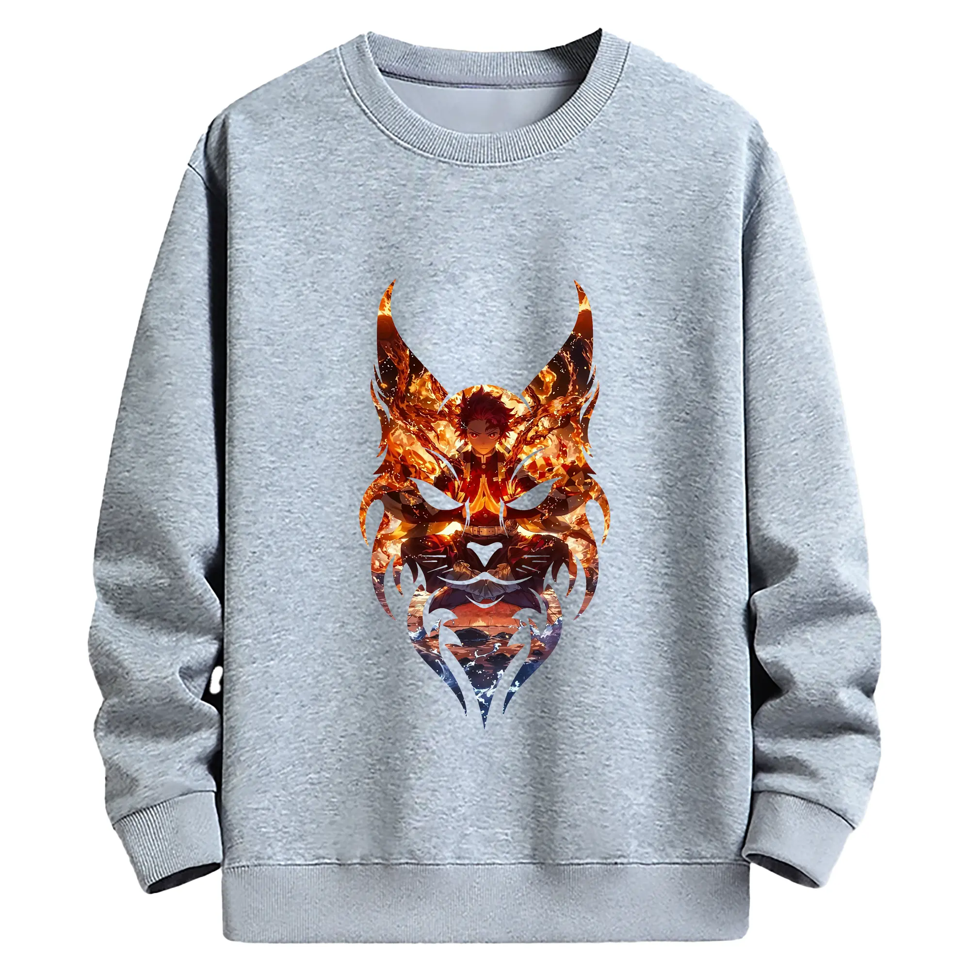 鬼滅の刃 グッズ,竈門 炭治郎 - 薄手 クルーネック スウェット 裏毛260g · ポリエステル 春秋向け カジュアル 男女兼用 · トレーナー デイリー スポーツ 散歩に最適