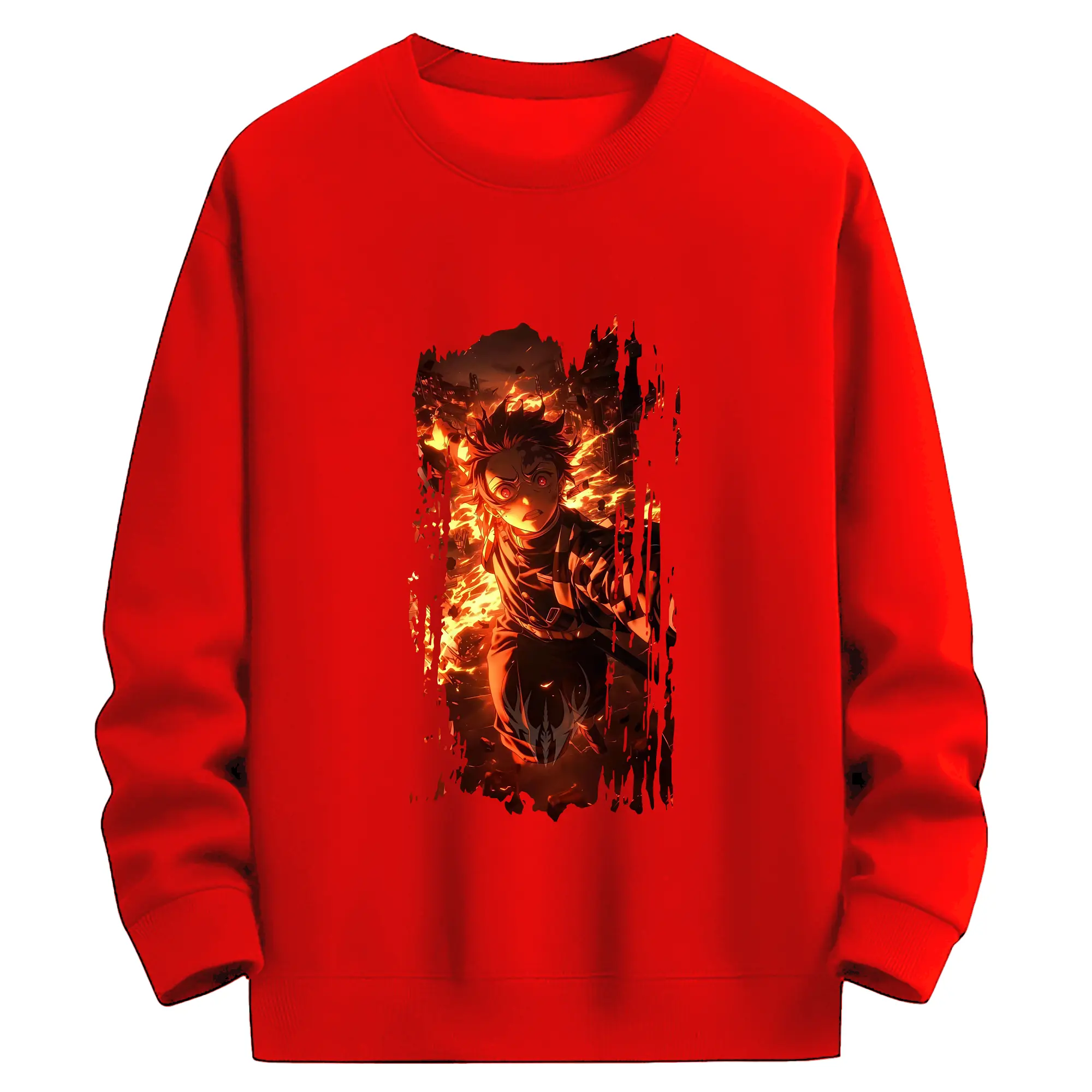 鬼滅の刃 グッズ,竈門 炭治郎 - 薄手 クルーネック スウェット 裏毛260g · ポリエステル 春秋向け カジュアル 男女兼用 · トレーナー デイリー スポーツ 散歩に最適