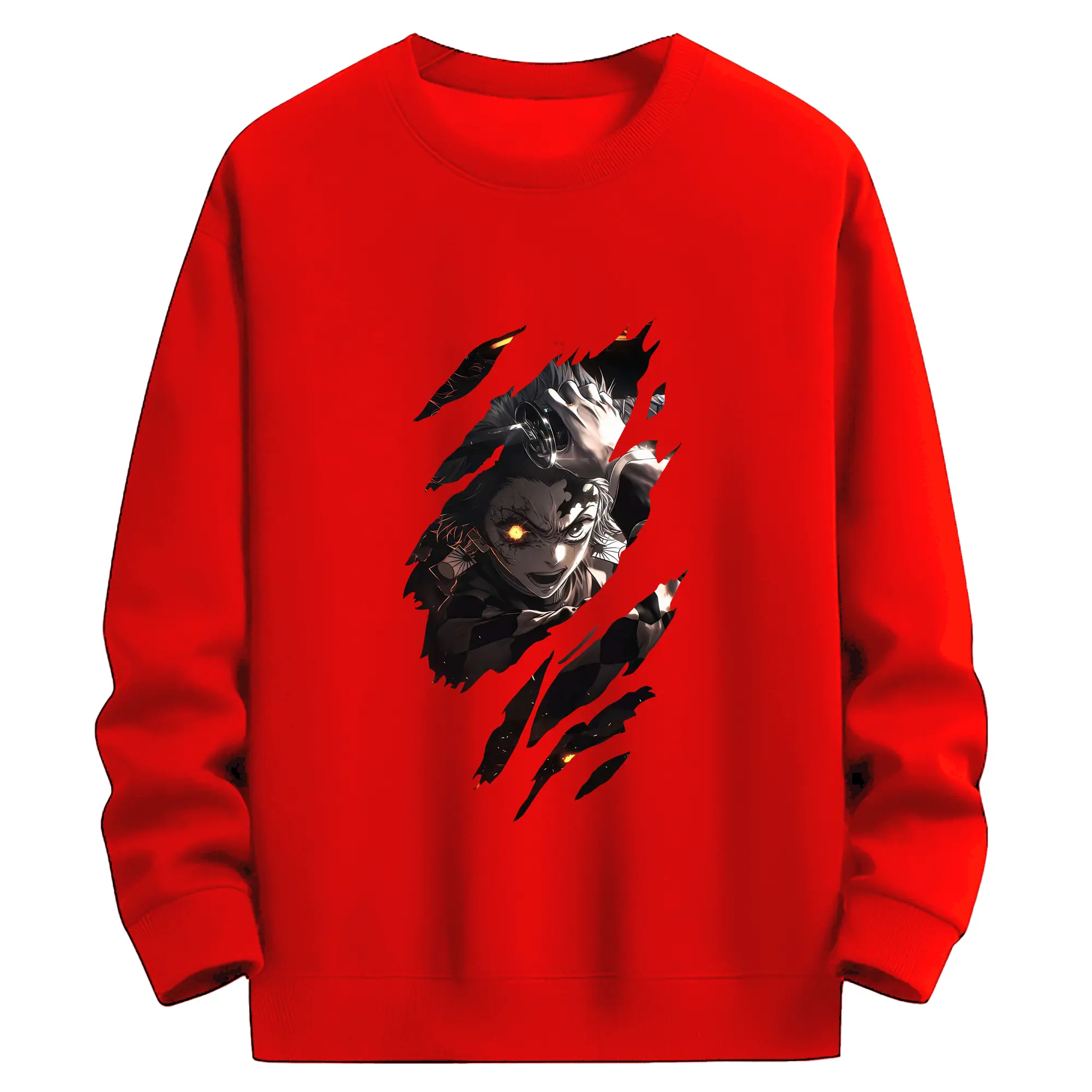 鬼滅の刃 グッズ,竈門 炭治郎 - 薄手 クルーネック スウェット 裏毛260g · ポリエステル 春秋向け カジュアル 男女兼用 · トレーナー デイリー スポーツ 散歩に最適