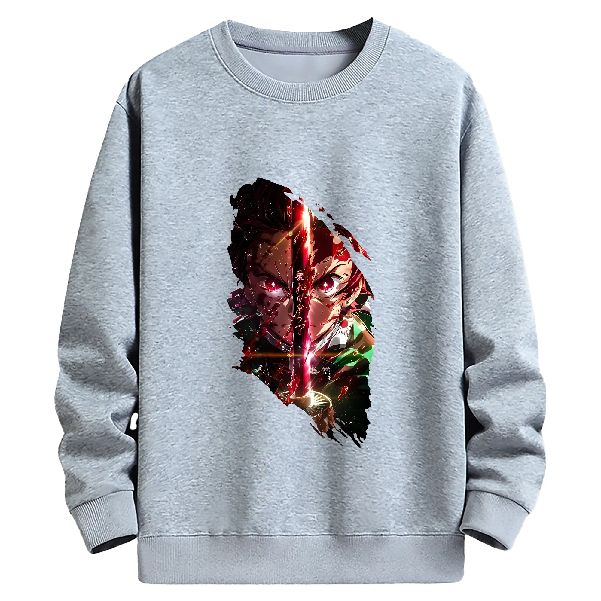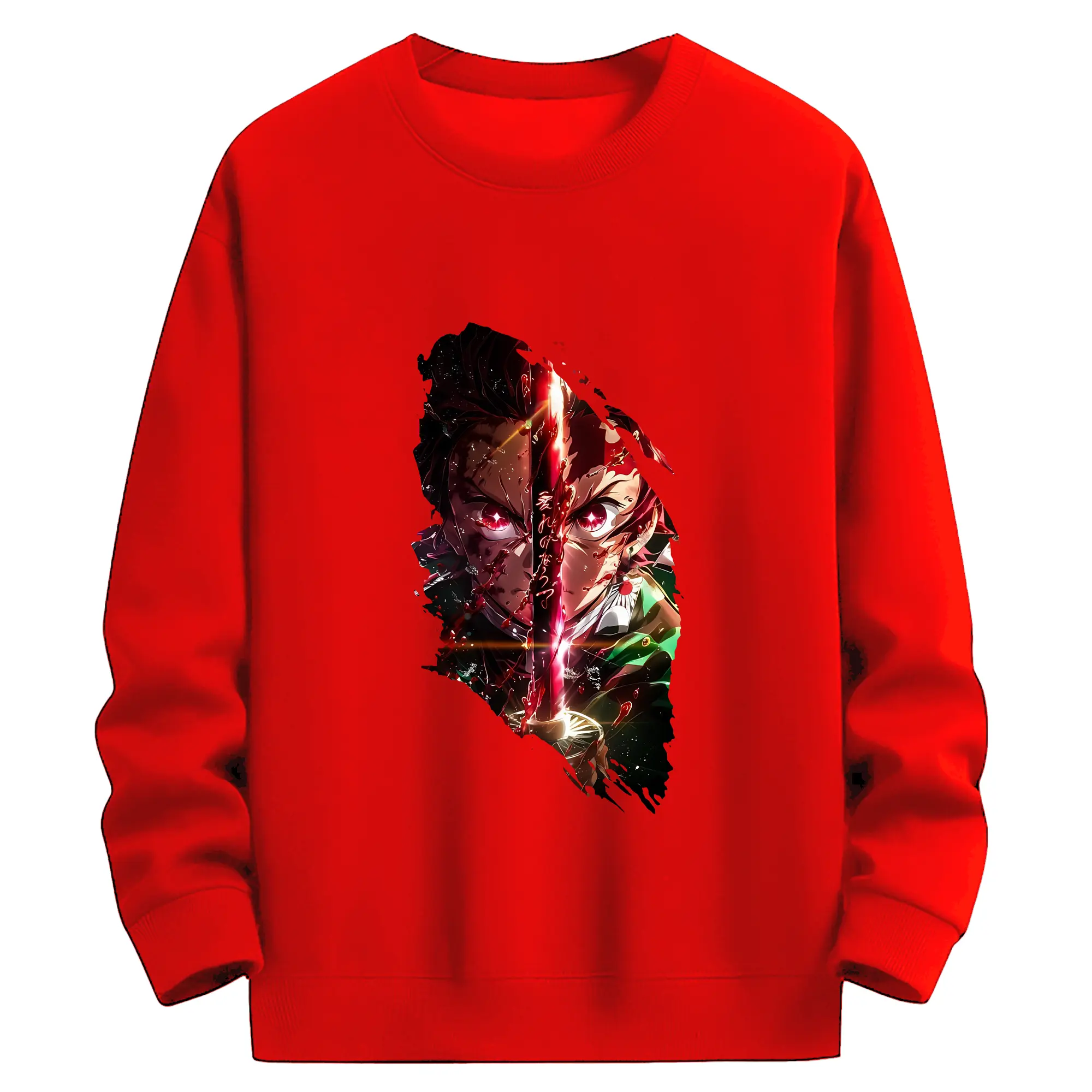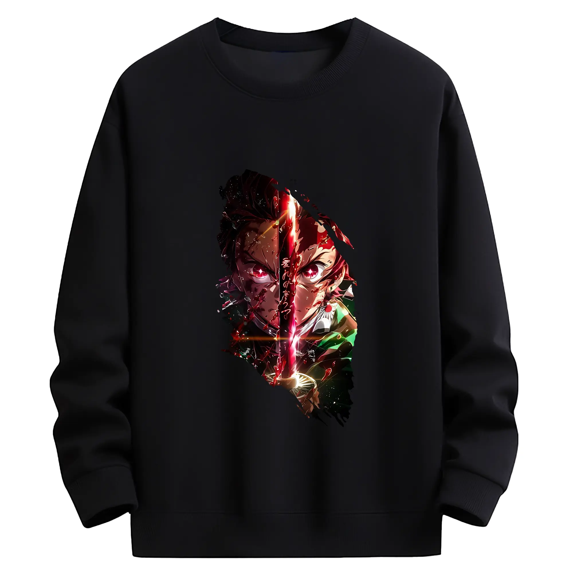 鬼滅の刃 グッズ,竈門 炭治郎 - 薄手 クルーネック スウェット 裏毛260g · ポリエステル 春秋向け カジュアル 男女兼用 · トレーナー デイリー スポーツ 散歩に最適