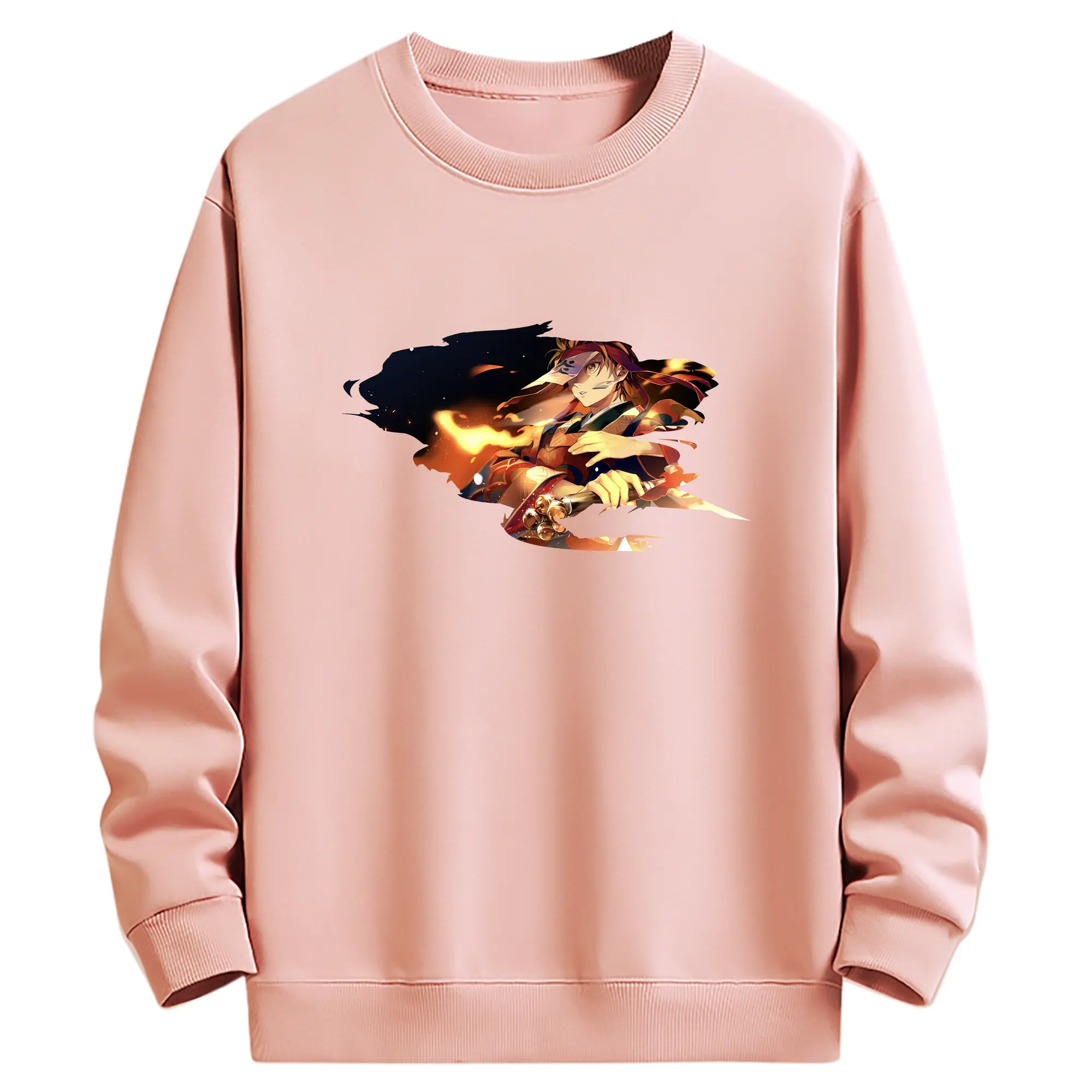 鬼滅の刃 グッズ,竈門 炭治郎 - 薄手 クルーネック スウェット 裏毛260g · ポリエステル 春秋向け カジュアル 男女兼用 · トレーナー デイリー スポーツ 散歩に最適