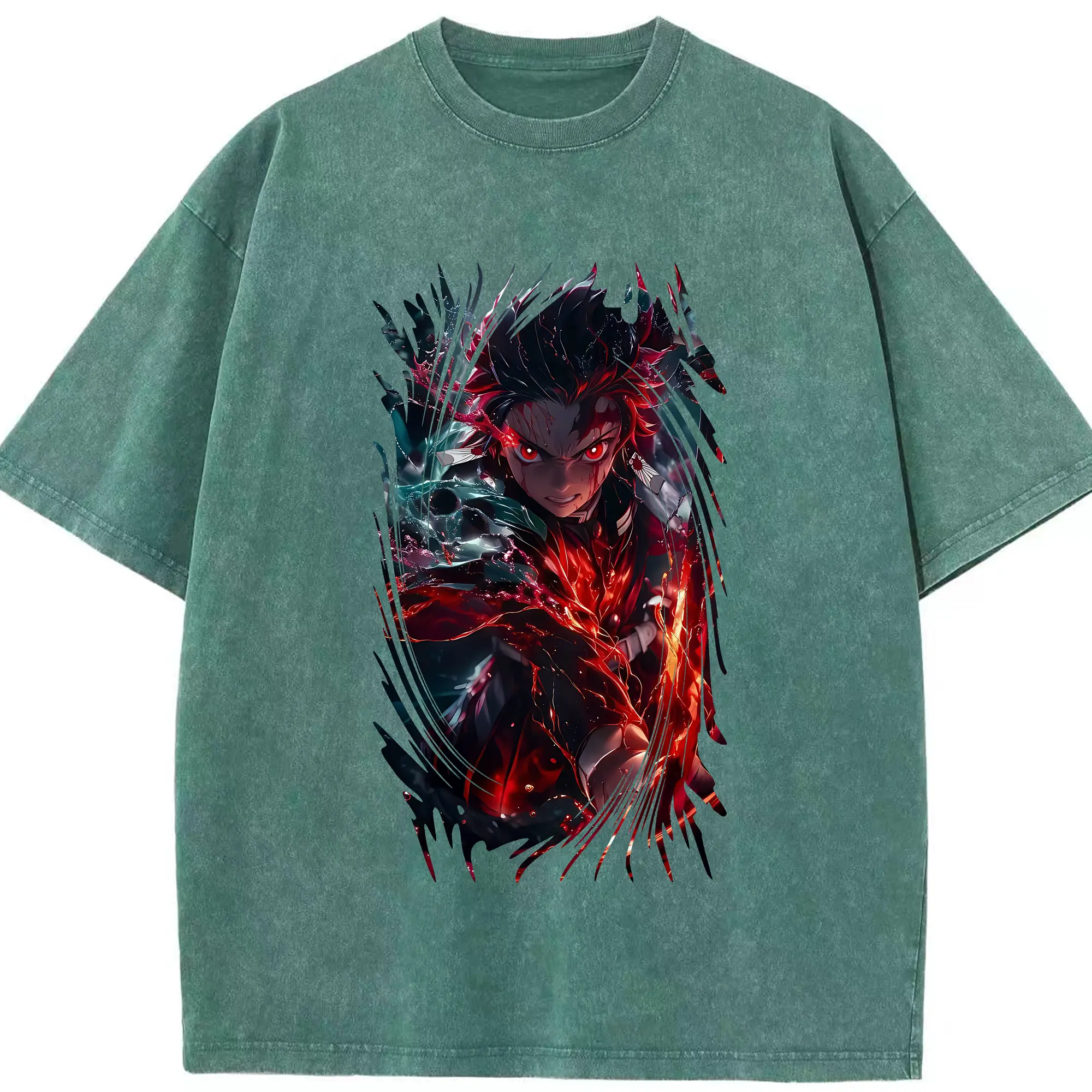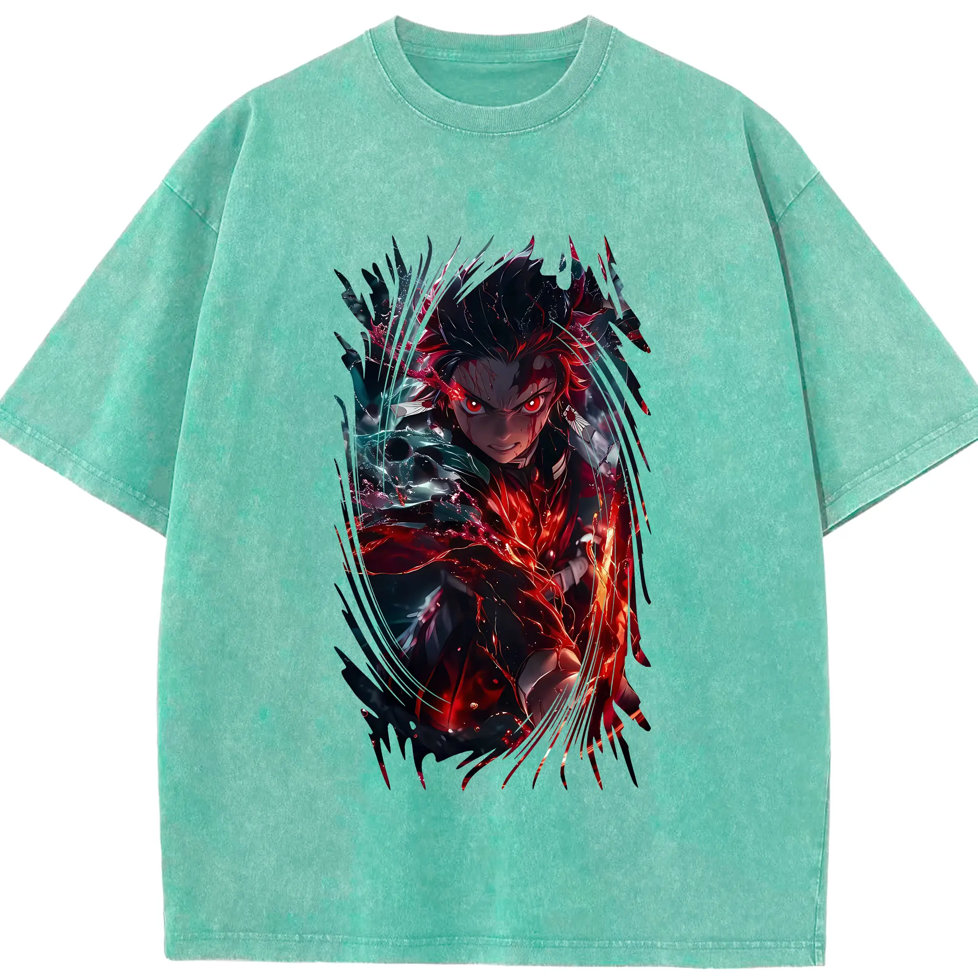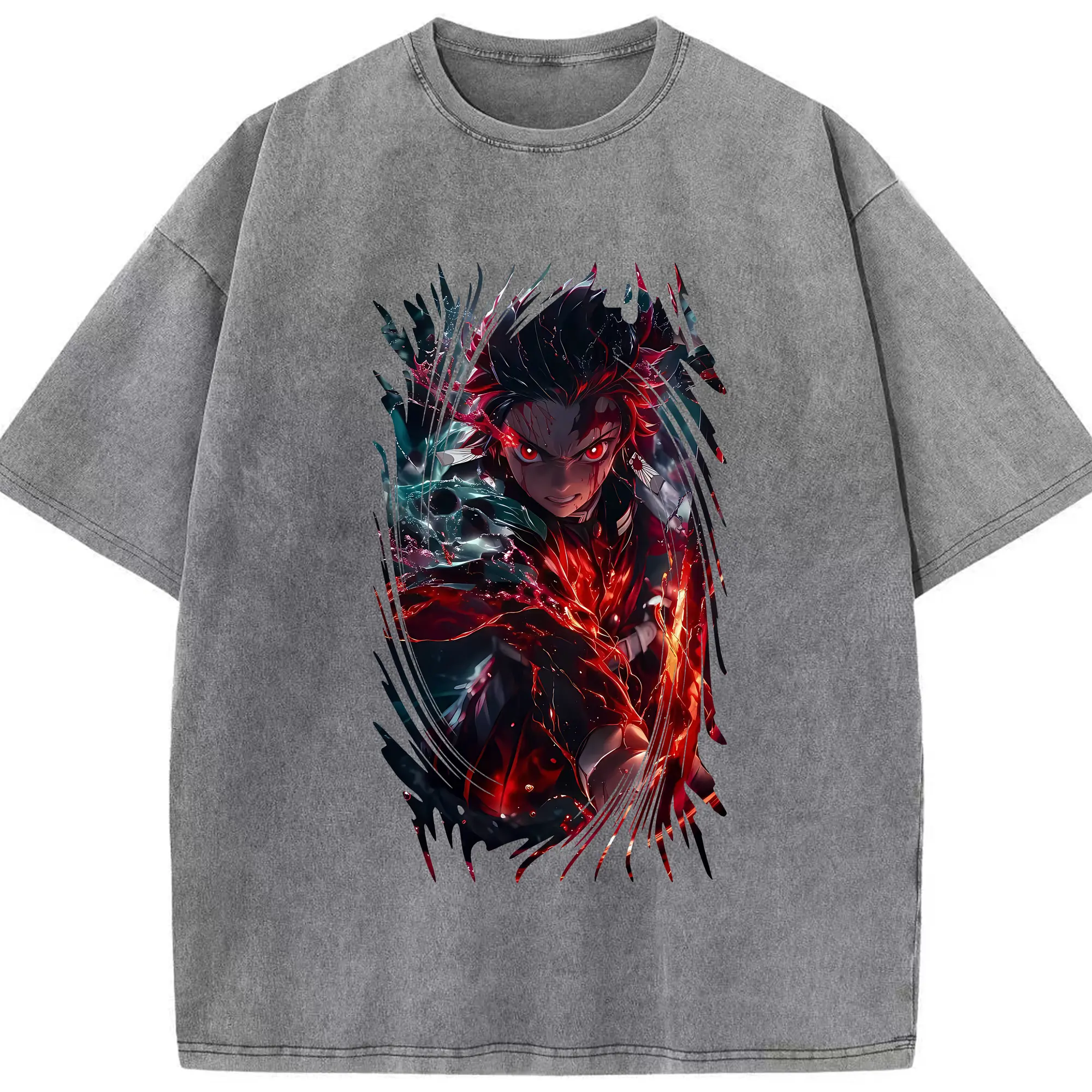 鬼滅の刃 グッズ,竈門 炭治郎 - 綿100% 半袖Tシャツ ・ フロントプリント ・ 快適 通気性 ・ 日常使い 散歩 スポーツ用