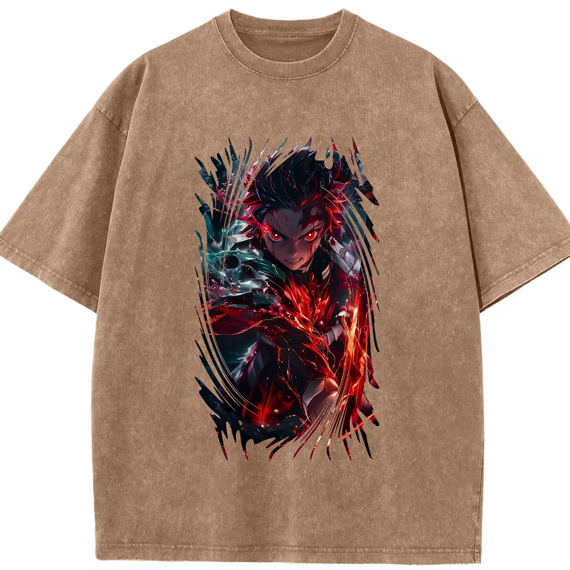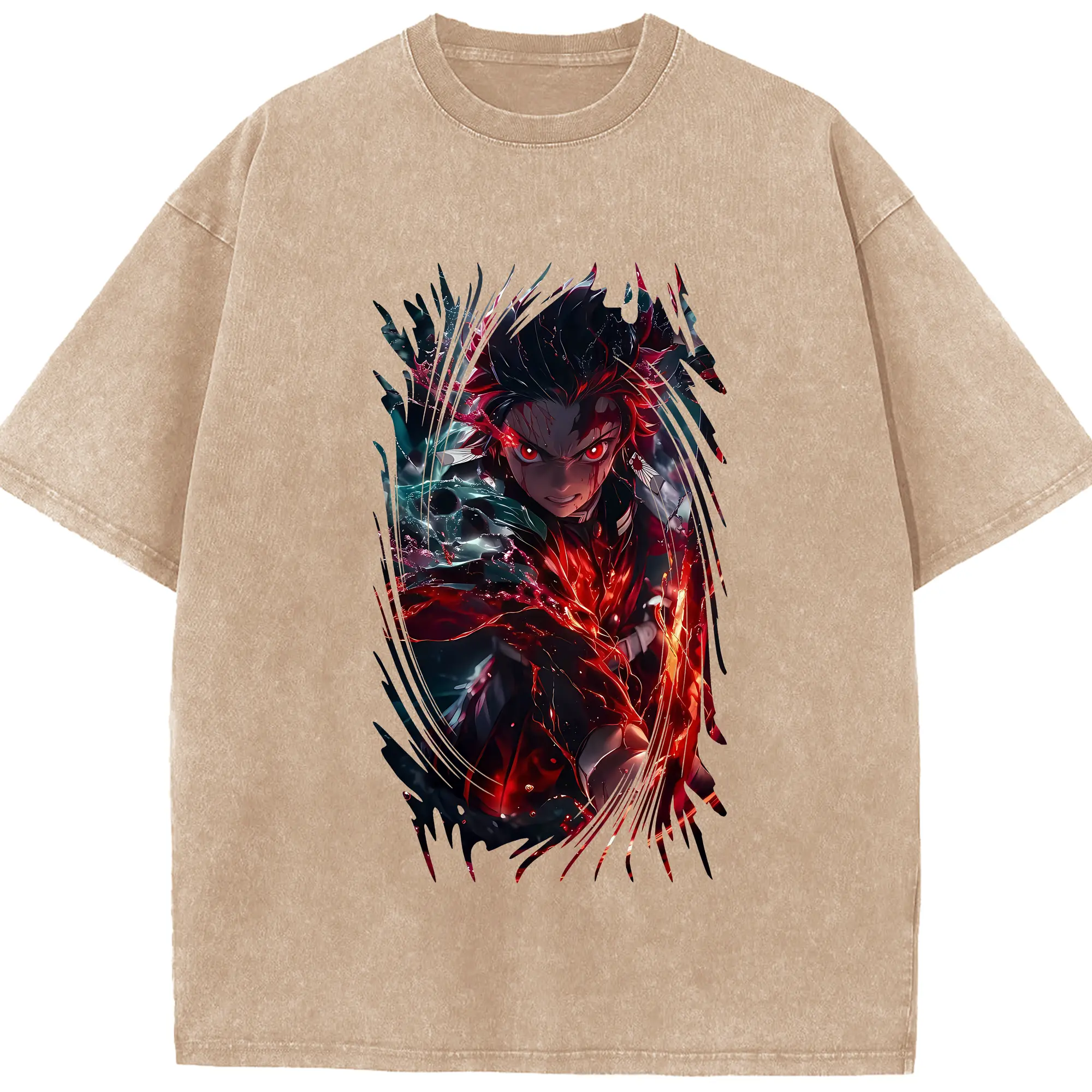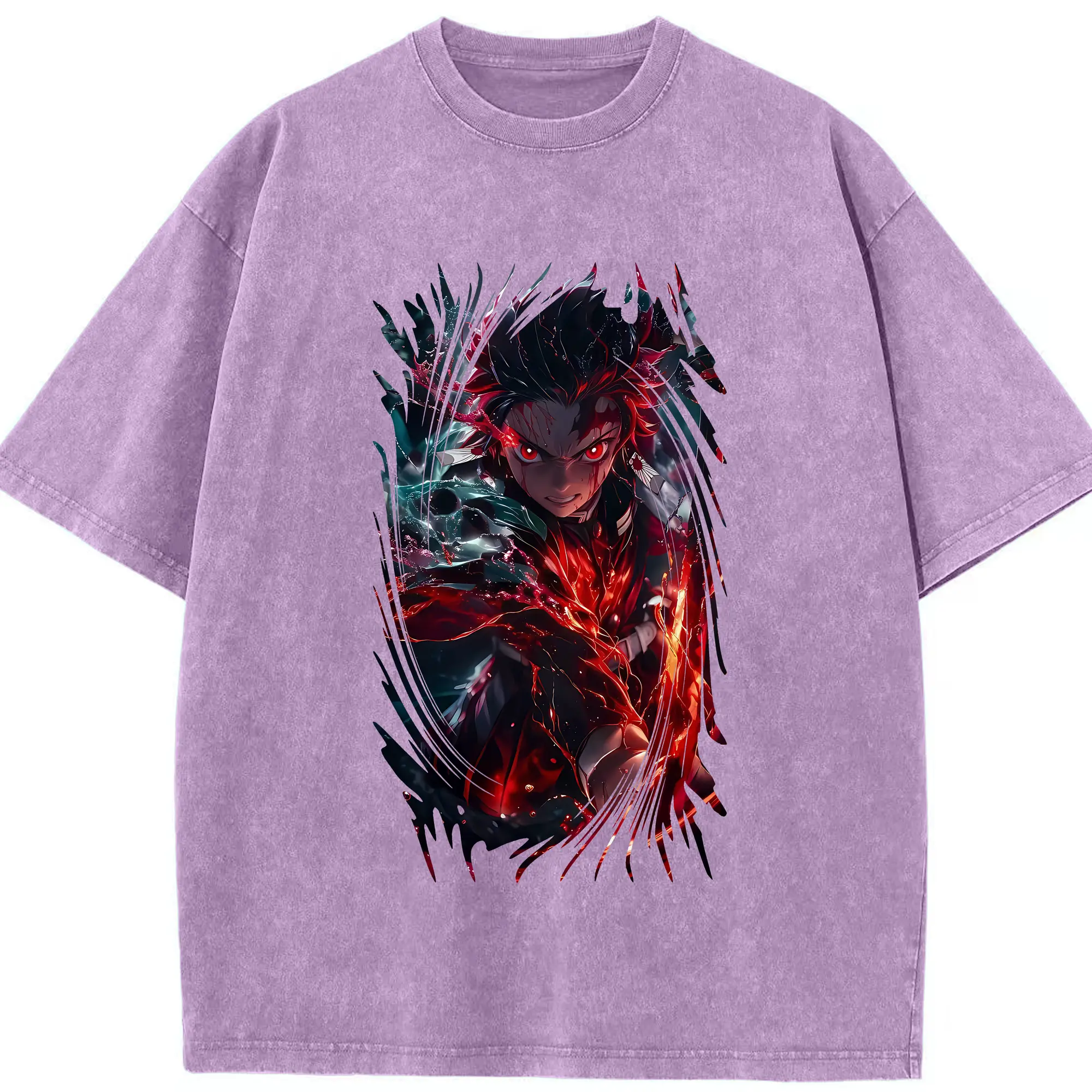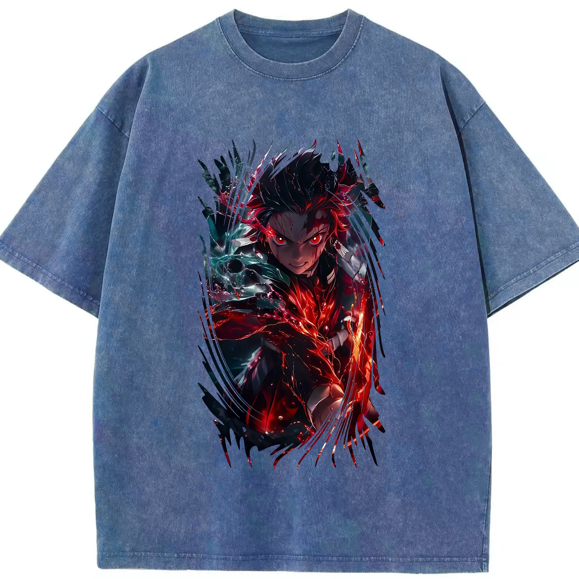 鬼滅の刃 グッズ,竈門 炭治郎 - 綿100% 半袖Tシャツ ・ フロントプリント ・ 快適 通気性 ・ 日常使い 散歩 スポーツ用