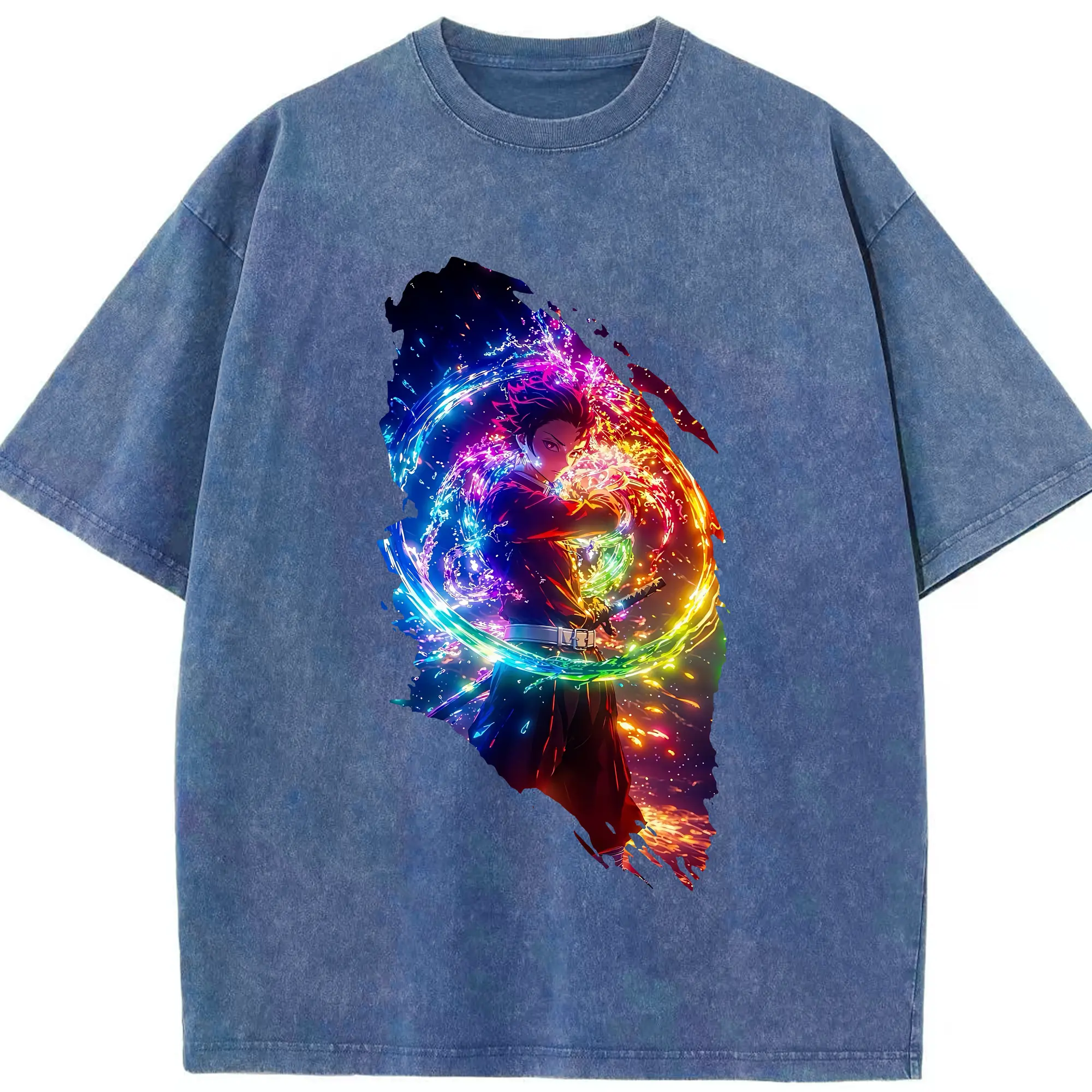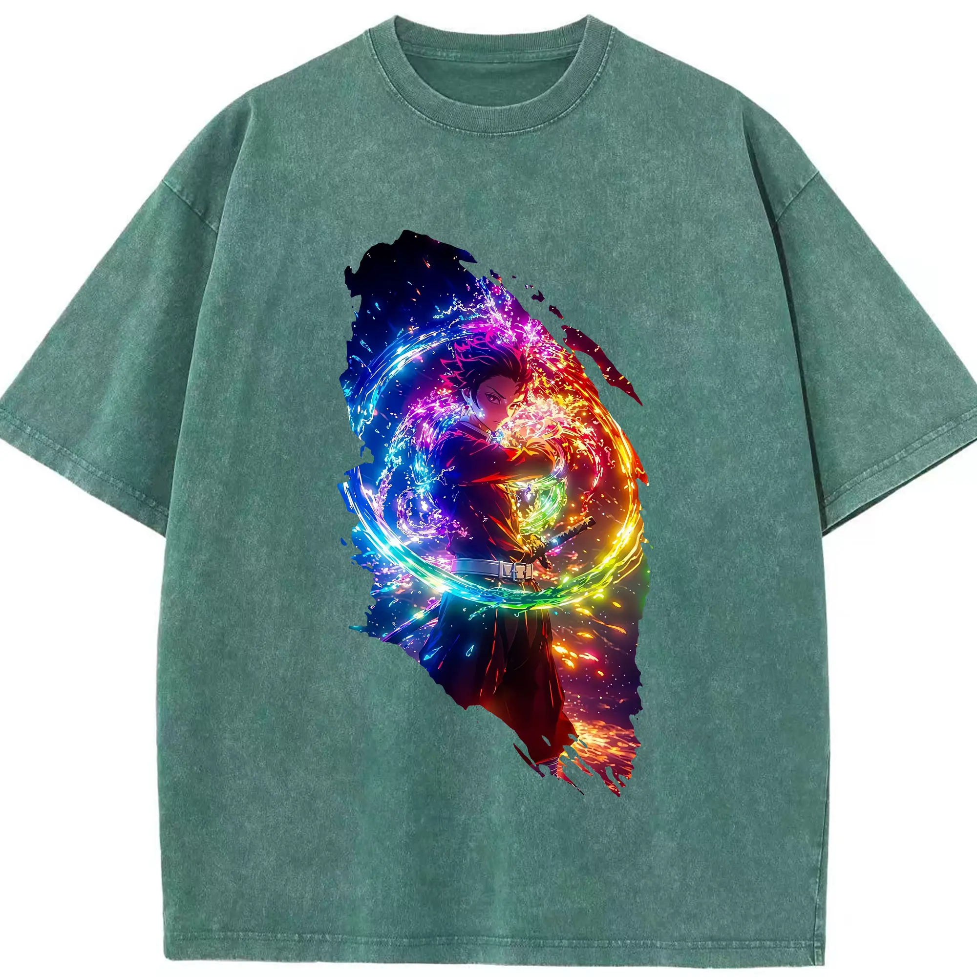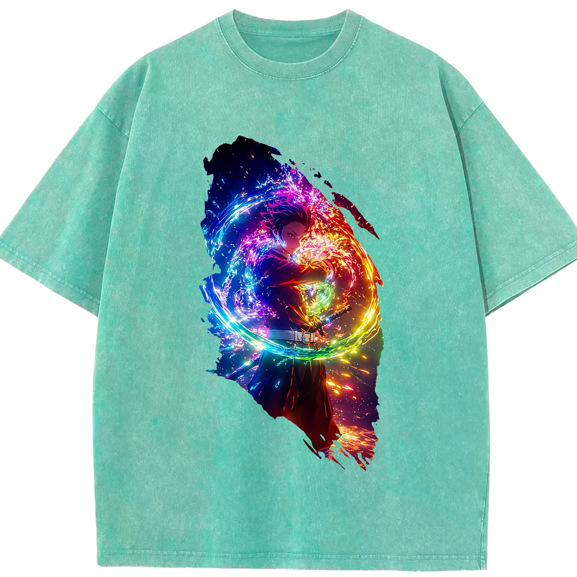 鬼滅の刃 グッズ,竈門 炭治郎 - 綿100% 半袖Tシャツ ・ フロントプリント ・ 快適 通気性 ・ 日常使い 散歩 スポーツ用